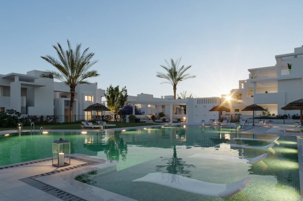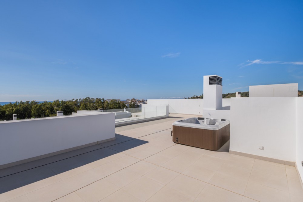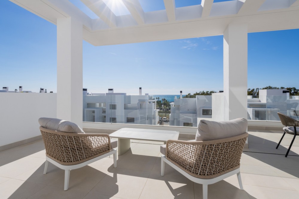 - New Development: Prices from €725,000 to €755,000. [Bedrooms: 3] [Bathrooms: 2] [Built size: 140m2 - 146m2]. The penthouses at this resort in Estepona offer a true taste of Mediterranean luxury. Enjoy stunning sea views from your spacious terraces, complete with an exclusive jacuzzi on the rooftop. These bright, three-bedroom homes create a peaceful, upscale environment. You’ll have access to top-notch amenities designed for your comfort, including an infinity pool, a fully equipped gym, a gourmet lounge, and dedicated yoga spaces. Located near beautiful beaches and world-class golf courses, the resort is also just a short walk from Estepona’s charming old town, where you'll always find something new to explore. Plus, you’re perfectly connected to Marbella, Sotogrande, and Malaga. These penthouses come with high-end finishes, such as motorized blinds opening onto the terrace, underfloor heating in the master bathroom, and a state-of-the-art kitchen, ensuring comfort and exclusivity throughout your home.