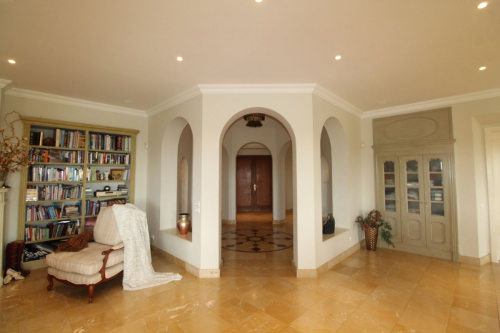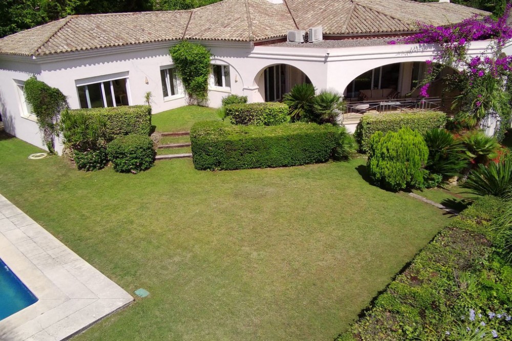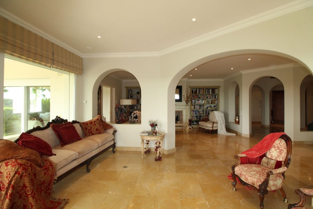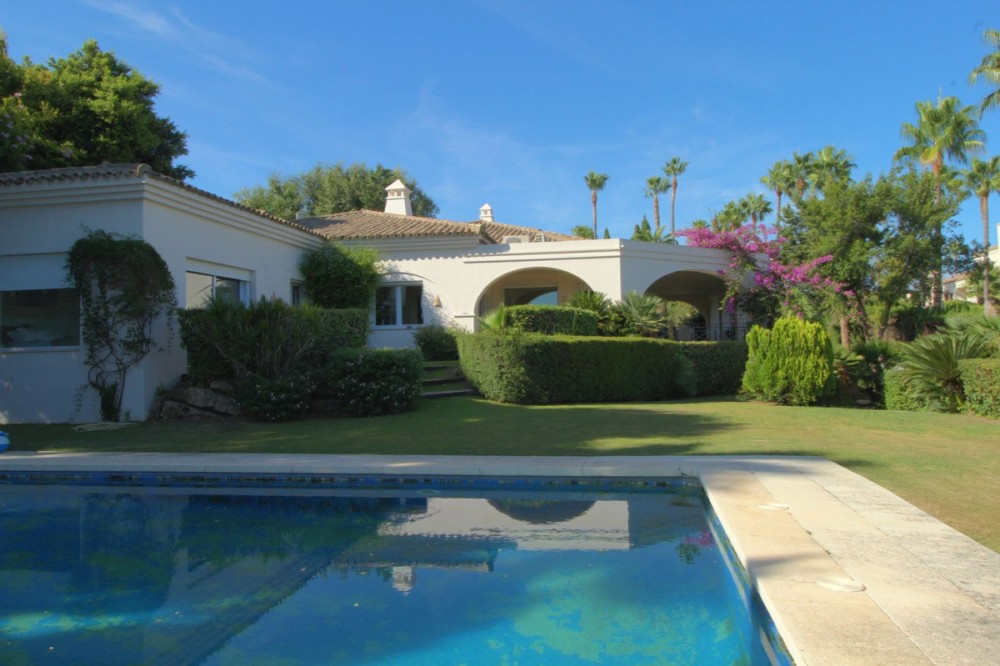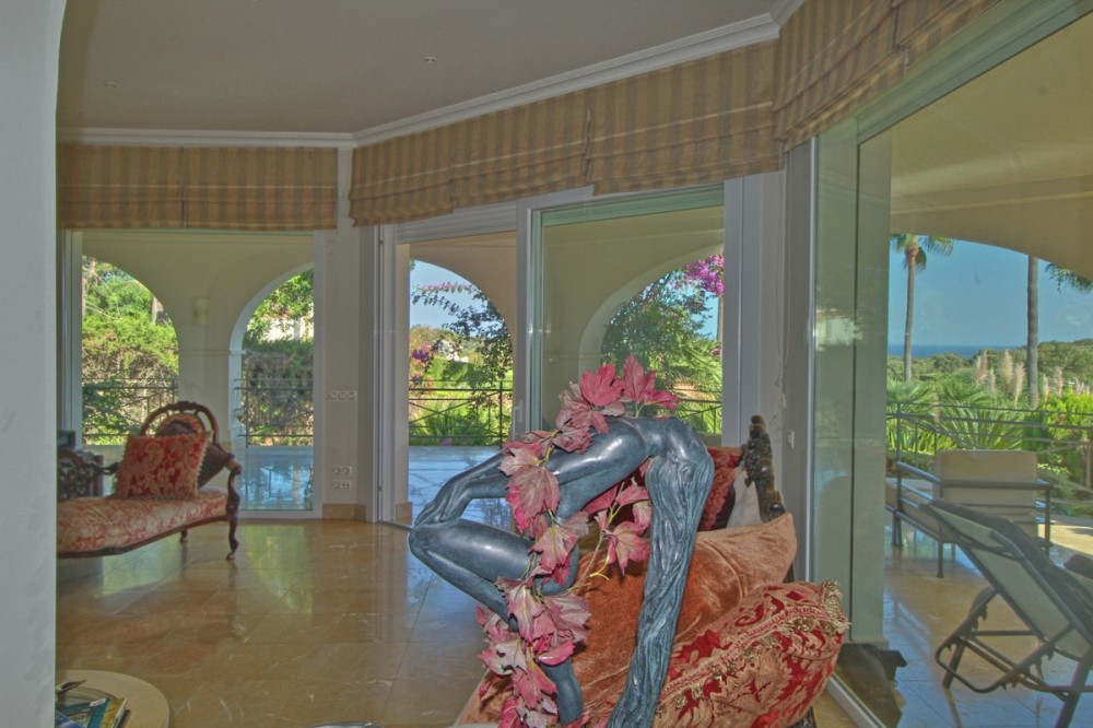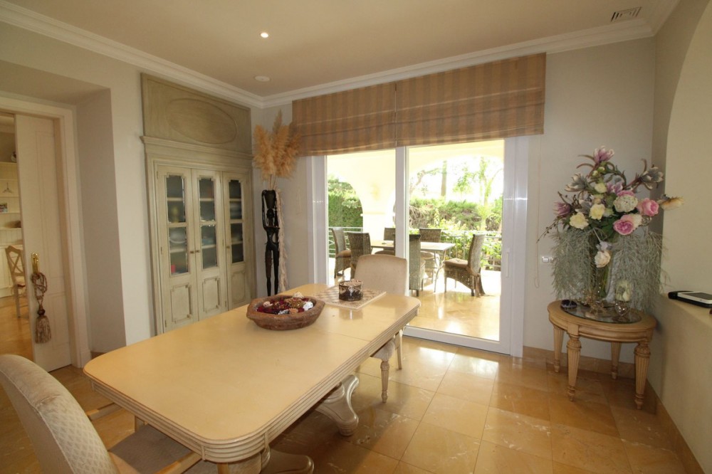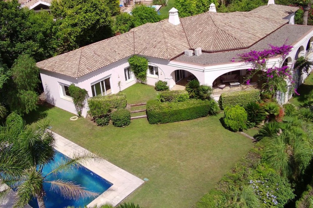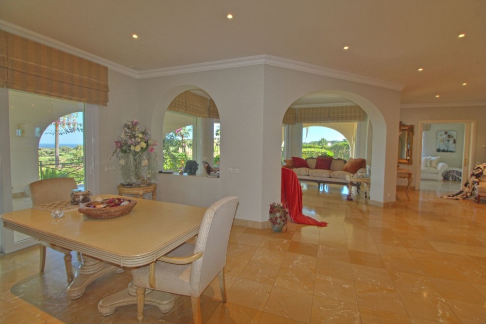 - Discover a Captivating 4-Bedroom Villa in Sotogrande F-zone, Offering Stunning Views of the Sea, Golf, and Countryside. On the main level, step into an extraordinary entrance, opening to an expansive living area thoughtfully divided into different spots for entertainment and relaxation. It encompasses a fireplace-adorned seating corner, a lounge with terrace access and breathtaking views, a dining space adjoining the roomy kitchen, and a TV lounge. These interconnected zones create a seamless backdrop for hosting gatherings. Moreover, expansive sliding glass doors seamlessly connect to the south-east facing veranda, offering stunning sea and countryside views, and granting entry to the garden and pool area. This level also houses the master bedroom with en-suite bathroom and dressing room, affording enchanting views of the garden, pool, and sea. Two additional bedrooms, a shared bathroom, a guest toilet, laundry area, and garage complete this floor. Outside, a vibrant subtropical garden adds beauty and can be easily maintained. The lower level holds an independent guest apartment with a bedroom, bathroom, and living area. Convinently located near the Sotogrande International School and many prestigious golf courses. Villa features include: Elegant marble flooring Individual AC units in bedrooms Convenient automatic irrigation Sweeping sea views from master bedroom, living area, veranda, garden, and pool Automatic gates for driveway access with ample parking space Secure closed garage Luxurious underfloor heating