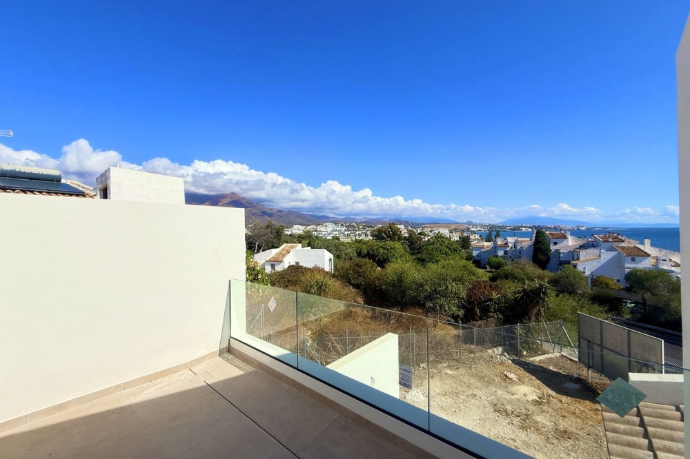 - EXCLUSIVE SEMI-DETACHED HOUSE IN BAHÍA DORADA WITH PANORAMIC SEA VIEWS. Located in one of the most sought-after areas of the Costa del Sol, this modern semi-detached home is part of an exclusive project of only three residences, two of them semi-detached, and thanks to its elevated position, it offers stunning sea views just 500 meters from the beach. The property is 1.5 km from Estepona Golf, 5 minutes from Estepona Marina, and 10 minutes from Puerto de la Duquesa. Spread over two southeast-facing floors, it stands out for its abundant natural light and elegant design, with high-quality materials throughout. The kitchen is fully equipped with top-brand appliances, and the property features an aerothermal water system and premium porcelain tiles, ensuring efficiency and comfort. It also includes a spacious terrace and private garden, providing the perfect setting to enjoy memorable moments with family and friends. Key handover is scheduled for the third quarter of 2025.