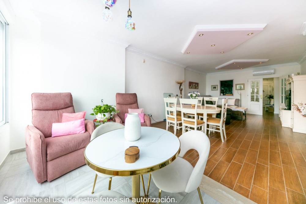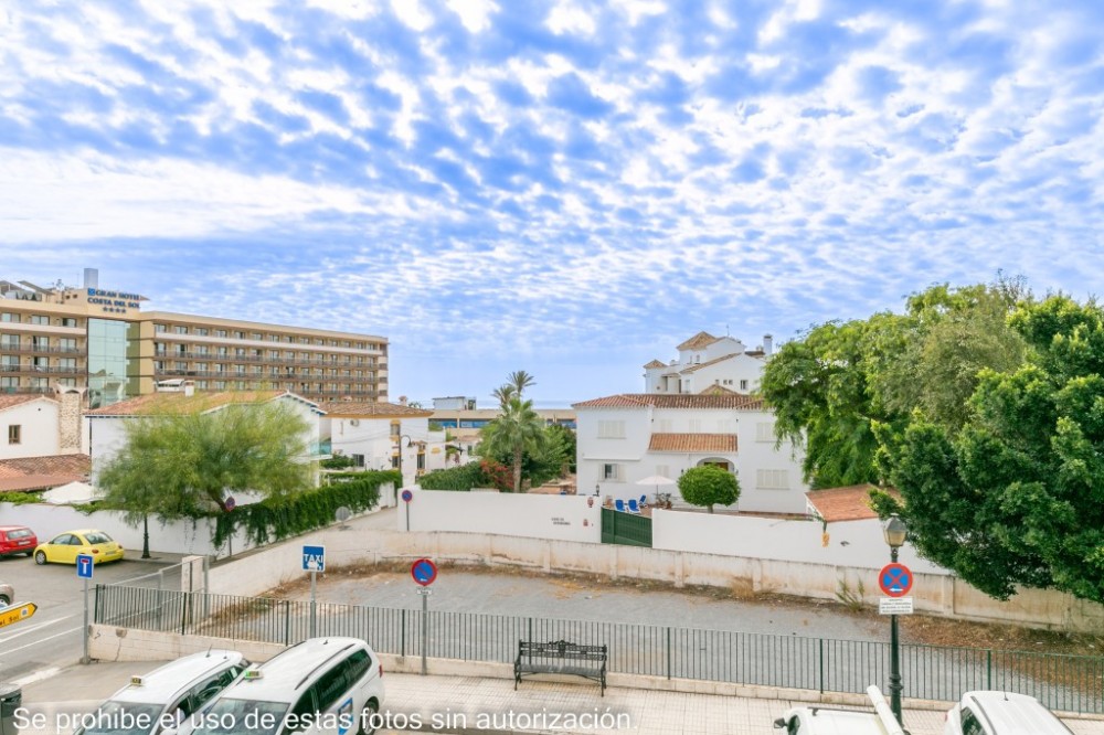 • Large apartment in La Cala de Mijas on the second line of the beach. It is distributed in a large entrance hall, a fully equipped independent kitchen, a large living room with a terrace now included in the on it, 3 bedrooms and 2 bathrooms (1 on suite). Property in good condition with double glazed windows, hot and cold air conditioning and built-in wardrobes. Well maintained community with elevator, pool and gardens. It has an optional parking space in another building about 7 minutes walk from the property. Built size: 128.48m2 IBI: 561,63 per year. Community: 486€ per semester (81€/month) Built year: 2000. Distances: Beach: 120mts. Bars/restaurants: 20mts. Supermarket: 700 meters. Malaga Airport: 30.7km