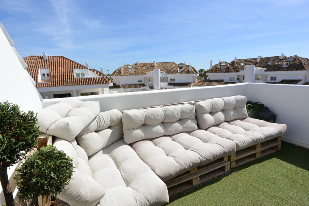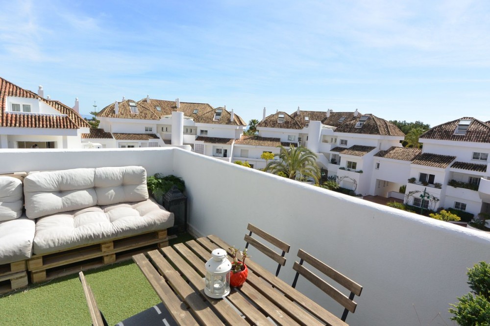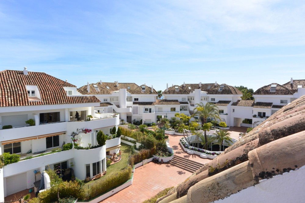 - This charming penthouse apartment is located in Las Lomas del Marbella Club, within a prestigious gated community featuring beautifully maintained gardens, three swimming pools — one heated in spring — and 24-hour concierge and security service. The property offers an entrance hall leading up to a bright and comfortable living-dining area, a fully equipped kitchen, two bedrooms and two bathrooms. From both the living room and the master bedroom, you can access a south and east-facing terrace with beautiful panoramic views of the mountains and the community gardens — perfect for enjoying Marbella’s sunny lifestyle just 5 minutes from Puente Romano and the best local amenities. A spacious parking space and a storage room are included in the price. Please note that holiday rentals are not permitted by the community statutes.