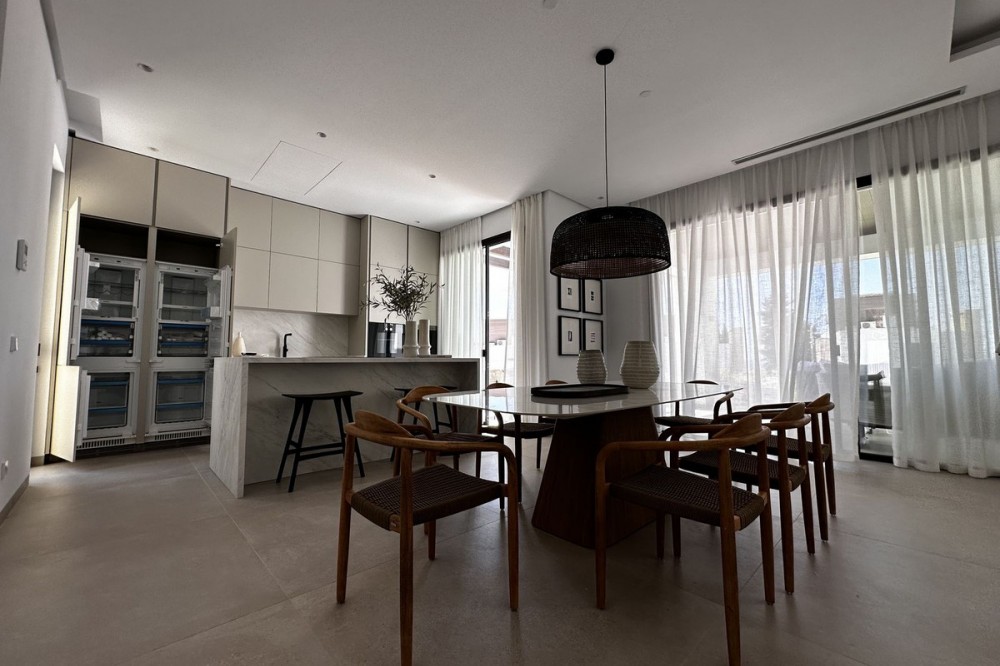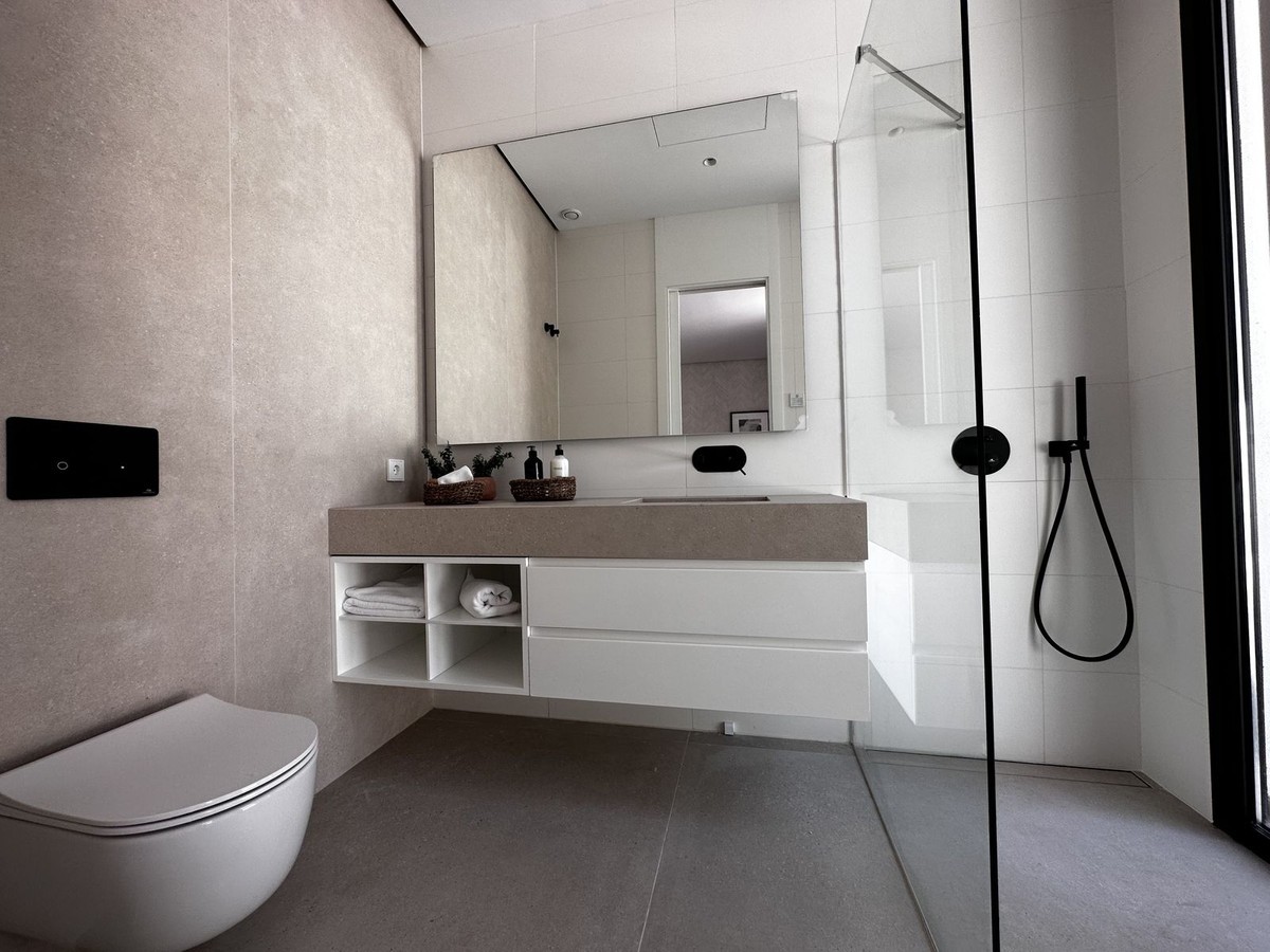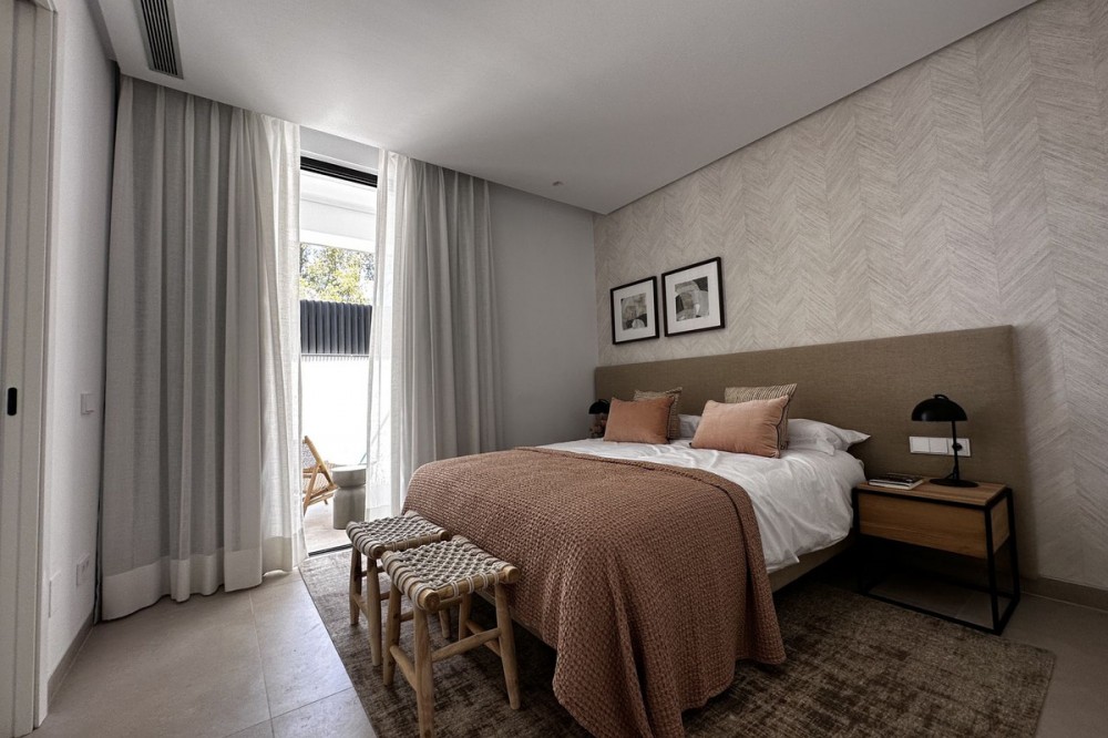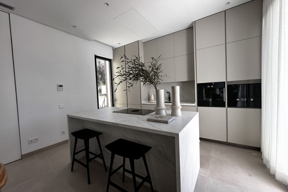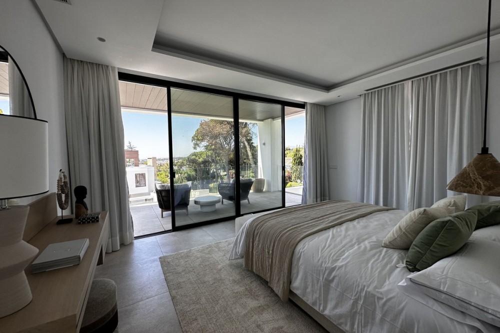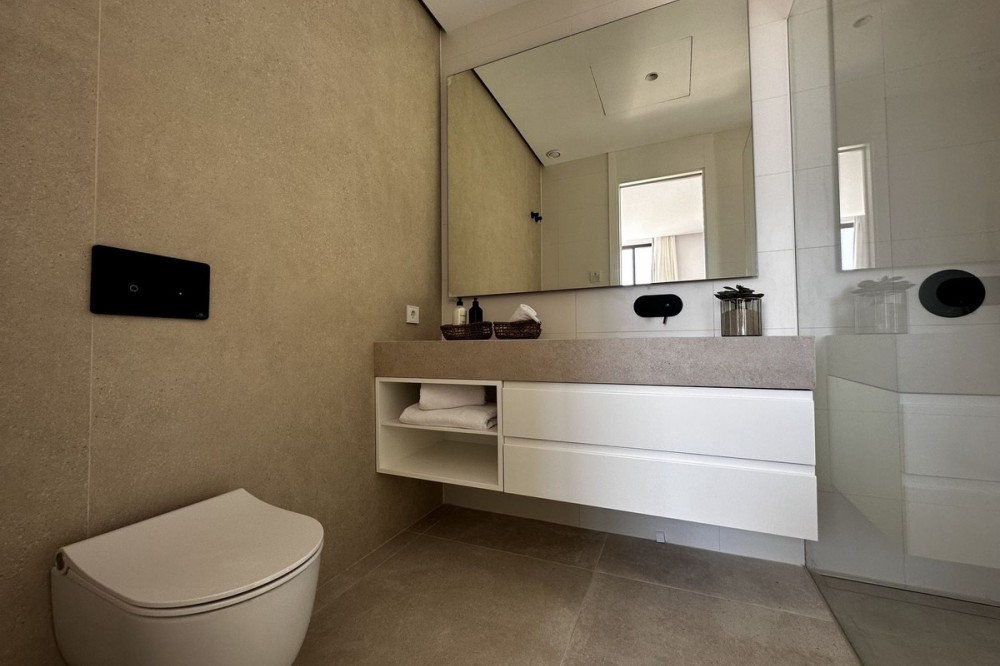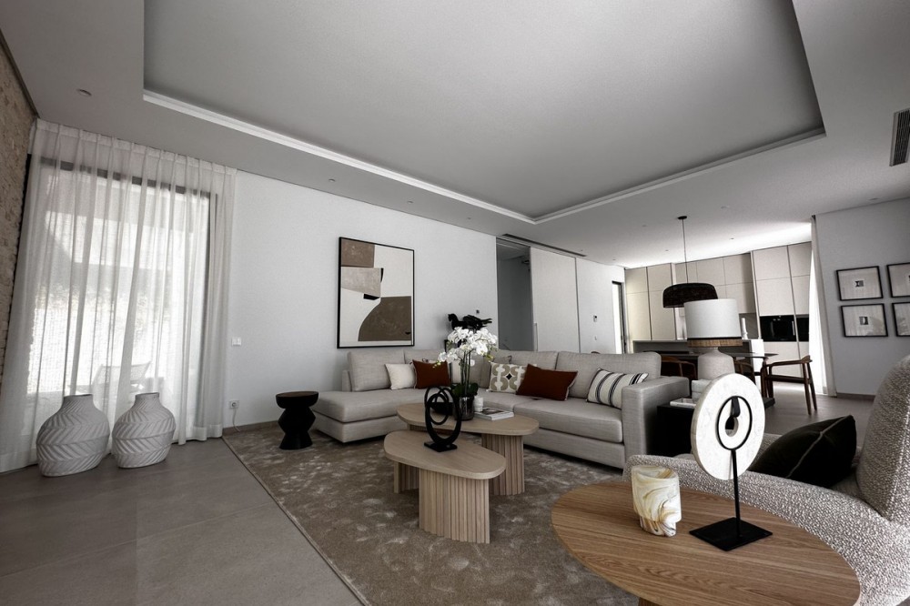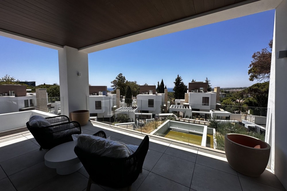 - Modern luxury villa of exceptional qualities is located in a gated community, consisting of only 15 villas, with 24 hour security guards and concierge services situated in a green oasis on the edge of the famous Golden Mile and just a few metres from the beach, a few minutes walk from the historic old town. With a plot of 1000m2, a total living area of 730m2, large terrace of 225m2 and includes 5 bedrooms and 5 bathrooms, a spacious living room, an open plan kitchen equipped with the highest quality furniture and appliances, a private lift connecting each level of the property, cinema, sauna and hammam, under floor heating, a rooftop solarium with beautiful views towards the sea and private garage for 2 cars + 2 parking spaces. Both the garden and pool will be centrally maintained by the community for a carefree lifestyle. Construction of the villa is finished.