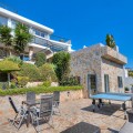 - Welcome to Villa Perla in El Faro this unique villa offers everything you could wish for in modern luxury living. The villa has been expanded and completely renovated during the years 2016-2018. The technical and constructional characteristics of the house are unparalleled in Spain. All rooms have insulated floors and stylish laminate, wet rooms have tile and underfloor heating, and the outer walls have insulation and double masonry, which ensures excellent energy efficiency. All windows and doors have thermal glass and anti-theft glass The house has an efficient mechanical ventilation system built by a Finnish company with inlet and outlet air with heat recovery. Three separate ventilation machines distribute air to a residential building, a gym and a garage. In addition, the house is connected to the natural gas network, so the domestic water and the swimming pool are heated inexpensively. In the upstairs living room, you can enjoy beautiful evenings by the gas fireplace connected to the gas network. Each room has its own separate air heat pump for cooling and heating. In addition, the living room has electric sun blinds on the inside of the window panes. Villa Perla also offers good opportunities for relaxation in the swimming pool and hot tub on the pool floor with salt water. The swimming pool also has a countercurrent device. The sauna has Helo sauna automation and a timed digital heater. The kitchen/bar on the pool floor has a bar window that opens up electrically in the direction of the terrace. The security of the house is top class thanks to electronic locking, burglar alarm equipment and camera surveillance. The lift doors in the garage and on the upper level are practical and easy to use. The apartment house has space and comfort for the whole family; 6 bedrooms, 6 bathrooms, 3 wc, 2 kitchens, 2 living rooms, utility room, storage room for linen and lockers, study with access through a secret door and a gym with air conditioning and mechanical supply/exhaust air. The sauna has two outdoor showers and a toilet. The garage can accommodate two cars and three motorcycles. The exit next to the garage leads to El Faro beach, which is less than 200 meters away, with restaurants. The property is sold with movables; two fully equipped kitchens, dining tables, living room furniture, TV chairs, bar furniture, sun loungers, outdoor furniture and all rooms have double beds (14 beds in total) and a sofa bed. In addition, the store includes two large TVs, gym equipment. Contact us, we will be happy to present this great property.
