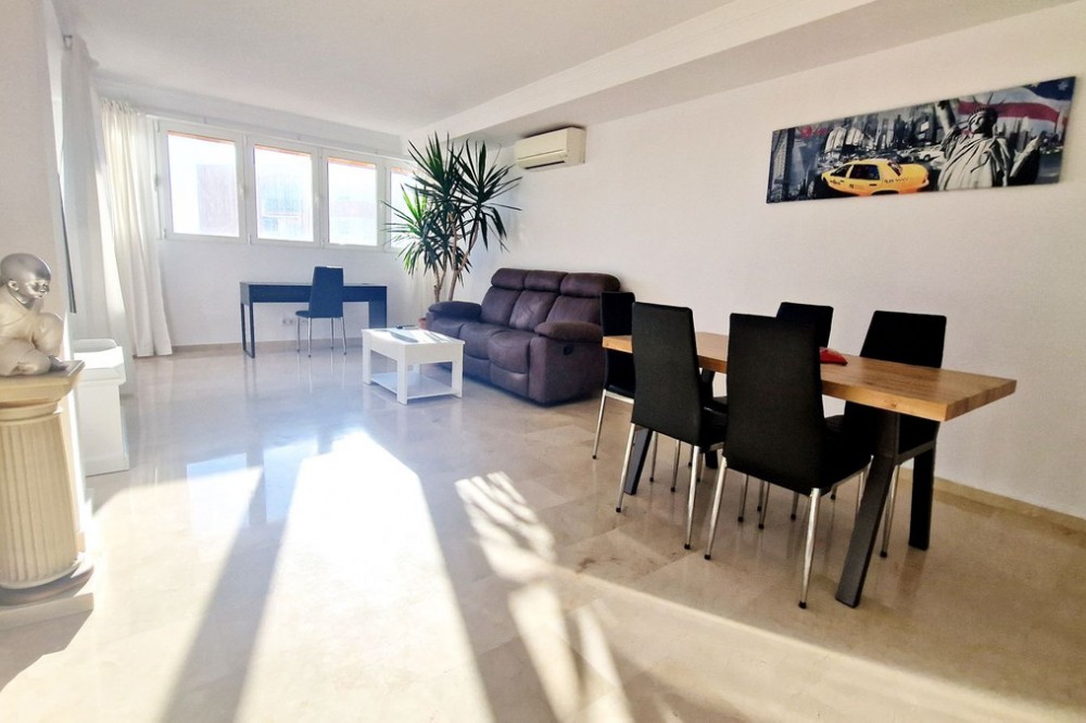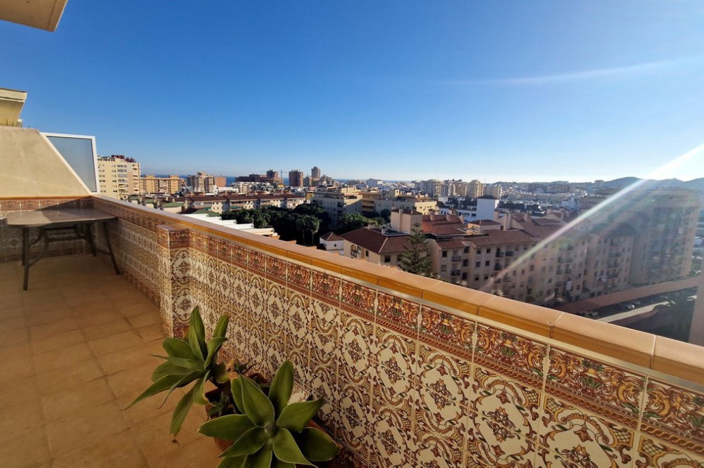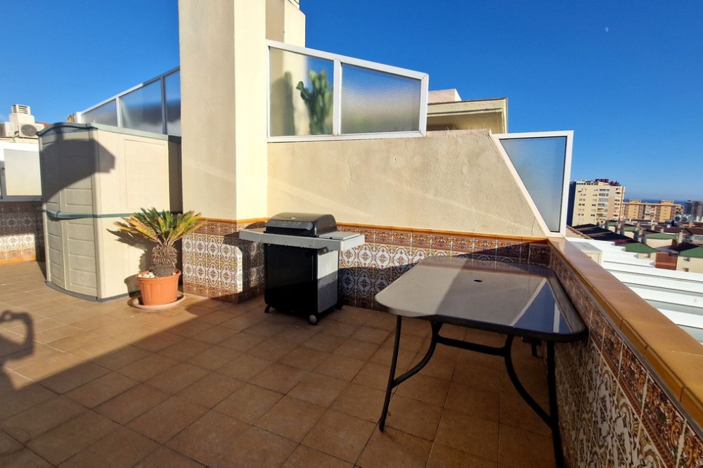 - Spacious Duplex Penthouse with Panoramic Views in Fuengirola This impressive 4-bedroom duplex penthouse offers bright interiors, generous outdoor space, and stunning panoramic views. Spread across two levels, it is designed for both comfort and entertaining. On the main floor, you’ll find an entrance hall, a fully fitted kitchen with utility area, a spacious lounge-dining room, and a bedroom with access to a terrace. An additional bedroom and bathroom complete this level. Upstairs, two more bedrooms, a bathroom, and a wraparound terrace await – ideal for enjoying the sun all day, with a barbecue and dining area for alfresco living. A spiral staircase connects the two levels. The property includes a large underground parking space and is set within a secure gated community with pool, lift, and wheelchair access. Perfectly located within walking distance to the beach, shops, schools, and all amenities. Key Features: 4 Bedrooms | 2 Bathrooms 95 m² built + 62 m² terraces Large wraparound terrace with sea views & BBQ area Fully fitted kitchen with utility room Part furnished, move-in ready Communal pool & gardens in gated complex with 24h security Lift, marble floors, double glazing, air conditioning Large underground parking space included Excellent location, walking distance to beach & amenities A rare opportunity to own a spacious penthouse in Fuengirola with unbeatable views and location. Viewing highly recommended! Penthouse Duplex, Fuengirola, Costa del Sol. 4 Bedrooms, 2 Bathrooms, Built 95 m², Terrace 62 m². Setting : Town, Commercial Area, Close To Shops, Close To Sea, Close To Schools, Urbanisation. Orientation : West. Condition : Excellent. Pool : Communal. Climate Control : Air Conditioning. Views : Sea, Panoramic. Features : Lift, Fitted Wardrobes, Near Transport, Private Terrace, Solarium, Ensuite Bathroom, Access for people with reduced mobility, Marble Flooring, Double Glazing. Furniture : Part Furnished. Kitchen : Fully Fitted. Garden : Communal. Security : Gated Complex, 24 Hour Security. Parking : Underground. Utilities : Electricity. Category : Holiday Homes, Resale.