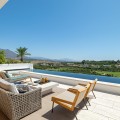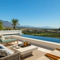 - The panoramic villa is embedded in the exclusive golfing community of Finca Cortesin, surrounded by the Mediterranean nature, overlooking the mesmerizing Costa del Sol and the sea. This brand new 3-bedroom villa is equipped with modern and functional furniture which is included in the sales price. The entrance level with carport and stairways lead down to the villa through a beautiful garden area. The panoramic villa is located on a ground level facing south with a spacious sun terrace and 13 m wide infinity pool, with spectacular views of the 5-star golf course of Finca Cortesin and the Mediterranean coast. The property is built on one level, while the garden is distributed over three levels. In the first garden area there is a BBQ and dining area with an outdoor kitchen. In the lowest level there is a spacious kitchen garden with many tropical trees and plants, including fig, mango, lemon, lime, pomegranate and banana trees. The villa is brand new and ready to move into. Comprising of open plan living spaces, with a stunning fully fitted modern kitchen with central isle, a dining area and continuing into the sitting area that enjoys panoramic views over the golf. The living area opens onto a partially covered terrace area, with the infinity swimming pool with views down to the Mediterranean Sea. 3 large bedrooms all with en-suite bathrooms. Each bedroom with large picture windows opening onto terrace. The bathrooms are equipped with a free standing bathtub and or a spacious shower, as well as having 2 washbasins each, offering total relaxation. Set within the highly sought after 5-star golf resort of Finca Cortesin, surrounded by modern villas, golf courses and luxury services. A short drive to the beaches in the area of Casares, close to Estepona town and the exclusive town of Sotogrande in the opposite direction.