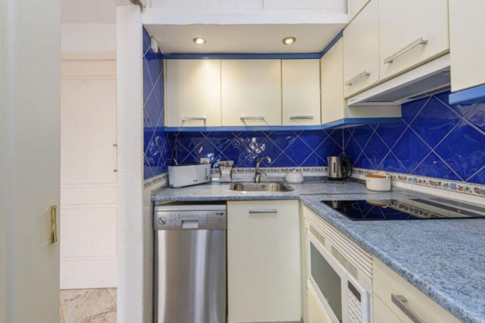 - Ground Floor Apartment, Marbella, Costa del Sol. 1 Bedroom, 1 Bathroom, Built 50 m², Terrace 10 m². Setting : Commercial Area, Beachside, Close To Port, Close To Schools. Orientation : South. Condition : Excellent. Pool : Communal. Views : Sea, Mountain, Country, Pool. Features : Covered Terrace, Lift, Fitted Wardrobes, Bar. Furniture : Fully Furnished. Kitchen : Fully Fitted. Garden : Communal. Security : 24 Hour Security. Parking : Garage.