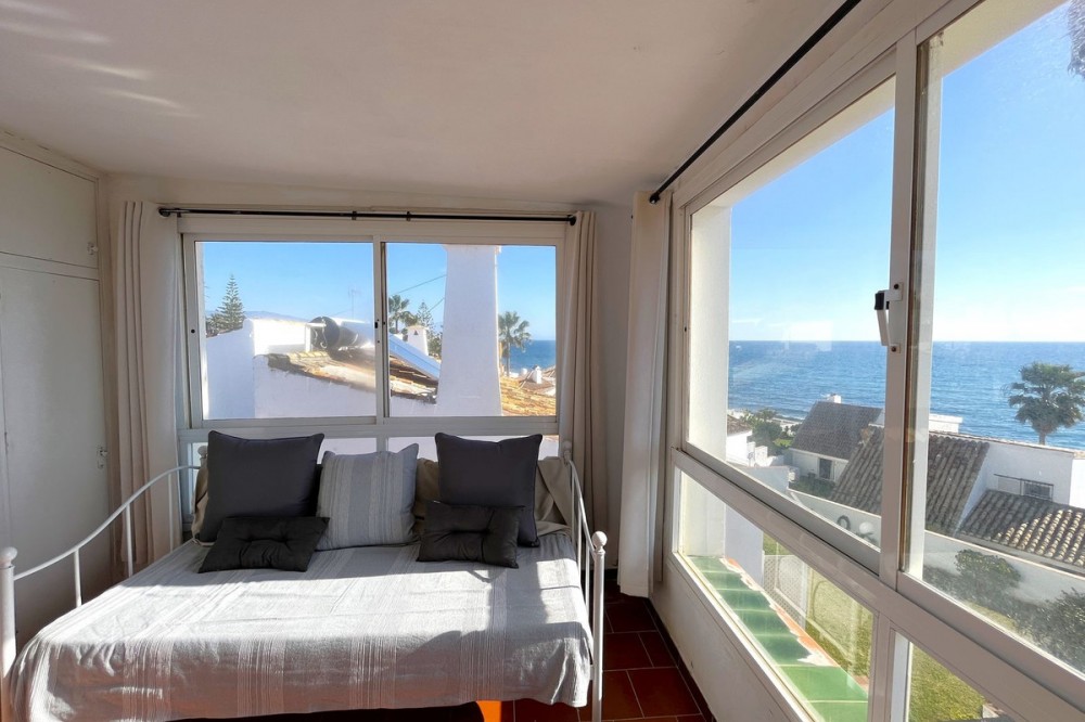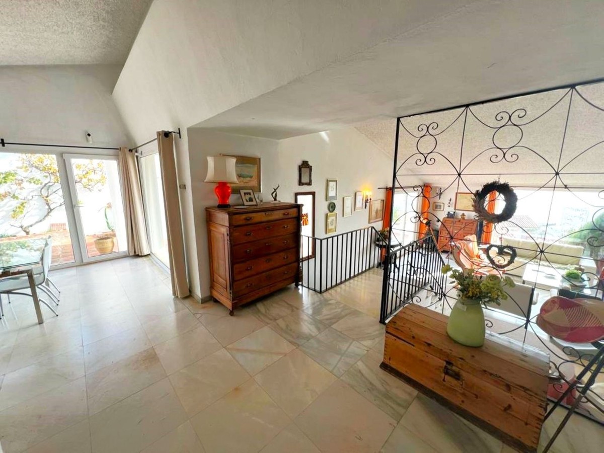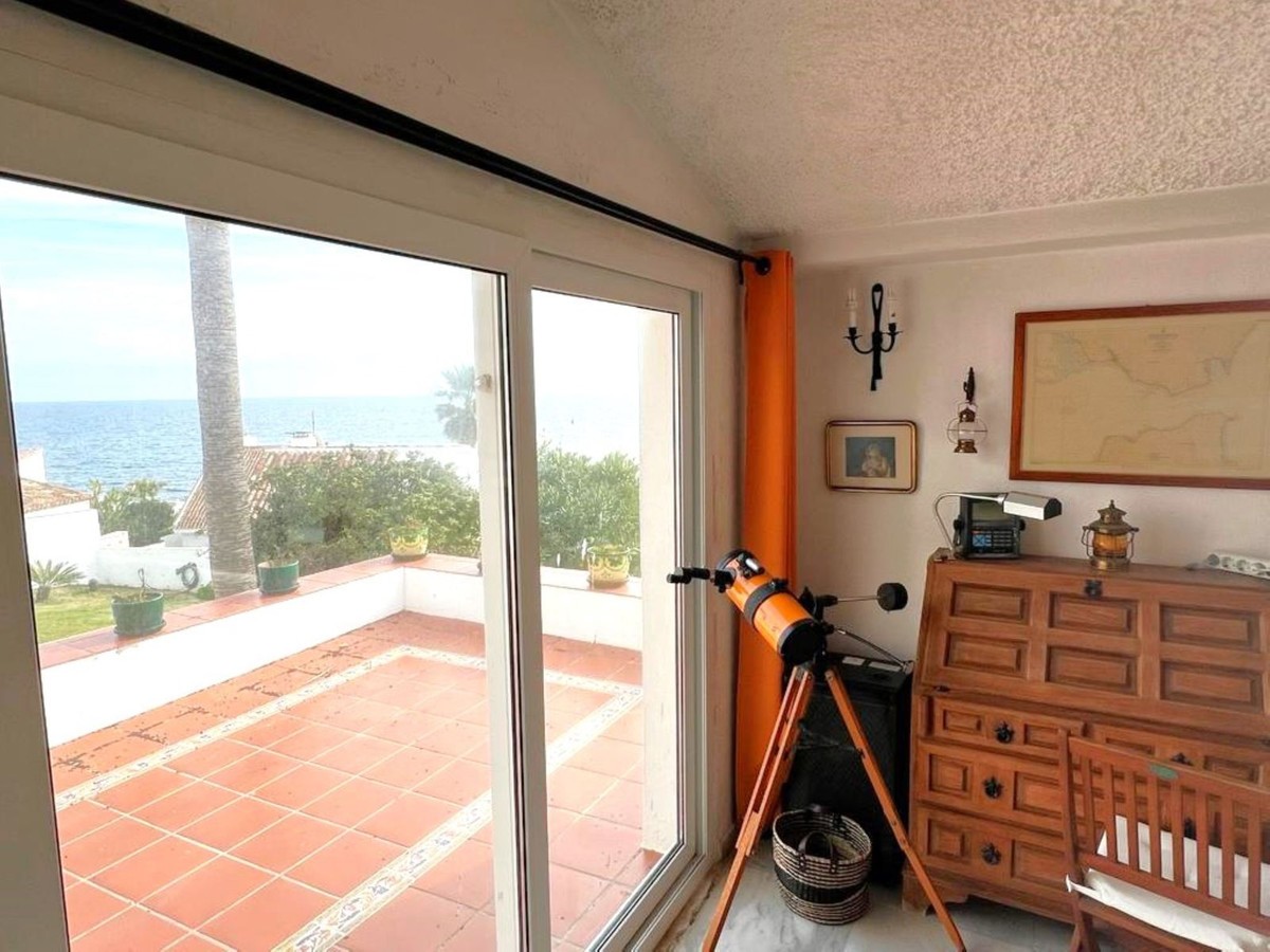- MAGNIFICENT DETACHED VILLA WITH BEAUTIFUL SEA VIEWS! Located in a URBANIZATION ON THE BEACHFRONT LINE, ONLY 2 MIN FROM THE BEACH ON FOOT AND 7 MIN BY CAR FROM THE HISTORIC CENTER OF ESTEPONA. It is very well connected on foot through the beautiful coastal path and is close to supermarkets, schools and the new High Resolution Hospital of Estepona. It has a large garden area and spacious terraces with beautiful panoramic sea views, in addition, the property is surrounded by gardens and houses with the attractive design style of the famous architect Aubrey Marcus David and has SOUTHERN ORIENTATION. The house is distributed over three floors. The main entrance to the plot leads to a porch where the entrance of the house, which has a living area on two levels that enjoy great light, beautiful views of the Mediterranean and direct access to the terrace bordering the garden and a large kitchen, on the top floor and the first floor are the bedrooms and bathrooms. The house was renovated a few years ago and has been well maintained. The urbanization is very well maintained and has artificial grass tennis courts, gardens, 6 communal swimming pools, and covered parking areas within the grounds. WE HIGHLY RECOMMEND YOUR VISIT!