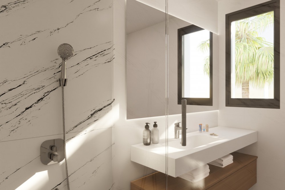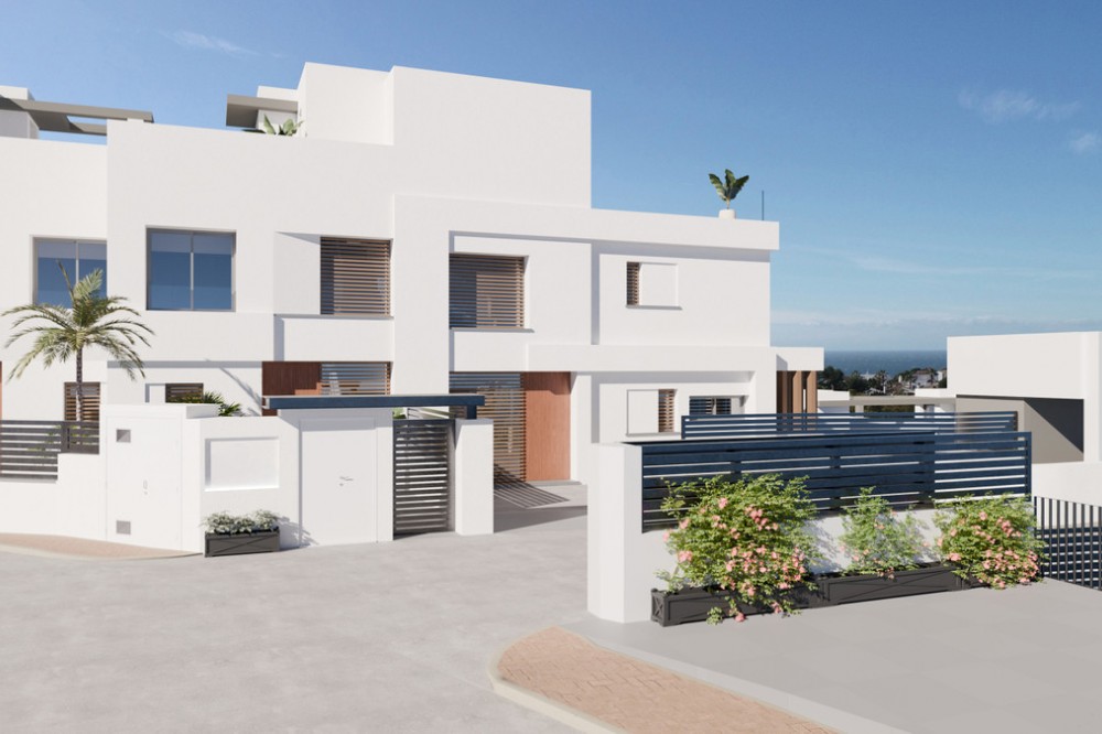 - New Development: Prices from €1,261,150 to €1,819,182. [Bedrooms: 3] [Bathrooms: 2] [Built size: 268m2 - 387m2]. This exclusive project with an elegant Scandinavian design blends harmoniously with the surrounding nature. The architecture of the townhouses follows seamlessly the undulating shapes of the waves. BEAUTY. PASSION. PERFECTION. South facing unique energy efficient homes, with beautiful panoramic sea views and breathtaking sunsets, makes living here enjoyable and fun under the sun. THE HIGHEST STANDARD All the materials are of the highest quality, with well-known brands, modern gourmet kitchens, designer bathrooms, underfloor heating in the whole house and high energy efficiency are details that make the difference. Enjoy panoramic sea views and lovely sunsets on the roof top terrace of your new home. The complex is next to a green area, which will be designed using beautiful trees and a little park where you can walk and enjoy the fresh sea breeze. The landscaping blends perfectly into the area. RIVIERA DEL SOL This charming area has everything you could ask for. A car always comes in handy for travelling to Marbella or Malaga. Located next to Marbella and just a 20 minutes drive to Puerto Banus. Airport is only 25 minutes away. The beach, Malaga and all nice restaurants are within easy reach. Plus, you have a golf course, tennis, padel and a childrens playground nearby.