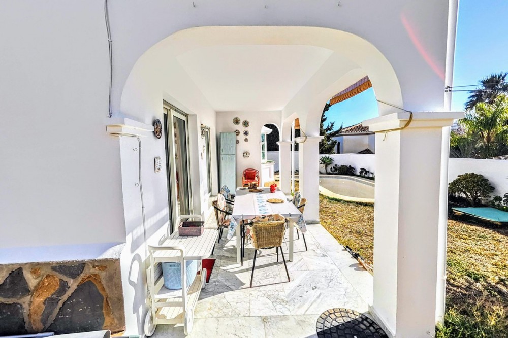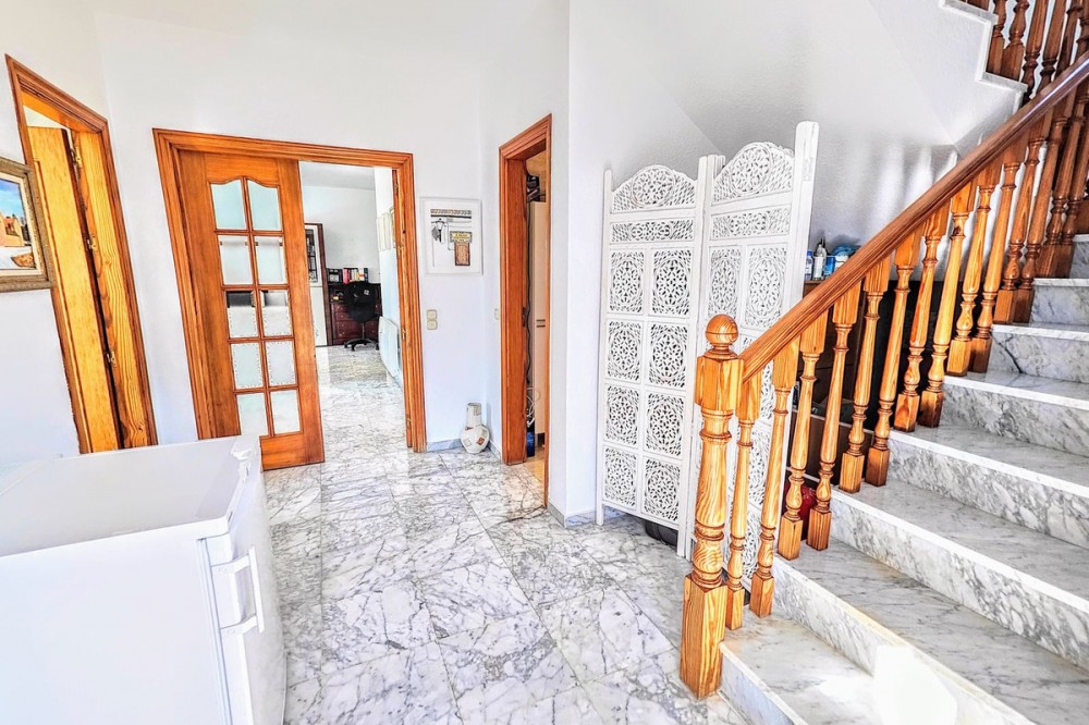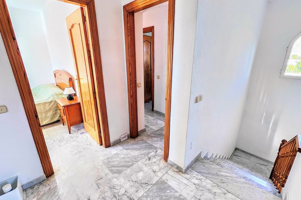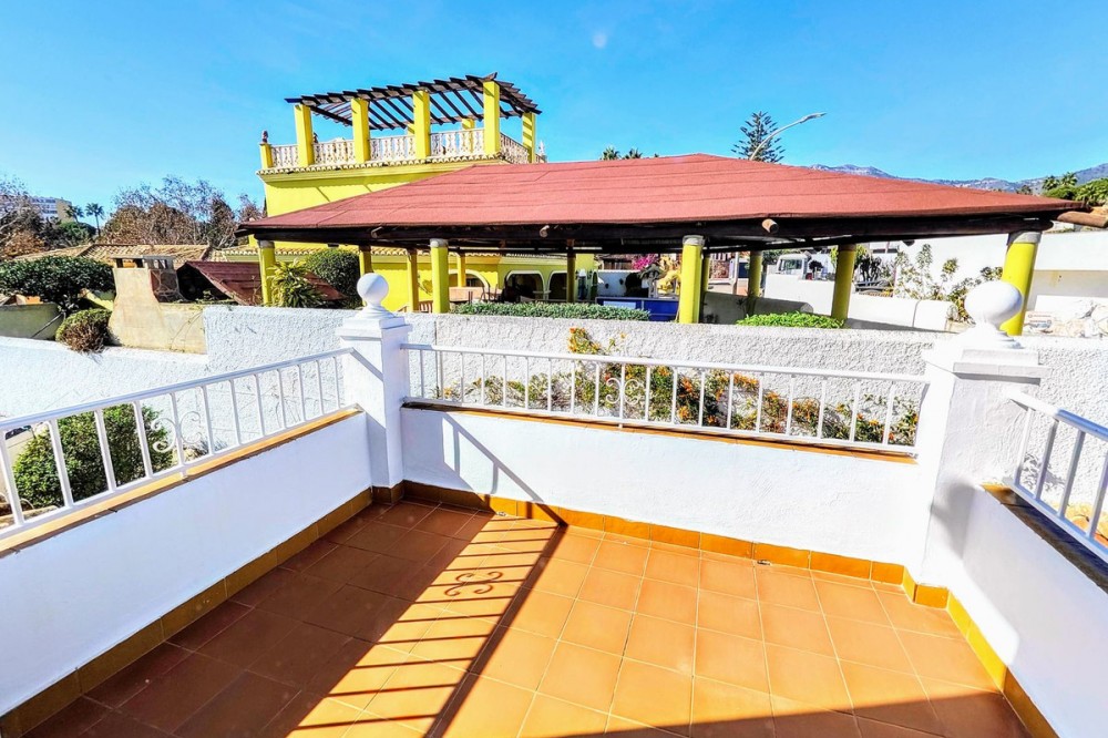 - DETACHED HOUSE WITH A PLOT OF 636 M2 IN THE HEART OF BENALMÁDENA COSTA IN THE PLAZA SOLYMAR AREA LESS THAN 500 METERS FROM PUERTO MARINA. It is distributed on two floors: The main floor is distributed with a large living room with a large window with direct access to the pool area. Fully furnished and equipped independent kitchen. 1 exterior double bedroom. 1 full bathroom with shower. Large entrance hall with storage areas. On the second floor we find 3 large double bedrooms, the master bedroom with an en-suite bathroom and two of them with a terrace. 2 full bathrooms. The land has large gardens and a swimming pool and a storage room. The house also has an interior garage, low consumption electric heating and fireplace in the living room.