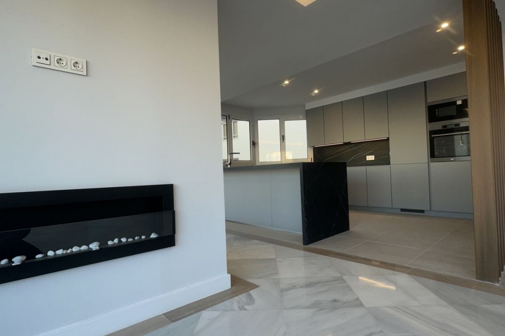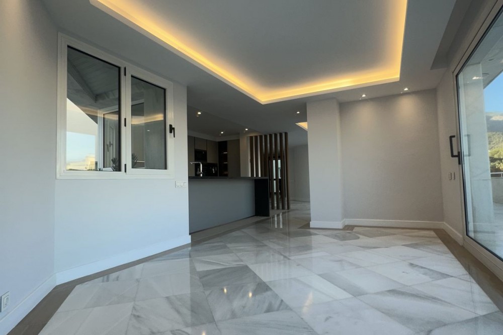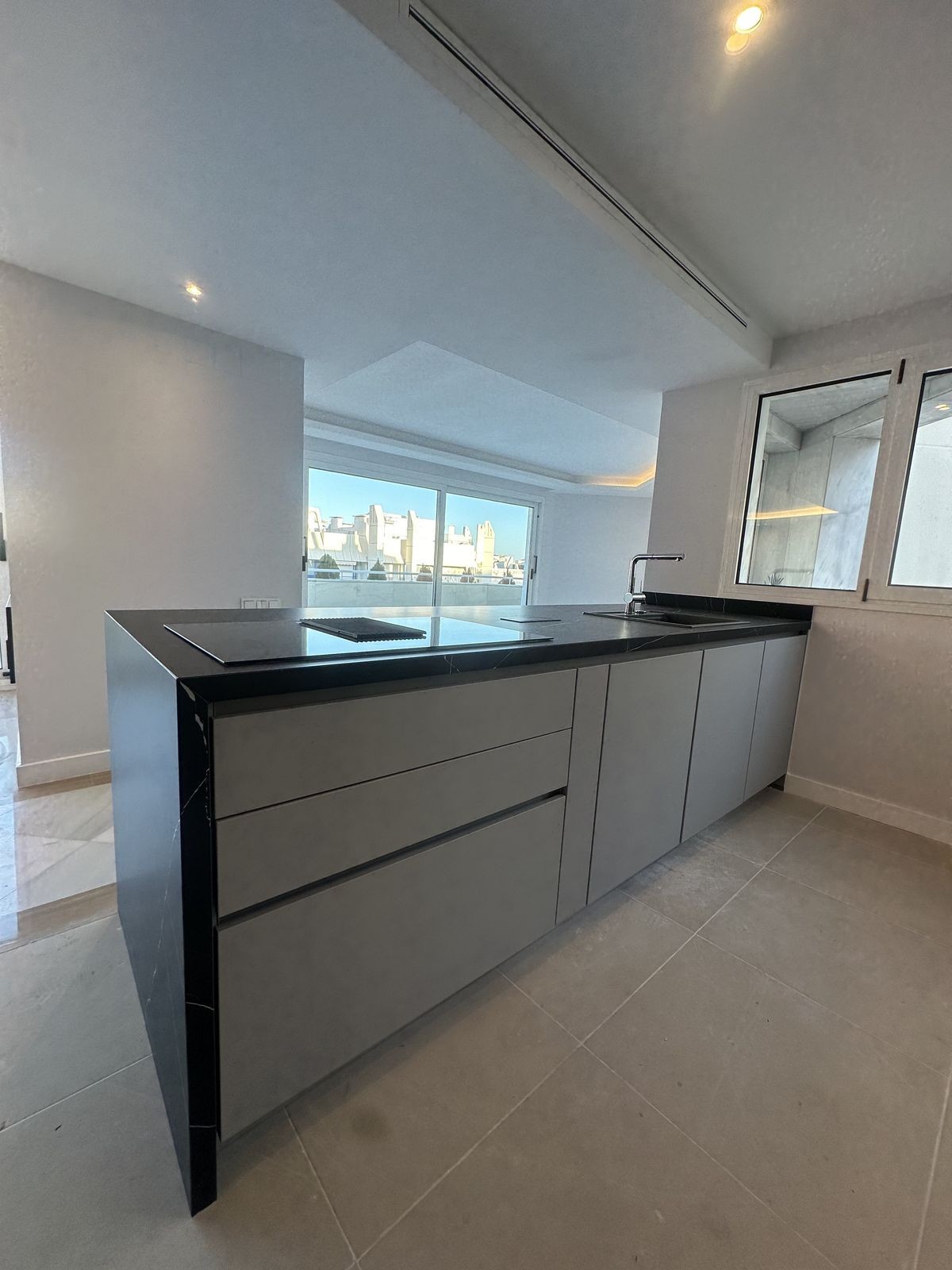 - We present a unique opportunity to acquire a newly renovated, brand-new duplex penthouse in the luxurious Cipreses del Mar ( Náyade building ) development, located in the heart of Marbella's Golden Mile and the second line from the sea, offering magnificent and open views of the sea and mountains. The development offers all kinds of amenities, including a large communal pool, a children's pool, and a perfectly maintained garden area. It also features 24-hour concierge service and security. In addition to enjoying the luxury of having the sea just 100 meters away, you will find all kinds of restaurants, supermarkets, pharmacies, and cafes nearby. The property consists of three bedrooms (two of them en suite), three bathrooms, a guest toilet, a large furnished kitchen area, a living room with a fireplace, and a dining room. The price includes two spacious garage spaces. The first floor is distributed into an entrance hall that leads to the living room, kitchen, and dining room, all of which share a large terrace, a guest toilet, and a bedroom with an en-suite bathroom. A modern staircase takes us to the second floor, where there is another bedroom, a full bathroom, a wardrobe area, and a large master bedroom with a dressing area and a full bathroom, all with access to the large terrace with views. The property has been recently renovated with top-quality materials and finishes, making it one of the best properties for sale in the area. 3D renderings with a real decoration project for furnishing are attached. Without a doubt, it is worth a visit!