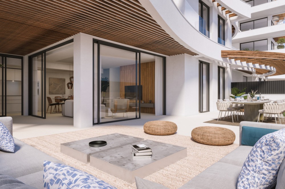 - New Development: Prices from €704,000 to €2,010,000. [Bedrooms: 2 - 3] [Bathrooms: 2 - 3] [Built size: 90m2 - 125m2]. Situated in the vibrant heart of Benalmádena, just steps from the marina and the beach, this exclusive development blends bold architecture with coastal elegance. Its distinctive wave-like façade opens onto expansive terraces, inviting in the Mediterranean breeze and framing panoramic sea views. Each residence is designed for modern and comfortable living, featuring spacious and luminous interiors enhanced by large windows and high-quality finishes. The open-plan layout creates a seamless connection between indoor and outdoor spaces, offering a bright and welcoming atmosphere in every room. Communal areas have been thoughtfully planned to ensure relaxation and privacy while placing you close to everything. Next door, Puerto Marina offers a wide range of leisure, dining and shopping options. Just a short walk away, Torrebermeja Beach stretches out with fine sand, excellent facilities and vibrant cultural activities. Well connected to Málaga, the airport and other coastal towns, this is a unique opportunity to enjoy Mediterranean living in a stylish and well-serviced setting where the energy of the city meets the calm of the sea.
