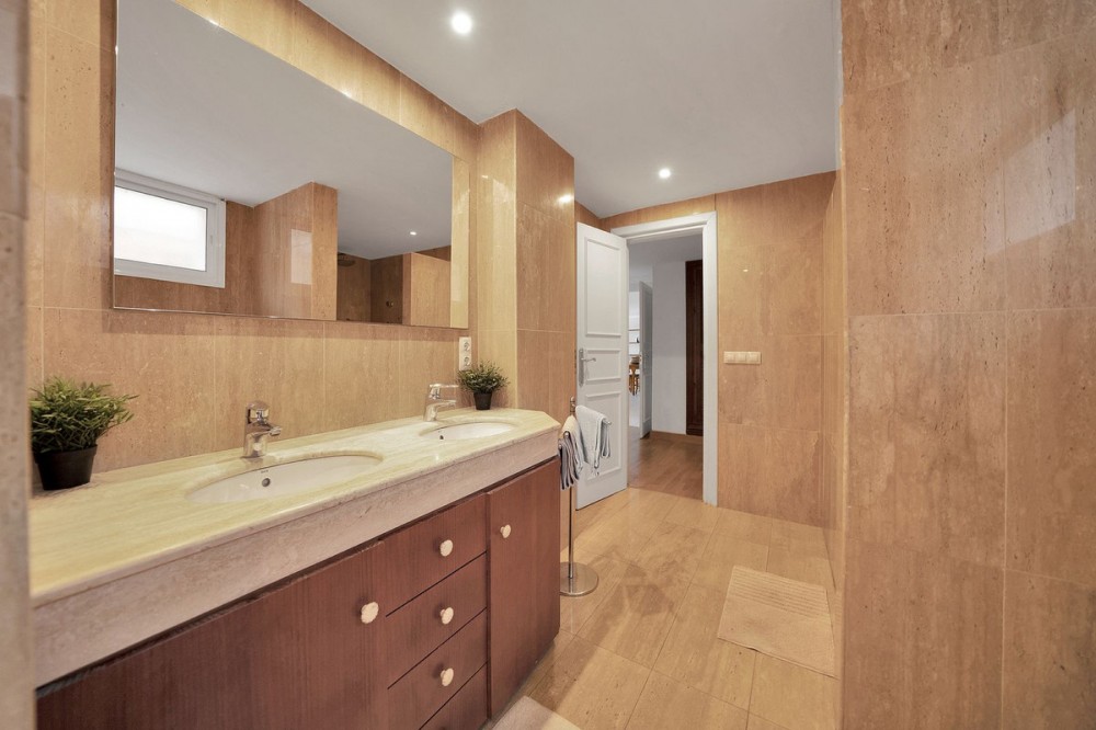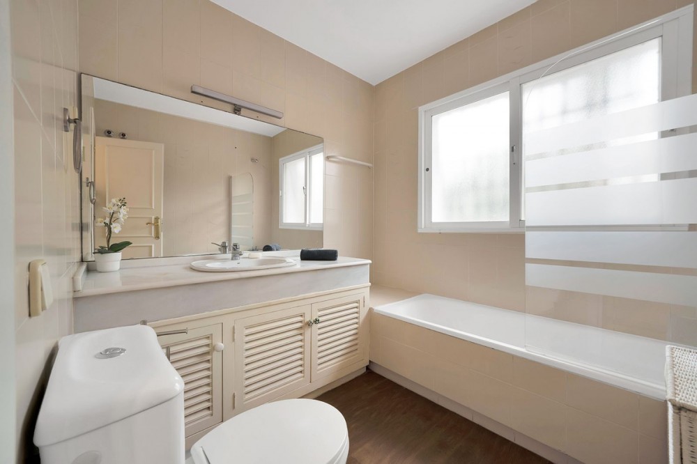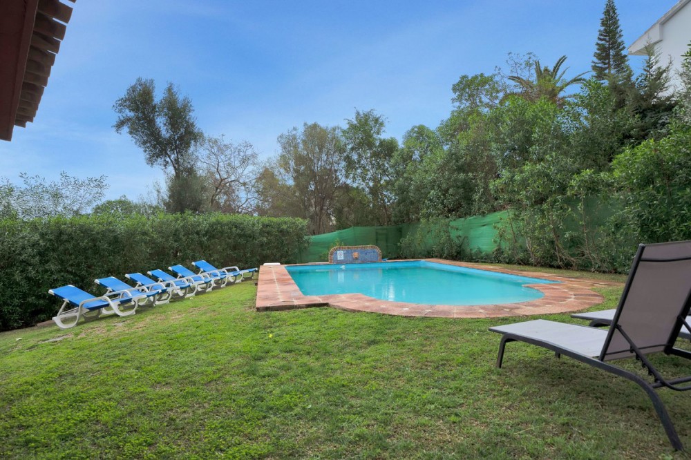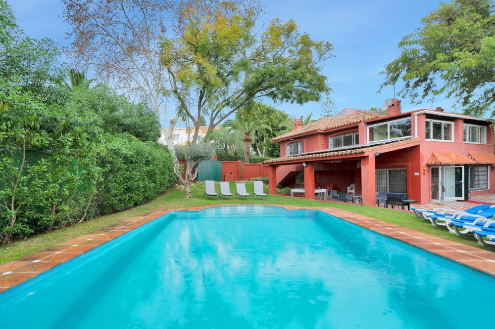 - Villa located in a quiet residential area of Cerrado de Elviria, 800m from the beach, close to supermarkets and restaurants and 8km from the historic centre of Marbella. The property is completely fenced with lots of privacy, swimming pool, large garden with trees and fruit trees. It is distributed in: At entrance level: hall with toilet, fully equipped kitchen, spacious living room and conservatory with wooden ceiling, 3 bedrooms, 2 bathrooms. Lower floor: large living/dining room with fireplace, master bedroom with ensuite bathroom and dressing room, two more bedrooms sharing a bathroom. There is no inside connection between the two floors at present, as they are normally rented out as separate units. Beautiful covered terrace, chillout area and barbecue. Central heating and hot/cold air conditioning. It also has solar panels. Space for 2 cars, electric car charger system. Needs renovation.
