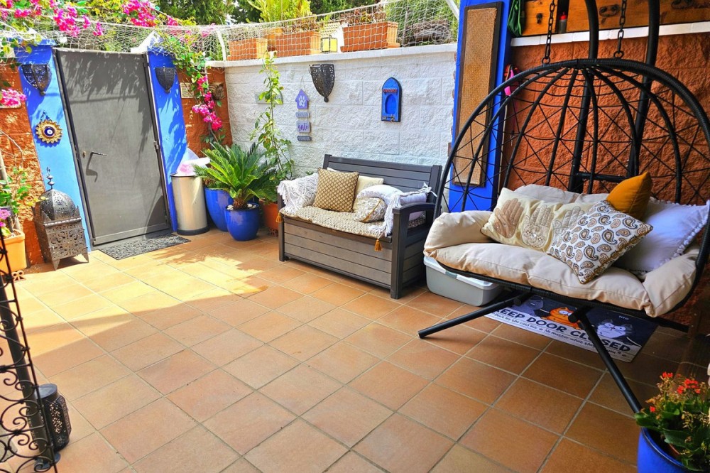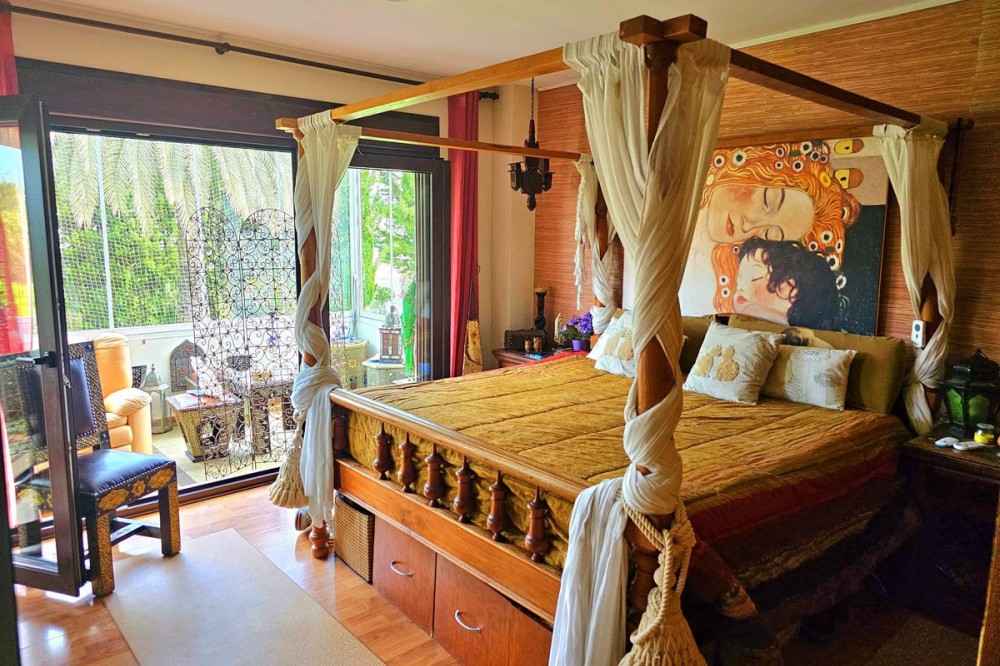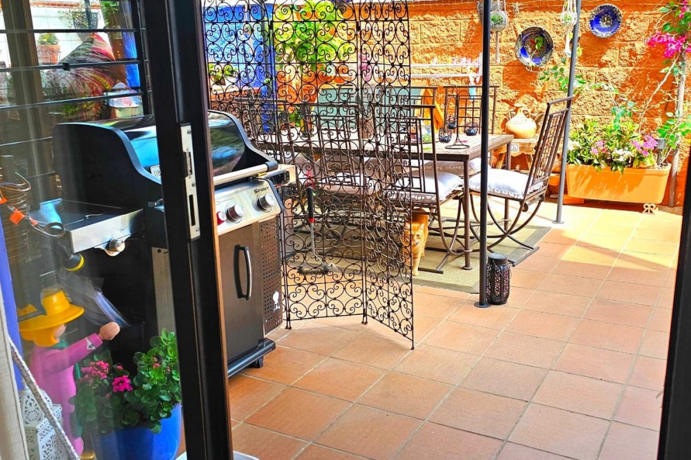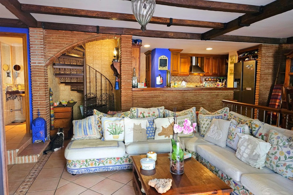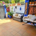 - This duplex is inside a beachfront complex and one of the first houses near the beach with sea views from the upper terrace. At the entry you are in a big yard with barbacue, eating area and a lot of free uncoverd space for chill out area or anything you like.crossing the yard you enter a spacious living room with an open kitchen, all very rustical style and there is another doble bed in a separate area next to the living room towards the yard with a curtain for the division and there is one bathroom. Going up the stairs to level 2 you will find a main bedroom and another smaller bedroom both with direct access to the luminous terrace with the sea views, you have views to the garden and pool and to the sea from there, just magnificant. The comunity pools , 1 big one smaller for children have sea views as well. Also there is a tennis court in the comunity garden area and the parking is inside the urbanisacion on the outdoor parking area. You are just next to the Area of Seghers in Estepona and could walk to the port of Estepona on the promenade in 25 minutes, wirh the car it is 3 min. drive into Estepona port. On the way to the port to come along the famous Playa Cristo Beach , where the family with kids are so happy as tge bay has very low water level fin the whole bay.