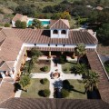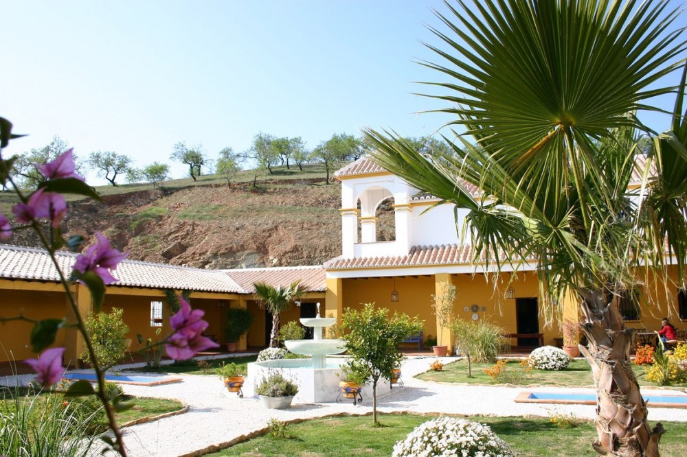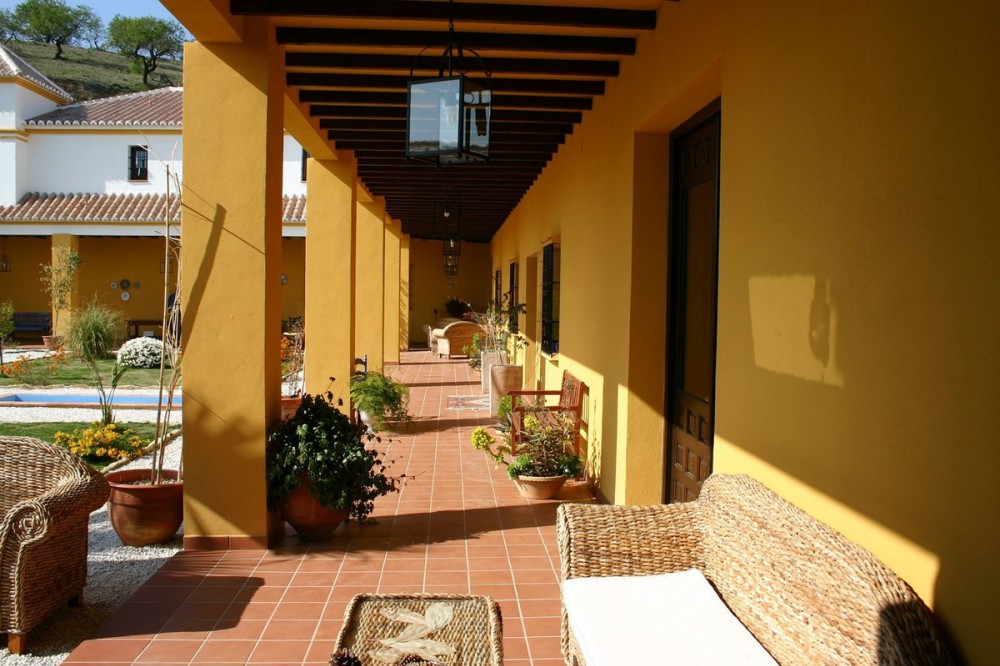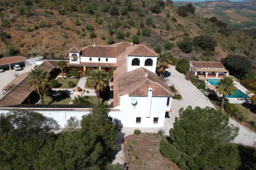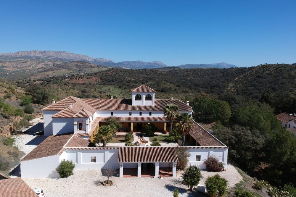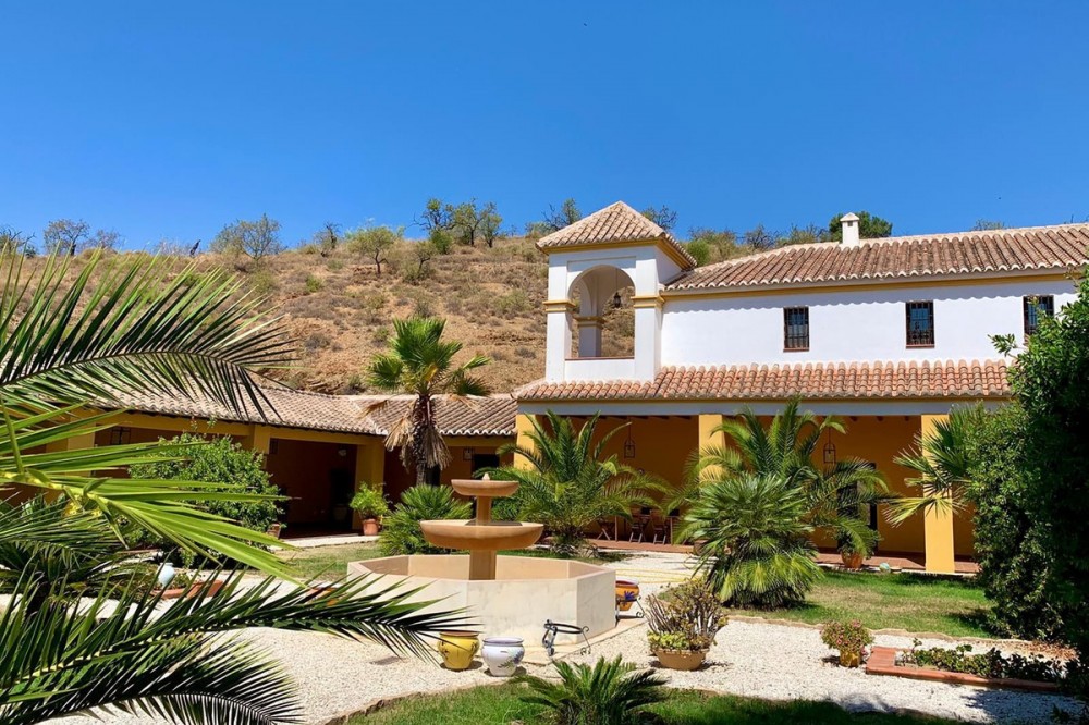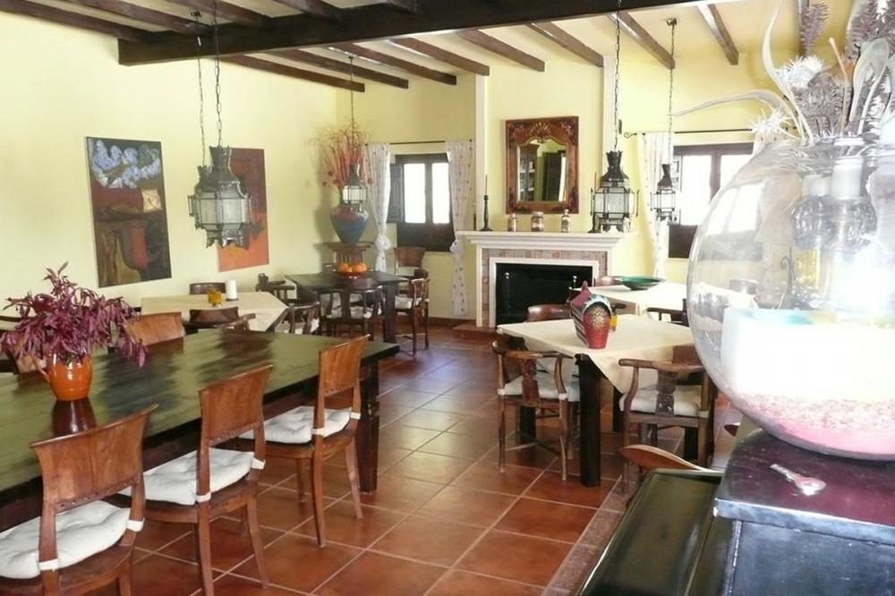 - Exquisite country estate with tourist license for 22 guests, comprising the primary residence alongside an independent owner's or caretaker's villa. Positioned at the heart of Andalusia, the estate is ideally located for exploring picturesque locales and major cities such as Málaga, Marbella, Granada, Sevilla, and more. Constructed two decades ago, this Andalusian-style hacienda showcases the finest craftsmanship. While boasting walls as substantial as those of traditional Andalusian cortijos, modern materials with exceptional thermal attributes were employed. The woodwork, crafted entirely from solid wood, is fortified with heavy-duty double glazing to curtail winter heat loss and enhance sun protection during summer. The layout spans two stories, complemented by an additional basement space for utility functions. The two levels, interlinked by an elevator, are thoughtfully arranged as follows: First floor: Eight spacious double bedrooms, four of which boast balconies that overlook the courtyard and/or the scenic countryside. The bathrooms exhibit consistent design elements, while the bedrooms showcase diverse color schemes to set them apart. Every room is furnished with modern four-poster beds, whether in double or twin configurations. Each bedroom offers abundant space, luxury, and is sizable enough to incorporate a seating area and a work desk. A linen storage area is conveniently located on this level as well. One level higher is the "Mirador" currently used as atelier. Ground floor: A grand double-height entryway with an open staircase; a dining room featuring a functional open fireplace; a capacious living room, also with a functional open fireplace; a compact bar; restroom facilities; two bedrooms, each with its own attached bathroom; access to the enclosed internal courtyard and to the covered parking area situated at one side of the residence. In the basement, a sophisticated Swedish water heating system, a pressurized water setup, a 12,000-liter water reservoir, a wine cellar, a linen storage area, and a multipurpose storage room are housed. Moreover, the gas-fired underfloor heating boiler resides in the basement, accompanied by gas containers stored in a dedicated external chamber. Externally, the property boasts breathtaking vistas, extending across the countryside to the renowned El Torcal ridges. The meticulously tended gardens surrounding the edifice enhance its allure. Just a short descent below the primary residence, a 16m x 8m swimming pool is nestled, complemented by a structure housing a bar, two restrooms, and the pool's equipment room. Access to the property is facilitated by an asphalt or concrete road that leads to an impressive tree-lined entrance drive. At the pinnacle of this drive, covered parking space for up to eight cars is augmented by ample additional parking area. The property is offered for sale in its current state, fully furnished and ready for immediate occupancy. Only the owner's personal belongings and select Persian rugs will be retained prior to the sale. The main residence is authorized for use as a hotel or a rural retreat, available for complete rental. The owner's or caretaker's residence is discreetly situated at a short distance, separated by the landscape. Boasting its own entrance drive and parking enclave, the house encompasses an expansive, well-lit living/dining space; a split-level kitchen; three double bedrooms (one with an en-suite bathroom); an additional bathroom; a covered outdoor terrace; a sizable workshop/storage area; and a petite pool. Enveloped by mature gardens, this property guarantees utmost seclusion.