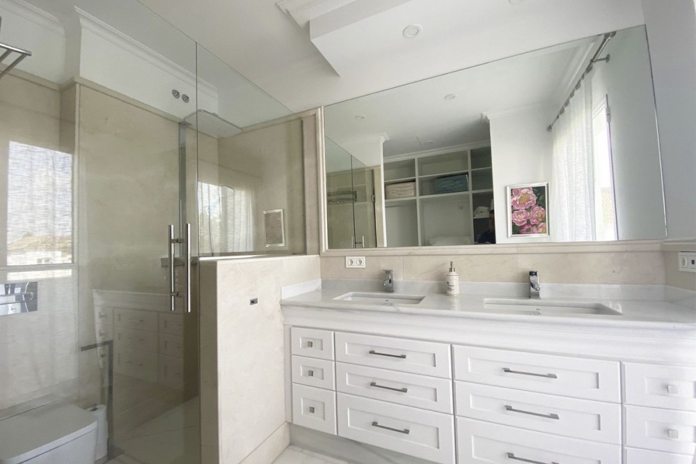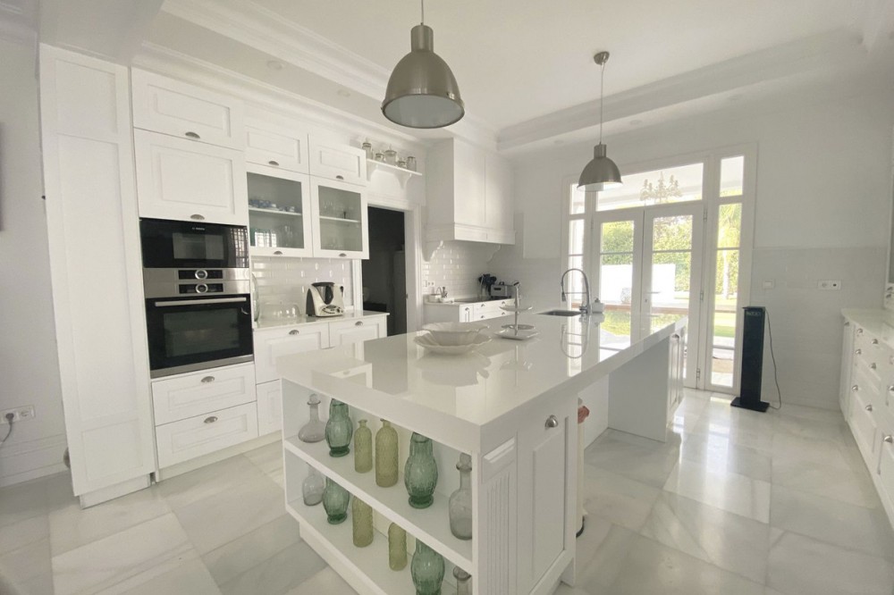 - MAGNIFICENT VILLA OF EXCELLENT QUALITIES IN PACO CANTOS AREA (MARBELLLA)!!! You will find few houses in Marbella, Marbella with these wonderful dimensions and as central as this wonderful Villa. It is the Villa with the most built meters in the area and has more than 1,000 m2. The Villa is perfectly located to move into and enjoy. This wonderful home has 11 bedrooms and 11 bathrooms, all en-suite. Upon entering the Villa we find a wonderful entrance with a spectacular staircase with marble steps and at the same time you can see that a magnificent and luminous large lamp adds a touch of elegance. On the 1st floor we find a wonderful kitchen with a wonderful island. It has white walls and furniture that makes the light stand out without having to consume it. On the same floor there is a good dining room and a large living room that opens directly to the wonderful terrace and pool of the house. On this same floor is one of the main suite rooms of the house. We go up to the 2nd floor and find 4 of the rooms and all of them en suite. On the ground floor we have the other 6 remaining rooms and also all with en-suite bathrooms. On this same floor you will find a beautiful living room adapted for the young members of the family where they can enjoy games and privacy among friends and family. The living room has direct access to the garden. On this floor is the covered garage with more than 5 spaces and has direct access to an elevator that can take you to the 1st and 2nd floors of the house. The pool is not very deep so that all the friends and family in the house can enjoy it. It is so well located that just a step away you will find schools, a bus stop, pharmacies, restaurants, the beach, the historic center, all of this is within walking distance. By car, Puerto Banús is 5 minutes away, you can find the A7 in just 1 minute and Malaga airport in 30 minutes. The Villa has more impact when you really see it with your own eyes, so don't hesitate to schedule a visit, you will surely enjoy it.