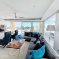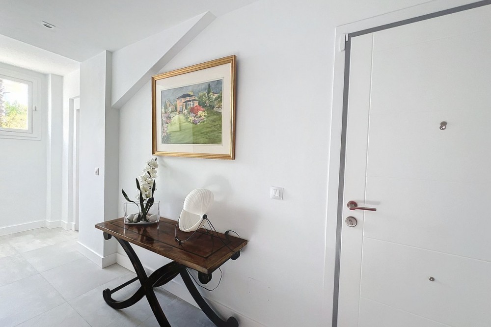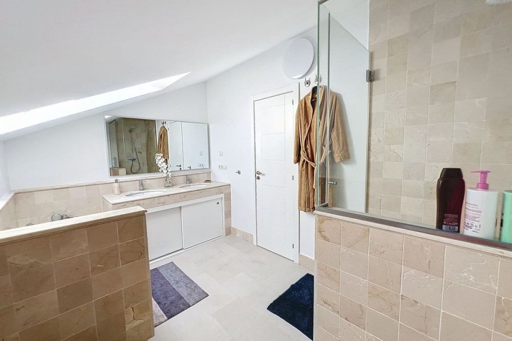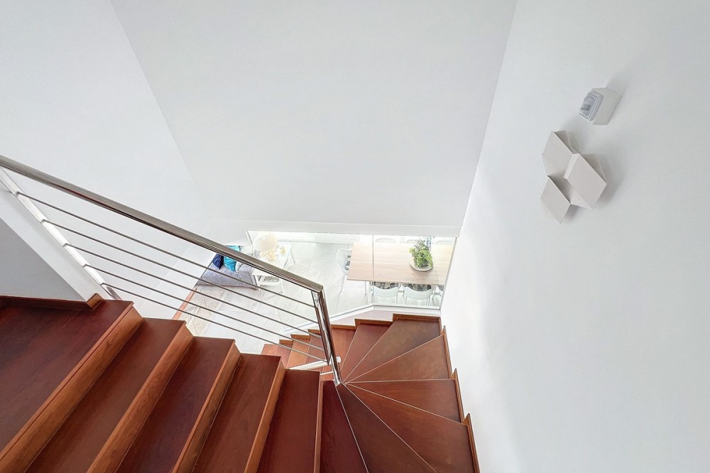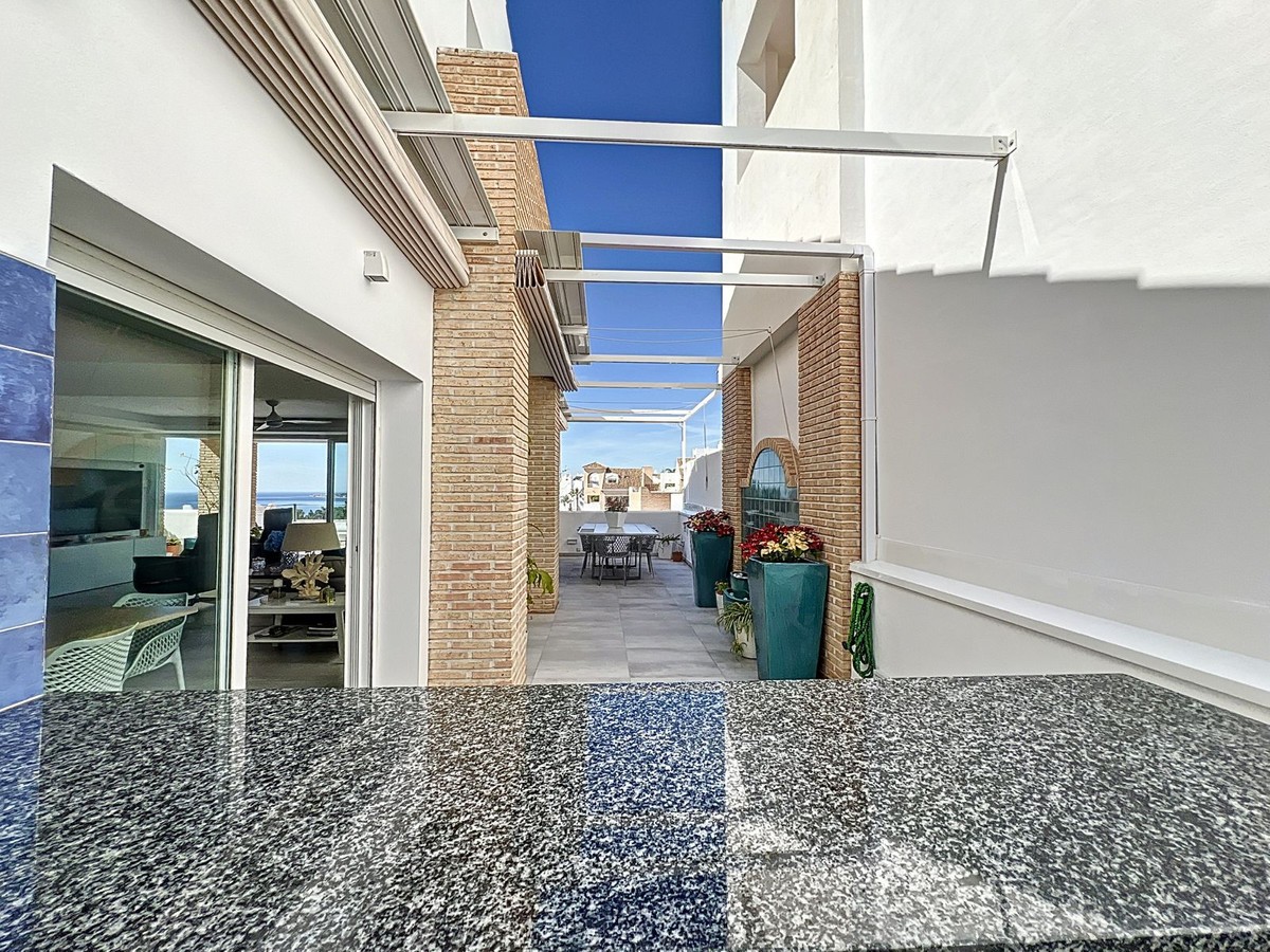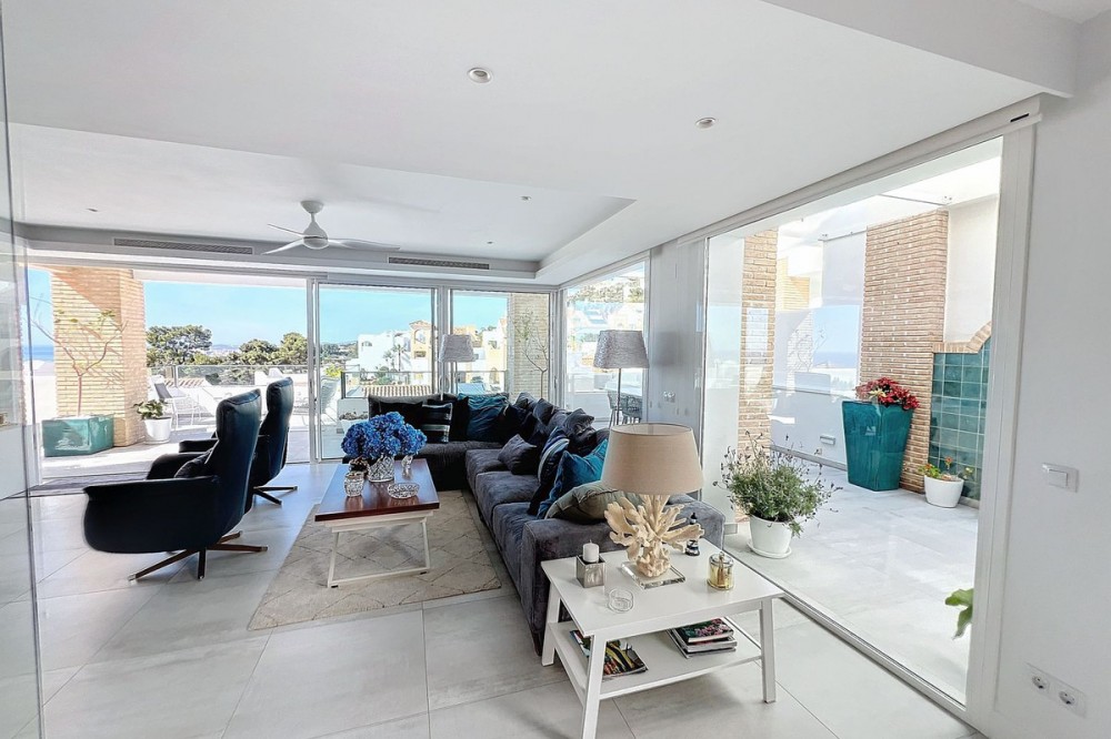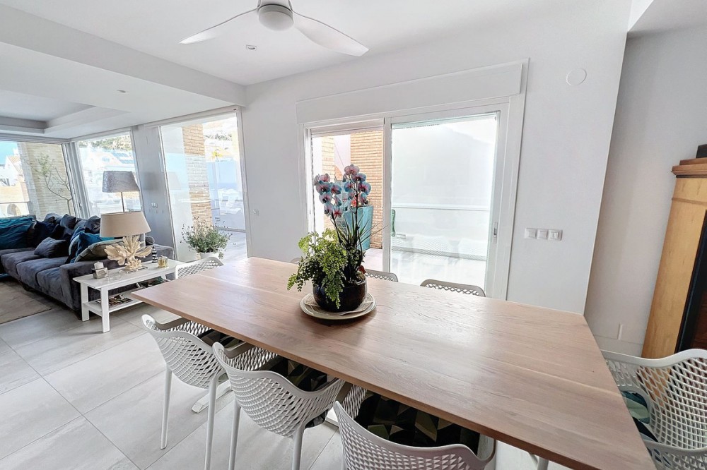 - Stunning Contemporary Villa in Big Blue Villas, Benalmádena – Coastal Luxury at Its Best Nestled in the prestigious Big Blue Villas community in Benalmádena, this beautifully renovated villa defines modern coastal living. Spanning three levels, the home offers 3 spacious bedrooms, 3 sleek bathrooms, plus an additional guest toilet – ensuring abundant space and privacy for all. On the ground floor, you’ll be greeted by a stylish open-plan living area, featuring a stunning LED-lit bar that sets the perfect ambiance for entertaining, alongside a projector TV for an immersive movie experience. Double doors open out to the terrace, extending your living space and seamlessly blending indoor and outdoor living. The master bedroom, located on this level, is a true retreat, offering a luxurious en-suite bathroom and a large walk-in dressing room. A guest bedroom with its own en-suite ensures comfort and privacy for visitors. On the first floor, you’ll find a chic lounge area that flows effortlessly into a modern, fully-equipped open-plan kitchen and dining space. A utility room adds to the convenience. The expansive terrace offers panoramic sea views, creating the ultimate backdrop for relaxation or hosting guests, complete with a built-in bar for alfresco entertaining. The top floor is home to another en-suite guest bedroom, featuring its own private terrace – the perfect spot for unwinding with breathtaking views. Outside, the beautifully landscaped gardens provide a peaceful escape, while the communal pool and well-equipped gym offer fantastic opportunities for leisure and fitness. A dedicated BBQ area ensures you can enjoy the outdoors year-round, and with multiple terraces, private parking, and direct beach access, this villa provides the perfect blend of convenience and luxury living. The villa also boasts an elevator for easy access to all three levels, adding to the comfort and accessibility. For those looking for a fully furnished home, the villa is available in option with a range of high-end furniture and appliances, including 5 fridges, 3 dishwashers, 2 washing machines, 2 tumble dryers, and 3 TVs – for the price of €100K. With easy access to the beach and all nearby amenities, this villa offers an unparalleled living experience in one of the most sought-after locations on the Costa del Sol.