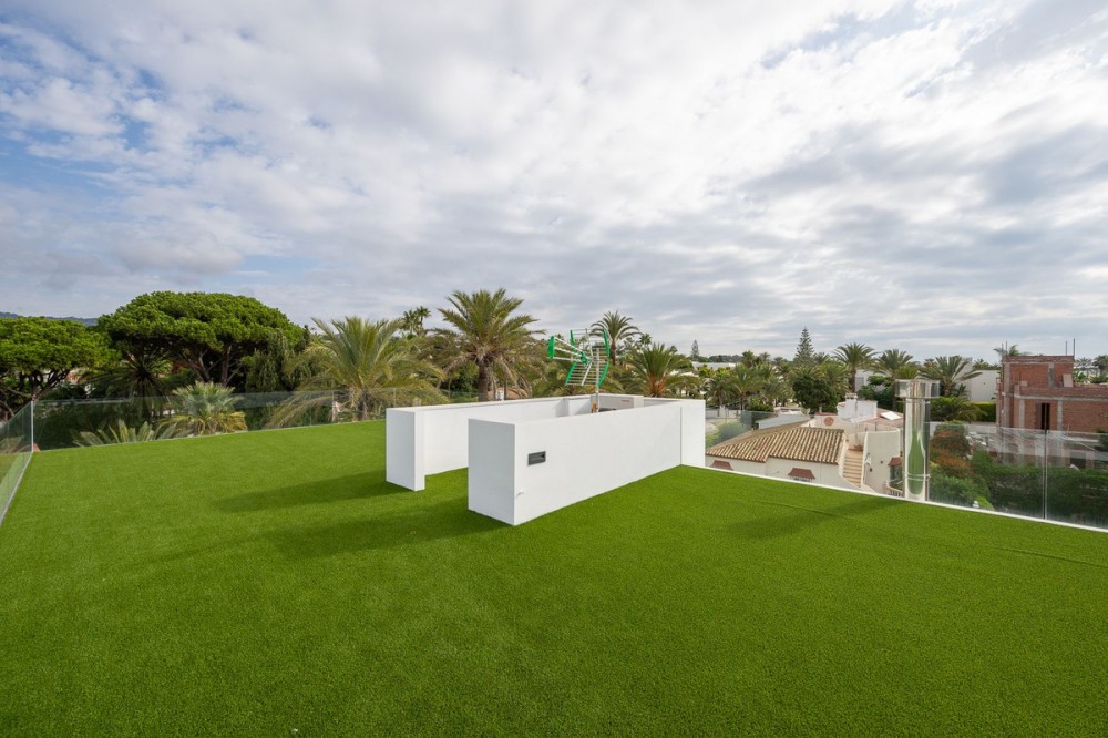 - Prime Location and Contemporary Design Situated just 50 meters from the pristine beaches of Marbesa, in the exclusive Marbella area, this contemporary villa offers a refined layout and superb attention to detail. The lower level, covering 223 square meters, includes a three-car garage, ample storage, and flexible spaces adaptable for a bedroom with an ensuite, a gym or entertainment room, and a cinema. This level connects seamlessly to the main floors via an elegant staircase. The ground floor, spanning 129 square meters, welcomes you with a spacious porch, an inviting foyer, a fully-equipped kitchen, an expansive living area, a guest bathroom, and a guest bedroom with an ensuite. Access to the upper level is also provided here. On the first floor, covering 112 square meters, you’ll find a luxurious master suite with an ensuite bathroom, accompanied by two additional bedrooms, each with its own ensuite. This level also features a charming 34-square-meter terrace, perfect for relaxing. Outside, a beautifully landscaped garden surrounds a 46-square-meter pool, offering an ideal space for outdoor living. Constructed with the highest standards and quality materials, this villa represents a unique opportunity for those seeking a spacious, modern residence mere steps from the beach in one of Marbella’s most desirable locations. Completion Date: October 2024
