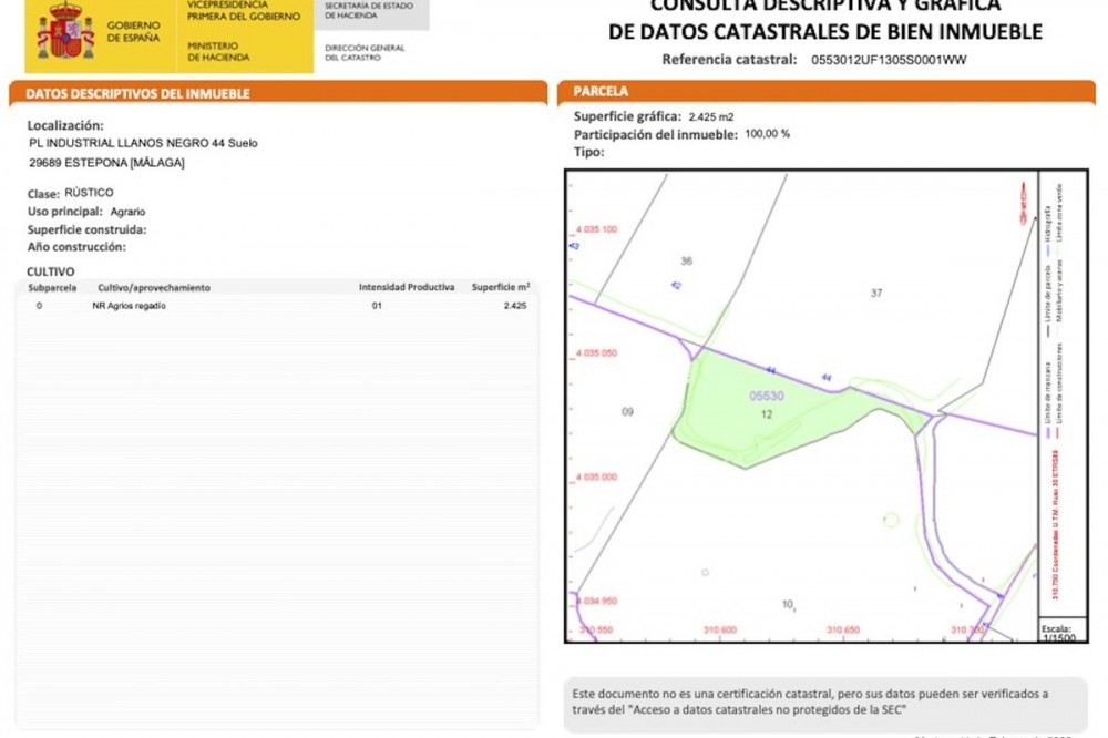 - **Magnificent plot of land of 24,135 m² in Estepona, with water, electricity, and both rustic and industrial zoning**, located in a strategic area that offers great potential for various projects. With its exceptional features and privileged location, this property allows for a wide range of development options. Possible uses for the land: 1. **Equestrian center**: Ideal for creating a horse-related business, with facilities such as stables, riding arenas, and other spaces designed for equestrian activities and horse breeding. 2. **Agricultural or livestock business**: The plot is perfect for agricultural or livestock projects, taking advantage of its agricultural zoning for production and animal breeding. 3. **Outdoor sports and rural activities**: An extensive plot surrounded by nature, offering ample opportunities for outdoor sports such as motocross, quads, paintball, mountain bike trails, and sports circuits, making it a perfect destination for lovers of rural adventure activities. Key features: - **Excellent location**: Situated in the El Padron area, just 1 km from the sea and 10 minutes from the center of Estepona. With direct access from the A-7 motorway, it connects easily to Estepona (3 km), Puerto Banús (10 km), and Málaga (75 km), ensuring excellent communication and proximity to services and tourist areas. - **Panoramic views**: The plot is located on a hill with a gentle slope, offering spectacular views of the surrounding landscape, the sea, and the coast. - **Industrial use allowed**: The lower part of the plot is classified as industrial land, allowing the construction of industrial warehouses, storage facilities, or other industrial buildings, expanding the options for developing various types of businesses. - **Accessibility and convenience**: The property has two private access points and ample parking space, making it easy to access and suitable for businesses that require large amounts of traffic or for setting up activity centers. This land is a unique opportunity for those seeking a property with great versatility, in an exceptional location on the Costa del Sol. Perfect for business projects, recreational activities, or those wishing to take advantage of its natural beauty and excellent connectivity to other points of interest.