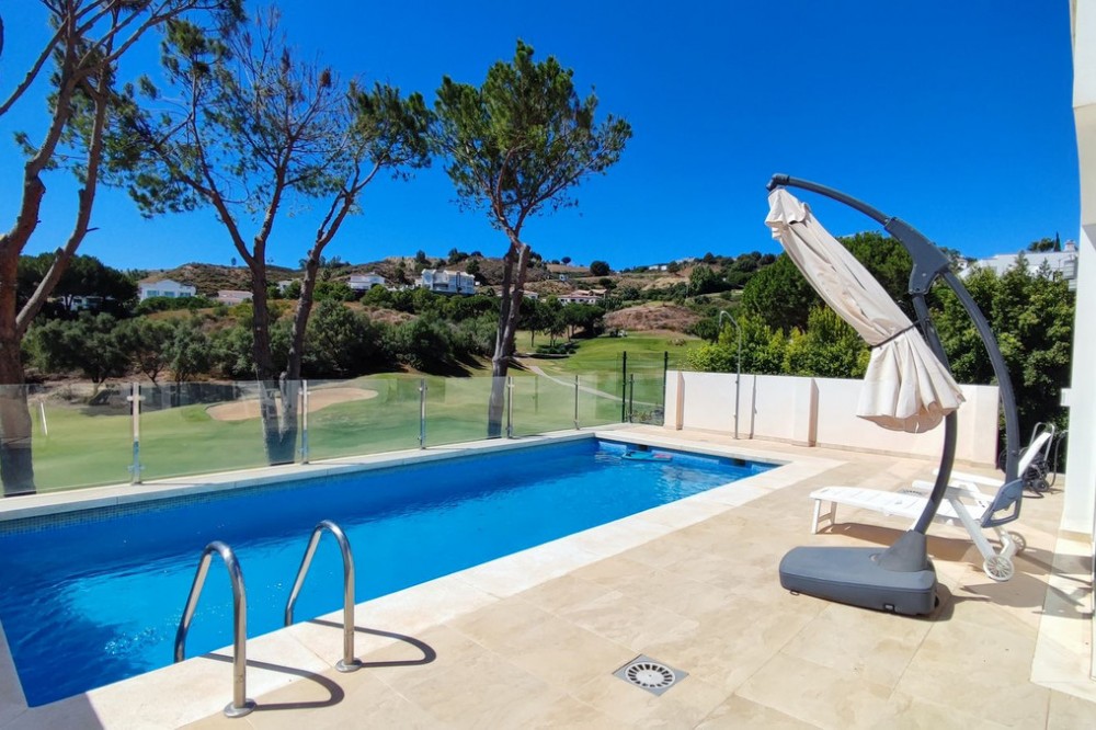 - Set on a privileged golf front position in a quiet cul-de-sac street in the very heart of la Cala Golf resort, this superb detached villa enjoys sun all day and stunning golf views. Built in 2017 with a contemporary look, the villa benefits from great quality specifications, modern and open plan layout and the best possible natural light. The villa offers expansive open and covered terrace areas, as well as spacious indoor living space including 4 bedrooms and 3 bathrooms, a modern kitchen and laundryroom with Siemens appliances and living- dining area that offers an open plan concept. The living area and kitchen access directly to the sunny terrace overlooking the golf and to the superb swimming pool, which is the perfect spot to enjoy the true Costa de Sol outdoor living style. The villa also has a very roomy basement that offers a wide range of possibilities such as creating games-room or fitness area, home-cinema, large office, extra bedrooms, etc. This is the perfect villa for permanent living or lock & go second residence since the property requires very little maintenance. This attractive villa, in this beautiful location, for this price? that’s sounds like a fantastic deal, so contact us as soon as possible to avoid disappointment… Beds: 4 | Baths: 3 | Living area: 170 m2 | Terraces: 97 m2 | Private pool: 29m2 | Garage + Basement: 100m2 approx. | Facing: S-SE | Construction year: 2017 It's no secret that La Cala is one of the finest golf resorts in Spain. Three superb championship courses, each presenting its own unique challenges, a luxury hotel with a state of the art Spa, a splendid Club house, sports facilities, bars and restaurants, with its breathtaking vistas of the stunning Andalusian countryside and to the sea, La Cala golf Resort is worlds away from the hustle and bustle of the coast, yet just 10 minutes to the sea, 20 minutes from Marbella and less than 30 minutes from Malaga airport. Airport: 30 min drive – La Cala de Mijas: 4 min drive - Fuengirola: 13 min drive - Marbella Town: 15 min drive - Golf course: Golf front - Beach: 5 min drive - Bars&restaurants: 5 min drive - Amenities: 5 min drive - Public Transports: 4 min drive Our team works incessantly to make sure that the description and the sales prices for the properties offered on this website are correct and up to date. Notwithstanding, the information contained in this website is subject to errors and omissions, and the properties themselves subject to price changes, prior sale or withdrawal from market. The property market on the Costa del Sol has completely recovered and the good properties are being snapped up fast! We suggest that if you see something you like that fits your budget, contact us as soon as possible to avoid disappointment!