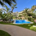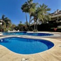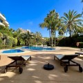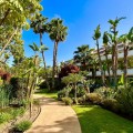 - 2 bed ground floor apartment in the exclusive, gated community of Lomas del Rey, exceptional high-quality construction melded with extraordinary attention to detail yield this contemporary apartment. Its expansive spaces, open concept floorplan and walls of glass create a breathtaking experience of spaciousness and light. On entering the home through the hallway, to the right, there is a large living/dining room and kitchen which open onto the expansive terrace. Straight ahead there is a corridor with guest toilet and guest suite with a walk-in closet. To the left is the sizeable master suite, also with walk-in closet and a private terrace. Lomas del Rey boasts 24-hour security, mature gardens, social club, a fitness club, and 4 swimming pools; this sublime luxury Mediterranean style development exudes the ambience of a private resort. The community is next to Puente Romano and Lomas de Marbella Club and just minutes away from world class dining and shopping of the Marbella Golden Mile, this area is famous for its tranquil feeling. With easy access to the AP-7 motorway and 57kms from the international airport at Malaga..