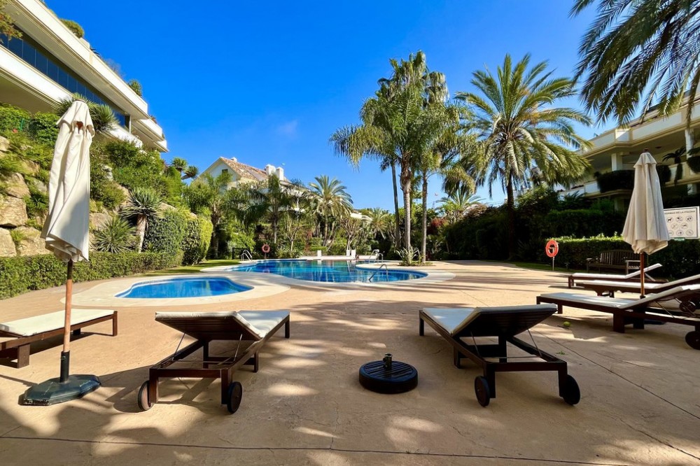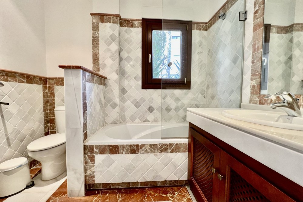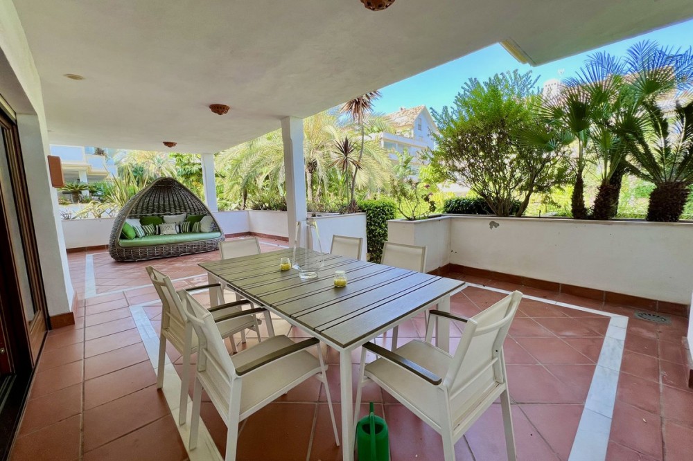 - 2 bed ground floor apartment in the exclusive, gated community of Lomas del Rey, exceptional high-quality construction melded with extraordinary attention to detail yield this contemporary apartment. Its expansive spaces, open concept floorplan and walls of glass create a breathtaking experience of spaciousness and light. On entering the home through the hallway, to the right, there is a large living/dining room and kitchen which open onto the expansive terrace. Straight ahead there is a corridor with guest toilet and guest suite with a walk-in closet. To the left is the sizeable master suite, also with walk-in closet and a private terrace. Lomas del Rey boasts 24-hour security, mature gardens, social club, a fitness club, and 4 swimming pools; this sublime luxury Mediterranean style development exudes the ambience of a private resort. The community is next to Puente Romano and Lomas de Marbella Club and just minutes away from world class dining and shopping of the Marbella Golden Mile, this area is famous for its tranquil feeling. With easy access to the AP-7 motorway and 57kms from the international airport at Malaga..