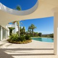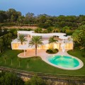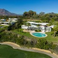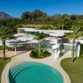 - This prestigious villa stands as a testament to architectural ingenuity, capturing the essence of uniqueness and sophistication. Designed by the visionary minds of Vicens & Ramos architects, its futuristic yet nostalgic structure commands attention with its flowing lines and harmonious integration within the lush green surroundings. The villa harmoniously coexists with nature, enveloped by a tapestry of vibrant greenery. The ground floor accommodates all living spaces, while the upper level features a captivating dome-like entrance and a bespoke spiral staircase, evoking a sense of grandeur. The entrance, thoughtfully designed for parking convenience, sets the stage for welcoming guests and making a lasting impression. An outdoor spiral staircase grants direct access to the garden from the entry level. The ground floor encompasses a fully-equipped kitchen, generous living and dining areas and four stunning bedrooms, each offering their own unique charm. With an abundance of windows and glass sliding doors, natural light floods the interior, seamlessly connecting it to the outdoors. The villa boasts a captivating garden, highlighted by an egg-shaped pool adorned with tranquil light blue tiles. Towering palm trees grace the landscape, while the verdant grass provides ample space for leisure and social gatherings. The terrace tiles, specially chosen for this property, add yet another bespoke touch to the villa's distinctive character. Offering an unparalleled architectural masterpiece, this exceptional villa promises an extraordinary personal retreat, complemented by breathtaking views and an enviable location within the esteemed Finca Cortesin Resort.