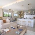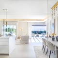 - *** Spectacular Luxury Detached Villa on The New Golden Mile, Estepona *** Corner: Maximum Privacy *** 5 Bedrooms and 4 Bathrooms *** Spacious Terraces *** Private Garden with Jacuzzi and Swimming Pool *** BAsement with Windows and Bathroom *** Beachfront *** Access to the Promenade from the Garden *** South Facing *** Underground Parking Space *** Fully Fitted BULTHAUP Kitchen with GAGGENAU and SIEMENS *** Fully Furnished *** Private Lift * ** Hot and Cold A/C and Underfloor Heating Throughout *** Double Glazing *** Home Automation *** Boutique Gated Complex *** Luxury Facilities: Heated Pool, Gym, Jacuzzi, Children's Pool, Playground, Tennis and Paddle Courts, Gardens and BBQ Area *** Maximum Security 24 hours a day with Concierge and Video Surveillance Cameras *** Direct Access to the Beach *** Perfect Location *** Less than Ten Minutes by Car from Estepona and Puerto Banús *** Ready to Move In!!! *** This brand new luxurious detached villa is in an excellent location in the area of The New Golden Mile, Estepona. The exclusive house is facing the sea, and has direct access to the boardwalk through a private gate. It has easy access to Estepona and Puerto Banús, which are less than ten minutes away by car. The ground level consists of the bright entrance hall that leads south to the main living room with dining area for eight people, and study or home office area. The full-fitted BULTHAUP kitchen with GAGGENAU appliances is integrated into this area and has a breakfast bar. On this level there're two guest bedrooms, both doubles, with fitted wardrobes and lovely views of the garden. There is a fully-equipped bathroom serving this level. The interior and exterior spaces are joined by double-glazed windows that go from floor to ceiling, thus generating a feeling of continuity and connection with nature. The spacious terrace features the chill-out, barbecue area with outdoor kitchen and dining space. In the garden one can enjoy the heated jacuzzi and the swimming pool, surrounded by perfectly manicured lawns and the wooden platform for sunbathing. All this, in the much desired south orientation. There's a direct access gate to the beach. The upper level has the impressive master suite with spectacular panoramic views of the Mediterranean Sea, Africa and Gibraltar. It consists of its own private terrace facing the sea, ensuite bathroom and walk-in walk-in wardrobe. The guest suite is a good size and has a private terrace, walk-in wardrobe and ensuite bathroom. The basement level is divided into two separate spaces and offers multiple possibilities of becoming a cinema, games room, spa circuit or even a fully equipped studio, depending on the owners' needs. It receives natural light thanks to its windows, and has a guest bathroom. The specifications of this villa are high-end: air conditioning, underfloor heating, aerothermal energy, double glazing, home automation, LED lighting, glass railings, electric shutters, video intercom and private elevator to all levels. The boutique complex's facilities are luxurious: heated infinity swimming pool, outdoor gym, jacuzzi, children's pool, children's play area, barbecue and exotic gardens. In addition, the complex is gated and fully protected 24 hours a day with a concierge, video surveillance cameras and security control. The house comes fully furnished, as one can see in the pictures, by the high quality brands. Also, it has its private underground parking space, where there is a charger for electric cars. This is a perfect opportunity to acquire a luxury villa in an exclusive residential complex. The location is excellent, in a quiet and safe area while perfectly connected to beach clubs, world-renowned golf courses, international schools, luxury boutiques, supermarkets and all services. For more information, please contact us.