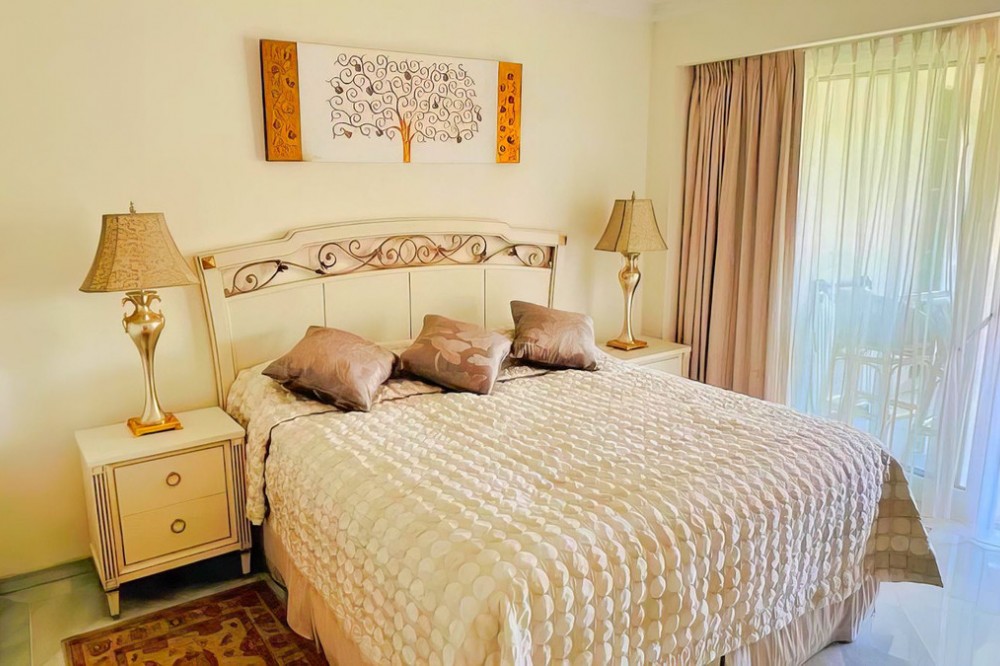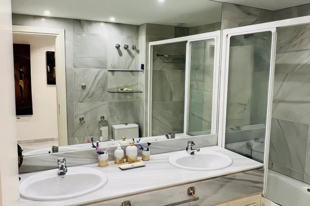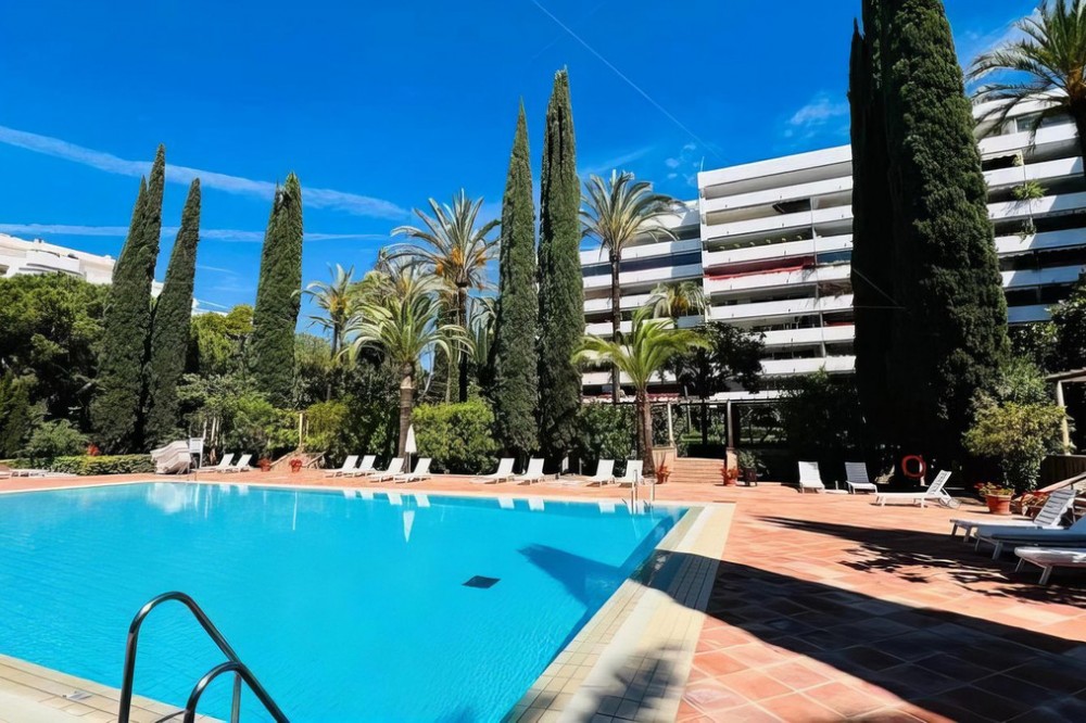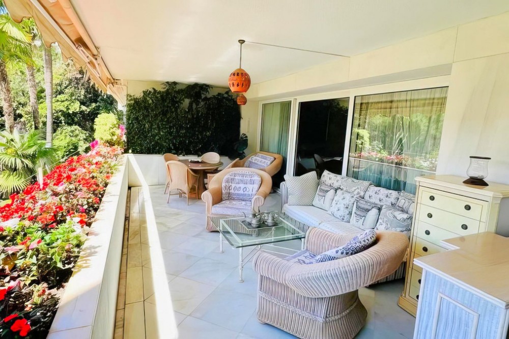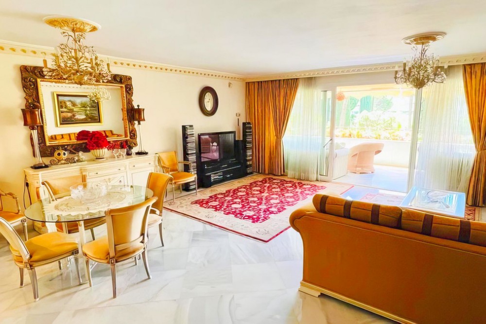 - OPPORTUNITY: Beach side 3 bed luxury apartment, Marbella Golden Mile. Rare opportunity to buy an exclusive apartment in the sought after Don Gonzalo complex, just a few steps away from the popular Playa de Fontanilla beach and the pleasant Golden Mile promenade which leads all the way to Puerto Banus. Apartment details: * Prestigious, iconic complex with 24h security and concierge service * Very large apartment on the 1st floor, in very good state but with classic furniture * 3 generous bedrooms and 3 en-suite bathrooms * Spacious and bright (large 42 sqm living room) * South-west-facing * 23 sqm terrace with garden and pool views * Air conditioning for cooling and heating * Fully equipped kitchen with all appliances * Fitted wardrobes * Marble floors * Extensive well cared for sub-tropical gardens and 2 impressive community pools. * Directly surrounded by several other exclusive residential blocks such as Gran Marbella, Mare Nostrum, Marbella House. * All amenities are within walking distance: El Corte Ingles, Mercadona are just across the main street. * Very wide choice of supreme restaurants are also in the immediate vicinity, not to forget the array of beach clubs and fish restaurants on the nearby promenade. * Only a short walk of just a few minutes to the marina of Marbella which counts plenty of leisure facilities and eateries. Several 5 star hotels are also close by and offer a good choice of luxury faculties and restaurants. Please note the apartment does not come with underground parking space nor storage room!! The price is slightly negotiable.