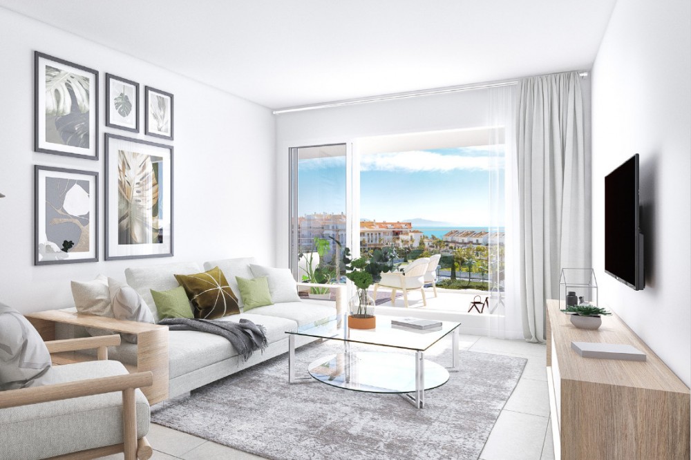 - New Development: Prices from €415,000 to €503,000. [Bedrooms: 2 - 3] [Bathrooms: 2] [Built size: 95m2 - 136m2]. 2 bedroom homes next to the sea in Manilva When you decide to take a few days to rest, to forget the day to day work, the city and stress, it is often said that these are days of disconnection. But in this place we want to raise this term to its maximum power. In your new home in the area of Manilva you will be surrounded by what really matters: nature, sea and your loved ones, thanks to the tranquility of living away from an electric, fast and routine life. Your main neighbor will be the sea, a quiet neighbor, whose sound does not bother, but relaxes, which you can visit whenever you want thanks to its proximity and that will welcome you with a smile as wide as the beaches in the area. Your new home will be tailor-made for you, in a complex of 2-bedroom homes, parking, sea views and communal gardens. Sea, nature and more than 300 days a year of sunshine come together in a residential of more than 14,000 square meters. Discover a corner of peace and harmony by the sea in the "New Golden Mile".
