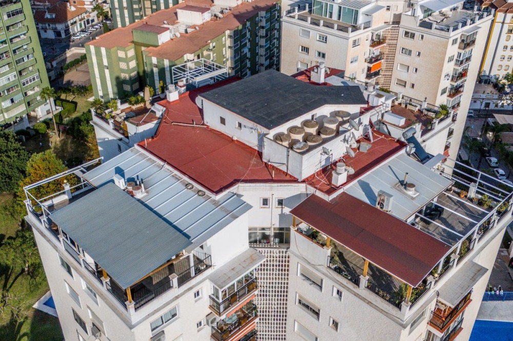 - Penthouse, Fuengirola, Costa del Sol. 3 Bedrooms, 2 Bathrooms, Built 198 m², Terrace 154 m². Setting : Town, Beachside, Close To Port, Close To Shops, Close To Sea, Close To Town, Close To Schools, Close To Marina, Urbanisation. Orientation : South, South West. Condition : Excellent. Pool : Communal. Climate Control : Air Conditioning, Hot A/C, Cold A/C. Views : Sea, Mountain, Panoramic, Pool. Features : Covered Terrace, Lift, Fitted Wardrobes, Near Transport, Private Terrace, Access for people with reduced mobility, Marble Flooring, Double Glazing, Fiber Optic. Furniture : Fully Furnished. Kitchen : Fully Fitted. Garden : Communal. Security : Gated Complex, Entry Phone, 24 Hour Security. Parking : Communal. Utilities : Electricity, Telephone. Category : Holiday Homes, Investment, Luxury, Resale, Contemporary.