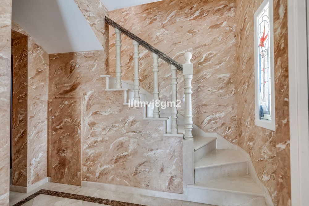 • This luxurious four-bedroom villa, located in the peaceful area of lower Artola / Hacienda Las Chapas, just 5 minuntes walk to the sea, is the epitome of elegance and comfort. Boasting a classic design with high-end finishes, the property features an abundance of marble, adding to its opulent charm. The interior is bathed in natural light, enhancing the meticulously crafted details throughout the home. The villa includes a separate fifth bedroom designed for guests, which offers the flexibility to be converted into a home office, perfect for those who work remotely. Below the residence, a spacious basement spans 45 square meters, currently utilized as a workshop. This versatile space holds the potential for any desired transformation to suit your needs. The bathrooms are equipped with heated floors, providing a touch of luxury and comfort. Outside, the expansive pool area invites relaxation and entertainment. The property is self-sufficient, with its own private well and solar panels, significantly reducing maintenance costs and ensuring an eco-friendly living experience. This exceptional home is not just a dwelling but a statement of lifestyle, promising a serene and lavish living environment. Whether you’re basking in the coastal ambiance or enjoying the privacy of your elegant retreat, this villa is a rare gem that offers both sophistication and practicality.