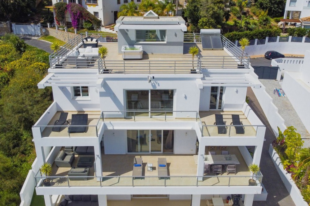- Investment Opportunity in Marbella East – Sea View Villa with Exceptional Potential Discover a rare opportunity to transform a spacious villa with panoramic sea views into a standout luxury residence or profitable investment project. Located in the prestigious El Rosario gated community on Marbella's sought-after East side, this property sits just minutes from Marbella's Old Town and the world-renowned Puerto Banús. The area is known for its golden sandy beaches, top-tier beach clubs, and fine dining — making it one of the most desirable locations on the Costa del Sol. While the villa retains its generous layout and exceptional features, it is currently empty and in need of a full upgrade, offering the perfect canvas for investors or visionary buyers to create a modern, high-end residence with significant value-add potential. Property Highlights: • 5 bedrooms including a large master suite with sea-view terrace, walk-in closet, and spacious bathroom • Panoramic Mediterranean views from multiple levels • Expansive open-plan living and dining area with direct access to a sea-facing terrace • Separate guest/staff studio apartment with private entrance • Rooftop chill-out terrace with Jacuzzi and unbeatable sea and mountain views • Lower level with entertainment space, cinema room, gym, and direct access to the garden and pool area with "chiringuito" • Outdoor parking for up to four vehicles Additional features include underfloor heating, air conditioning, an alarm system, and mature gardens — all of which can be upgraded or redesigned to significantly enhance the villa's appeal and market value. This is more than just a renovation — it's a strategic investment in one of Marbella's most established and high-demand neighborhoods. With the right vision and upgrades, this villa has the potential to become a standout family home or a profitable resale asset in a location that continues to appreciate in value.