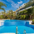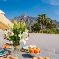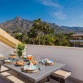 - Fully refurbished luxury 4-bedroom penthouse on The Golden Mile, Marbella – Walking distance to Puente Romano and Marbella Club hotels Duplex penthouse located within one of the most sought-after developments, Lomas del Rey, a prestigious urbanization with botanical gardens, in the heart of Marbella’s Golden Mile. Within walking distance to the exclusive Marbella Club and Puente Romano hotels, this is one of the most exceptional properties currently on the market. A spacious, fully refurbished 4-bedroom penthouse with a large entrance hall leading to the open plan living area. The modern designer fully fitted kitchen by SIEMATIC with the latest Miele appliances and breakfast island offers an inviting space for informal gatherings with family and friends. The combined open kitchen, dining room and living room are perfectly distributed all leading onto the grand terrace where different ambiences have been created, either enjoy the beautiful Mediterranean sunshine with an amazing back drop of the ‘La Concha’ mountain or relish in a more refreshing area under the automized pergola. The stunning landscaped terrace, exclusively designed by one of the most prestigious companies in the area, brings life to a relaxed and inviting outdoor lounge, chill out and dining area, perfect for outdoor living at any time of the day, anytime of the year. The terrace is connected to the upstairs ‘all day’ sun terrace from where amazing sunsets can be enjoyed. The garden view from the terraces gracefully blends in with the beautiful and luscious gardens of Lomas del Rey, amazed and admired by many. The large principal bedroom is decorated with a neutral palette and luxurious fabrics and offers private en-suite bathroom and walk in closet. The second double bedroom with en-suite bathroom is also located on the same floor. In addition, on the main floor of the penthouse there is a separate guest bathroom and laundry area. The first floor offers two large bedrooms, both with en-suite bathrooms. One bedroom offers a private walk-in closet. This bedroom gives a direct access to a second smaller terrace and the larger roof terrace for all day sun enjoyment. Extra storage space is also accessible from this floor. The second bedroom on this floor offers a private terrace with views towards the iconic La Concha Mountain and the Lomas del Rey gardens. The penthouse is in impeccable new condition, fully refurbished with exceptional attention to detail using the highest qualities and details. Smart home with underfloor heating individually operated in each room, fully air conditioned, double glazing with high end wooden framed windows. A beautiful property combining modern day living with the charm of the most exceptional and sought after location in Marbella. The apartment includes 2 parking spaces and a storage room in the underground communal garage. Location Located on the Golden Mile in Marbella, near the King of Saudi Arabia’s Palace, this penthouse is just a stone’s throw away from the exclusive Marbella Club and Puente Romano hotels and only 800 meters from the beach. The Golden Mile, famous for its promenade, offers a large variety of restaurants and fabulous Beach Clubs. It is the home of exclusive sports and leisure facilities, designer shops and celebrity filled restaurants and nightclubs, all within walking distance! There is something for everyone on the Golden Mile, a place to enjoy all year round. An excellent opportunity to own a true oasis in the centre of the Marbella Golden Mile Lomas del Rey The compound of Las Lomas del Rey is a very private estate. It offers 25.000 m2 of lush tropical gardens, multiple swimming pools, one of them heated all year round. Lomas del Rey has overnight security with 27 surveillance cameras throughout the complex. Full time gardeners & cleaners are working daily to maintain the complex and its the beautiful, landscaped gardens. Location is key with direct exit to the Marbella ring road, only three minutes from yachting Marina Puerto Banus, five from Marbella centre and ten from numerous famous Golf courses. Very close to a school bus stop with connections to all schools in Marbella and surroundings. … and not forgetting accessible to the rest of the world with direct access to the highway making the international airport of Malaga a 40 minutes’ drive.