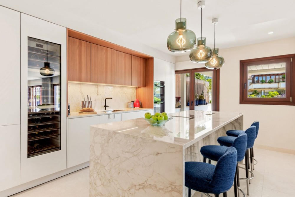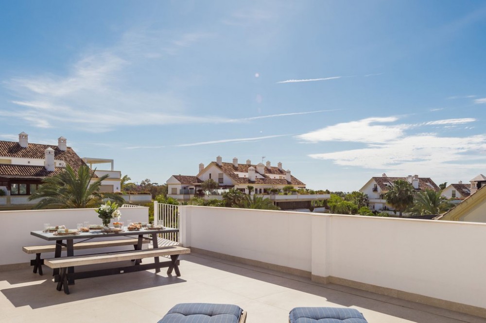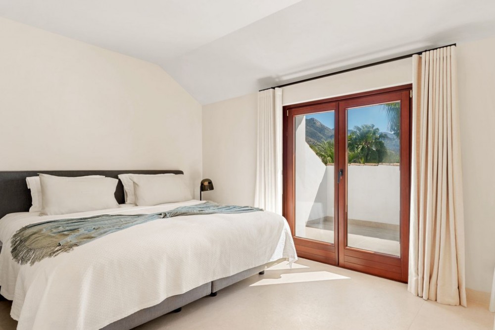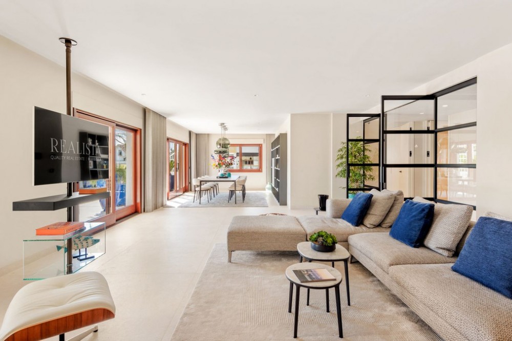 - Fully refurbished luxury 4-bedroom penthouse on The Golden Mile, Marbella – Walking distance to Puente Romano and Marbella Club hotels Duplex penthouse located within one of the most sought-after developments, Lomas del Rey, a prestigious urbanization with botanical gardens, in the heart of Marbella’s Golden Mile. Within walking distance to the exclusive Marbella Club and Puente Romano hotels, this is one of the most exceptional properties currently on the market. A spacious, fully refurbished 4-bedroom penthouse with a large entrance hall leading to the open plan living area. The modern designer fully fitted kitchen by SIEMATIC with the latest Miele appliances and breakfast island offers an inviting space for informal gatherings with family and friends. The combined open kitchen, dining room and living room are perfectly distributed all leading onto the grand terrace where different ambiences have been created, either enjoy the beautiful Mediterranean sunshine with an amazing back drop of the ‘La Concha’ mountain or relish in a more refreshing area under the automized pergola. The stunning landscaped terrace, exclusively designed by one of the most prestigious companies in the area, brings life to a relaxed and inviting outdoor lounge, chill out and dining area, perfect for outdoor living at any time of the day, anytime of the year. The terrace is connected to the upstairs ‘all day’ sun terrace from where amazing sunsets can be enjoyed. The garden view from the terraces gracefully blends in with the beautiful and luscious gardens of Lomas del Rey, amazed and admired by many. The large principal bedroom is decorated with a neutral palette and luxurious fabrics and offers private en-suite bathroom and walk in closet. The second double bedroom with en-suite bathroom is also located on the same floor. In addition, on the main floor of the penthouse there is a separate guest bathroom and laundry area. The first floor offers two large bedrooms, both with en-suite bathrooms. One bedroom offers a private walk-in closet. This bedroom gives a direct access to a second smaller terrace and the larger roof terrace for all day sun enjoyment. Extra storage space is also accessible from this floor. The second bedroom on this floor offers a private terrace with views towards the iconic La Concha Mountain and the Lomas del Rey gardens. The penthouse is in impeccable new condition, fully refurbished with exceptional attention to detail using the highest qualities and details. Smart home with underfloor heating individually operated in each room, fully air conditioned, double glazing with high end wooden framed windows. A beautiful property combining modern day living with the charm of the most exceptional and sought after location in Marbella. The apartment includes 2 parking spaces and a storage room in the underground communal garage. Location Located on the Golden Mile in Marbella, near the King of Saudi Arabia’s Palace, this penthouse is just a stone’s throw away from the exclusive Marbella Club and Puente Romano hotels and only 800 meters from the beach. The Golden Mile, famous for its promenade, offers a large variety of restaurants and fabulous Beach Clubs. It is the home of exclusive sports and leisure facilities, designer shops and celebrity filled restaurants and nightclubs, all within walking distance! There is something for everyone on the Golden Mile, a place to enjoy all year round. An excellent opportunity to own a true oasis in the centre of the Marbella Golden Mile Lomas del Rey The compound of Las Lomas del Rey is a very private estate. It offers 25.000 m2 of lush tropical gardens, multiple swimming pools, one of them heated all year round. Lomas del Rey has overnight security with 27 surveillance cameras throughout the complex. Full time gardeners & cleaners are working daily to maintain the complex and its the beautiful, landscaped gardens. Location is key with direct exit to the Marbella ring road, only three minutes from yachting Marina Puerto Banus, five from Marbella centre and ten from numerous famous Golf courses. Very close to a school bus stop with connections to all schools in Marbella and surroundings. … and not forgetting accessible to the rest of the world with direct access to the highway making the international airport of Malaga a 40 minutes’ drive.