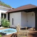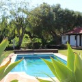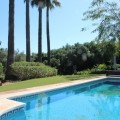 - Discover the charm and exclusivity of this unique style villa, located at the end of a quiet cul-de-sac in Sotogrande Costa Central, in zone B. Surrounded by beautiful gardens and large wooden terraces, this property offers a luxury oasis to enjoy the magnificent climate of the region. The land is made up of 4 properties, each one with its own deed. Main Features: - Privileged Location: Located at the end of a dead end street, guaranteeing privacy and tranquility. - Charming Gardens: Extensive and well-kept gardens that create a serene and relaxing environment, a total of 4 plots. - Leisure Areas: Large wooden terraced areas with jacuzzi, sauna, bar and barbecue, perfect for entertaining and outdoor living. The house is distributed as follows: - First Floor: Elegant entrance hall, guest toilet, three large bedrooms with their respective bathrooms, an office/study, a spacious living room and a modern and fully equipped kitchen. - Ground Floor: Two double bedrooms, one with a separate shower room and the other with a bathroom, a games room, a wine cellar and a solarium with access to the terraces on the first floor. - Summer/Guest House: A cozy independent house in the garden, equipped with a kitchen, living room, a double bedroom and a bathroom. - Additional Amenities: Underfloor heating on the main floor and some air conditioning units for your year-round comfort.