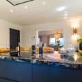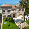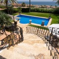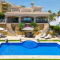 - LUXURIOUS VILLA WITH SEA VIEWS AND TOP FACILITIES WITHIN WALKING DISTANCE OF LA CALA DE MIJAS Discover this fully renovated 5 bedroom, 5 bathroom villa, just a ten-minute walk from the bustling centre of La Cala de Mijas. The villa was built in 2008 and in the last 2 years everything has been completely renovated, with the atmosphere and original character still coming to the fore. This, together with the high-quality finishes, makes this a villa full of comfort that offers everything you could wish for. Enter the villa through an impressive wooden door and walk through the front garden with fountain to the main entrance. The spacious hall with chandelier and high ceiling immediately offers a breathtaking view of the sea. The bright living room, with partly open kitchen with luxury Siemens appliances and cooking island, has a full-length terrace for optimal light and sea views. Also on the ground floor is a separate toilet and a spacious bedroom with walk-in dressing room and en suite bathroom. There is an elevator for easy access to all floors, but of course you can also reach both the basement and the upper floor via the stairs. On the upper floor there are 2 spacious bedrooms, both with a bathroom en suite. Again, there is a beautiful sea view and both bedrooms give access to a large roof terrace. There is also a separate office space on this floor. The basement should certainly not be forgotten and we will explain to you why! The basement is a versatile space with a bar, an indoor swimming pool, a gym, a studio with bathroom, kitchen and private entrance, an office space, a laundry room, bathroom, storage room and a garage with space for 3 cars. In this bar you have your own party location at home! The bar is equipped with a professional beer tap, refrigerators, stained glass windows and a billiards table. Next to this room is the heated indoor swimming pool which is equipped with showers and toilet. The indoor pool has an automatic dehumidifier. In the water installation there is a water descaler for the complete supply of all the water in all rooms. Both the basement and the ground floor give access to the garden of 375m2. This has also recently been redesigned, including fruit trees and a sprinkler system. The beautiful salt water swimming pool, with separate shower, has also been completely re-tiled and in the evening the lighting in both the pool and the fountain creates a beautiful atmosphere. We are talking about a villa that has been completely renovated: • New kitchen and 5 new bathrooms • Completely renewed water pipes and electrical installations • The garden has been redesigned • A total of 7 new plastic sliding doors have been installed • The villa has been completely replastered and painted, inside and out • New electric awnings and underfloor heating throughout the villa Finally; There are electric shutters throughout for extra comfort and the villa also has an advanced alarm and camera system for optimal security. Experience ultimate comfort and luxury in this unique villa. Make an appointment for a viewing today!