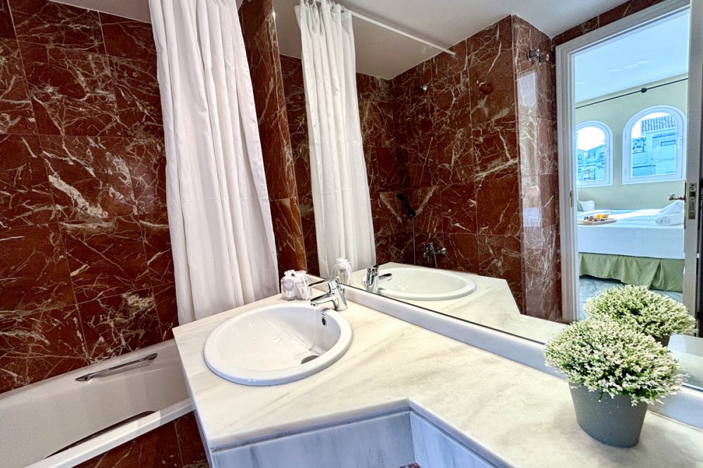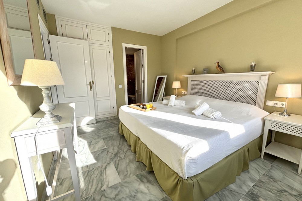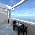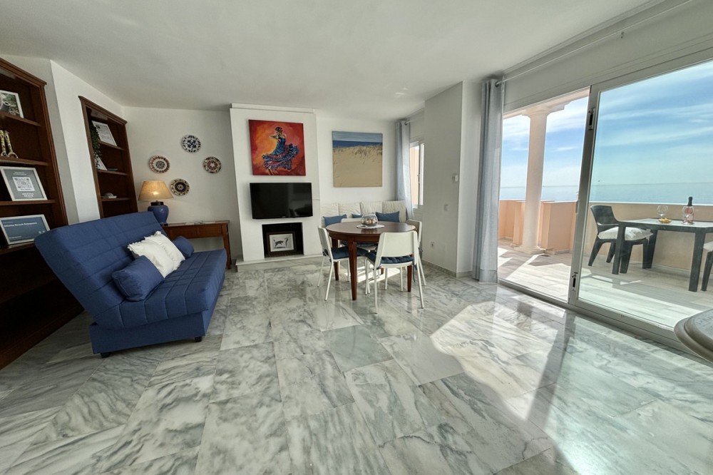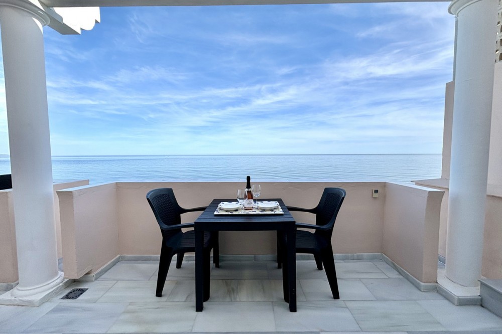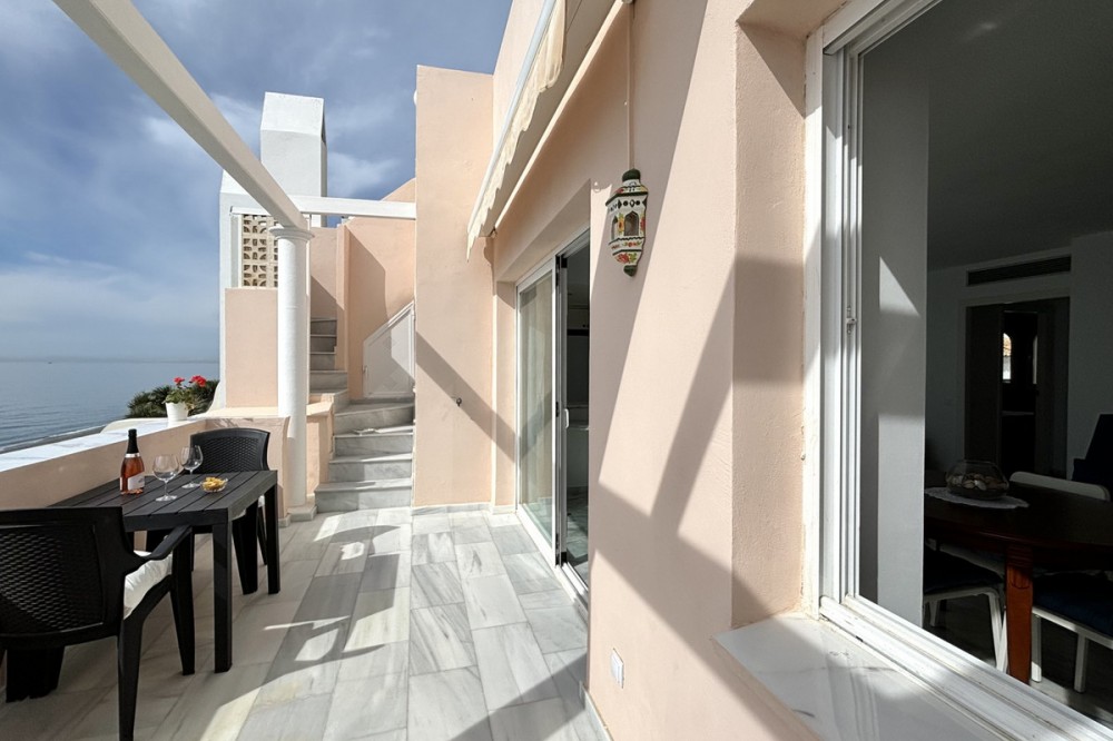 - This stunning luxury duplex penthouse is located in the beautiful area of Arroyo Vaquero, Estepona West, Estepona, Malaga. Situated in a front line beach position, this property offers breathtaking sea views and direct access to the beach. With a built area of 185m², this spacious penthouse includes 2 bedrooms and 2 bathrooms. The interior of the penthouse spans 115m² and features an open and bright living room, a dining room, and a fully fitted kitchen with modern appliances. The marble floors and double glazing give the property an elegant touch. The penthouse also boasts a private terrace of 70m², which is ideal for outdoor dining, entertaining, and enjoying the stunning sea view. Additional features of this luxury penthouse include air conditioning, fitted wardrobes, a walk-in closet, and a roof terrace. The communal areas of the property include a swimming pool, a garden, and a garage. Other amenities in the vicinity include shops, restaurants, and schools, making this an ideal location for both relaxation and everyday convenience. The property is in excellent condition and is available with optional furniture. Pets are allowed, and internet connection is available through both Wi-Fi and fiber optic. With its prime beachfront location, luxurious features, and stunning sea views, this duplex penthouse in Arroyo Vaquero, Estepona is a truly exceptional property.