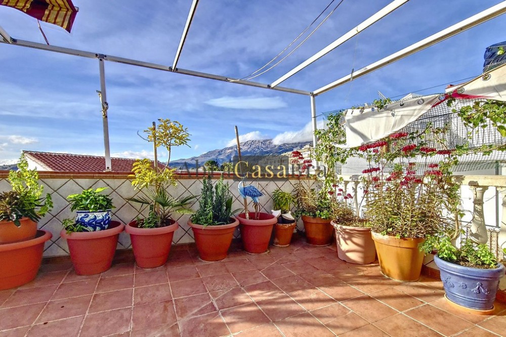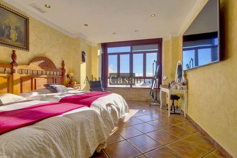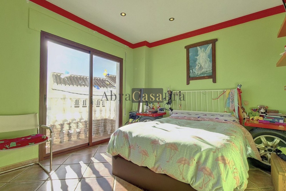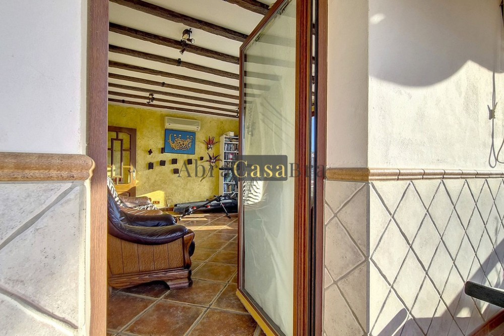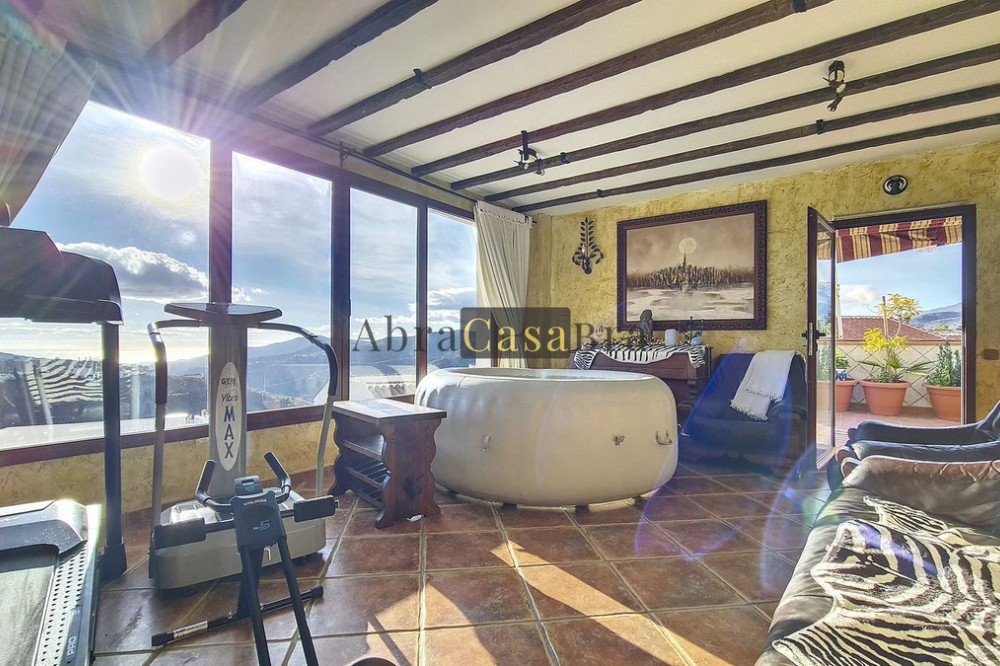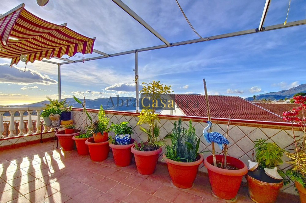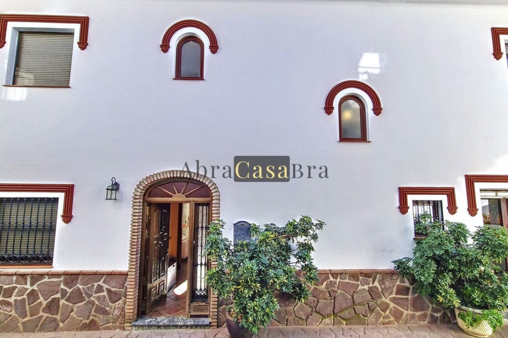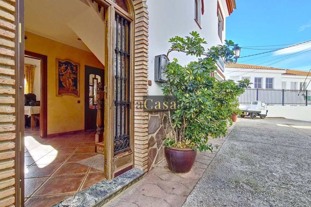 - This amazing townhouse is located in an ideal and quiet location in the heart of the lively white mountain village of Cómpeta in the Axarquia region (Málaga province). The layout of this spacious and bright house is uncluttered and offers many possibilities. It is ideal for use as a family home and/or commercial business. At the back of the townhouse is a very large garage for several cars and a storage room. The 2 roof terraces give breathtaking views of the mountains, the sea and the village. On some days, even the Atlas mountains in Morocco can be clearly seen. The property has fibre-optic internet and there is double glazing. The water is heated via solar panels and there is air conditioning throughout the house. The house is in very good condition and luxury materials have been used. The atmosphere is pleasant. The first thing you notice when you enter is the large hall with the beautiful staircase to the first floor and the open passage to the living/dining area. To the left of the hall is a room currently used as storage, but could easily be transformed into an extra bedroom. The living/dining room with open kitchen is bright and spacious. The modern and spacious kitchen is fully equipped. At the end of the hall is a bathroom with toilet and a room currently used as an office. This area has its own entrance through a glass front. Behind this office is a separate room, currently used as a laundry room, and a balcony. Once you reach the 1st floor, a spacious hall connects the 3 large bedrooms, the large bathroom with bath and a walk-in closet with another separate storage room behind it. The beautiful master bedroom with fitted wardrobes is very spacious gives beautiful views over the mountains with the sea in the distance. It has two double beds. On the 2nd floor, there is a small storage room, a large open room with full-length windows, a guest toilet and access to the 2 roof terraces. The open room is currently used as a gym and there is a jacuzzi (cold/hot). The large roof terrace with phenomenal views has awnings and is an ideal place to spend warm summer evenings with a glass of wine, while the sun slowly disappears behind the mountains. Shops, terraces, schools, public transport.... everything is within walking distance. Make an appointment soon, I will proudly give you a tour of this townhouse, which you must have seen with your own eyes.