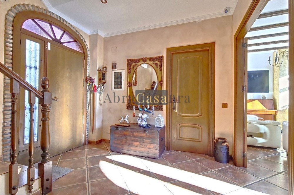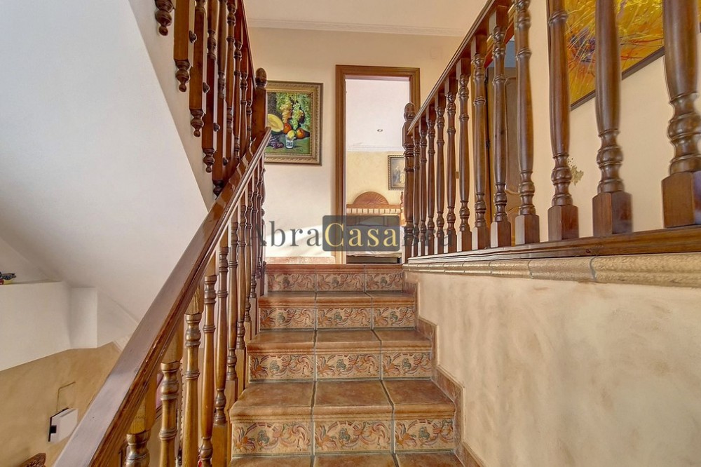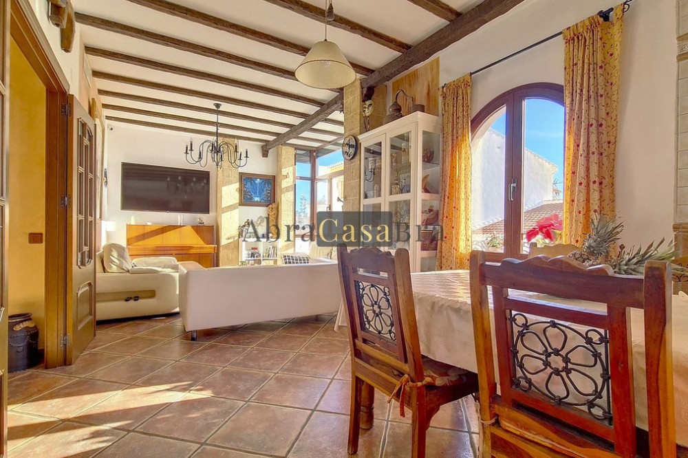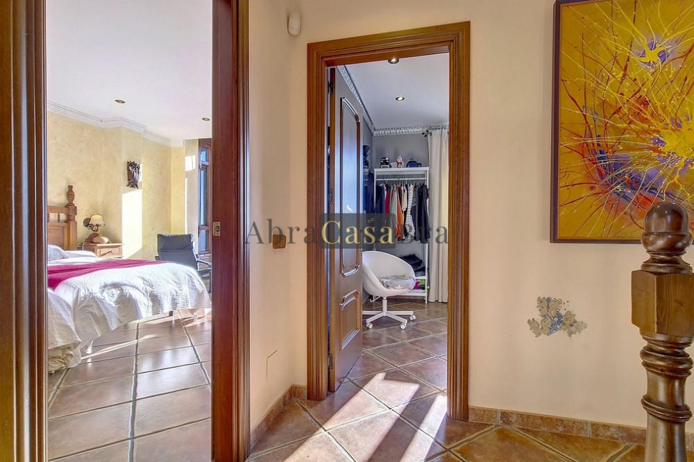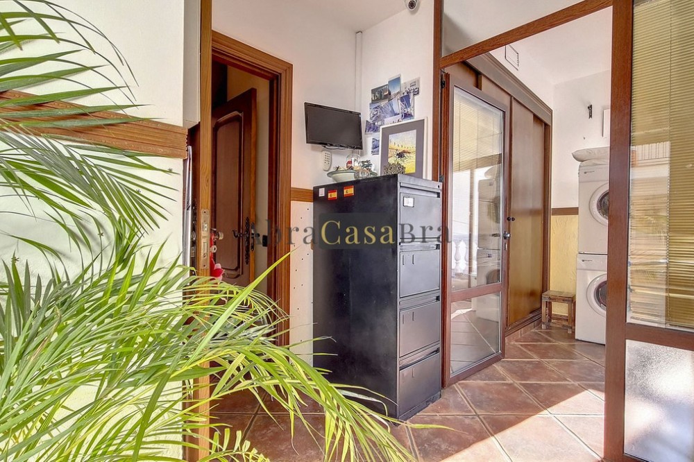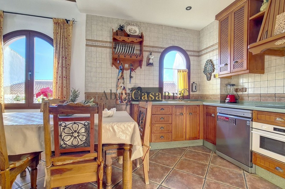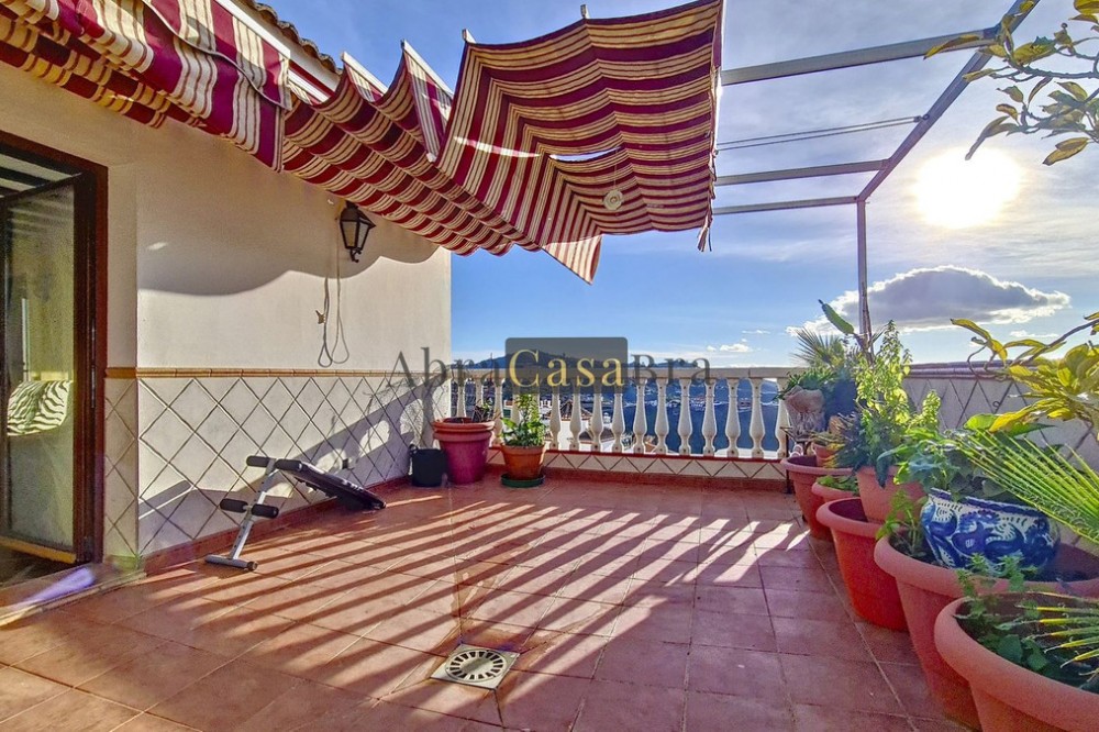 - This amazing townhouse is located in an ideal and quiet location in the heart of the lively white mountain village of Cómpeta in the Axarquia region (Málaga province). The layout of this spacious and bright house is uncluttered and offers many possibilities. It is ideal for use as a family home and/or commercial business. At the back of the townhouse is a very large garage for several cars and a storage room. The 2 roof terraces give breathtaking views of the mountains, the sea and the village. On some days, even the Atlas mountains in Morocco can be clearly seen. The property has fibre-optic internet and there is double glazing. The water is heated via solar panels and there is air conditioning throughout the house. The house is in very good condition and luxury materials have been used. The atmosphere is pleasant. The first thing you notice when you enter is the large hall with the beautiful staircase to the first floor and the open passage to the living/dining area. To the left of the hall is a room currently used as storage, but could easily be transformed into an extra bedroom. The living/dining room with open kitchen is bright and spacious. The modern and spacious kitchen is fully equipped. At the end of the hall is a bathroom with toilet and a room currently used as an office. This area has its own entrance through a glass front. Behind this office is a separate room, currently used as a laundry room, and a balcony. Once you reach the 1st floor, a spacious hall connects the 3 large bedrooms, the large bathroom with bath and a walk-in closet with another separate storage room behind it. The beautiful master bedroom with fitted wardrobes is very spacious gives beautiful views over the mountains with the sea in the distance. It has two double beds. On the 2nd floor, there is a small storage room, a large open room with full-length windows, a guest toilet and access to the 2 roof terraces. The open room is currently used as a gym and there is a jacuzzi (cold/hot). The large roof terrace with phenomenal views has awnings and is an ideal place to spend warm summer evenings with a glass of wine, while the sun slowly disappears behind the mountains. Shops, terraces, schools, public transport.... everything is within walking distance. Make an appointment soon, I will proudly give you a tour of this townhouse, which you must have seen with your own eyes.