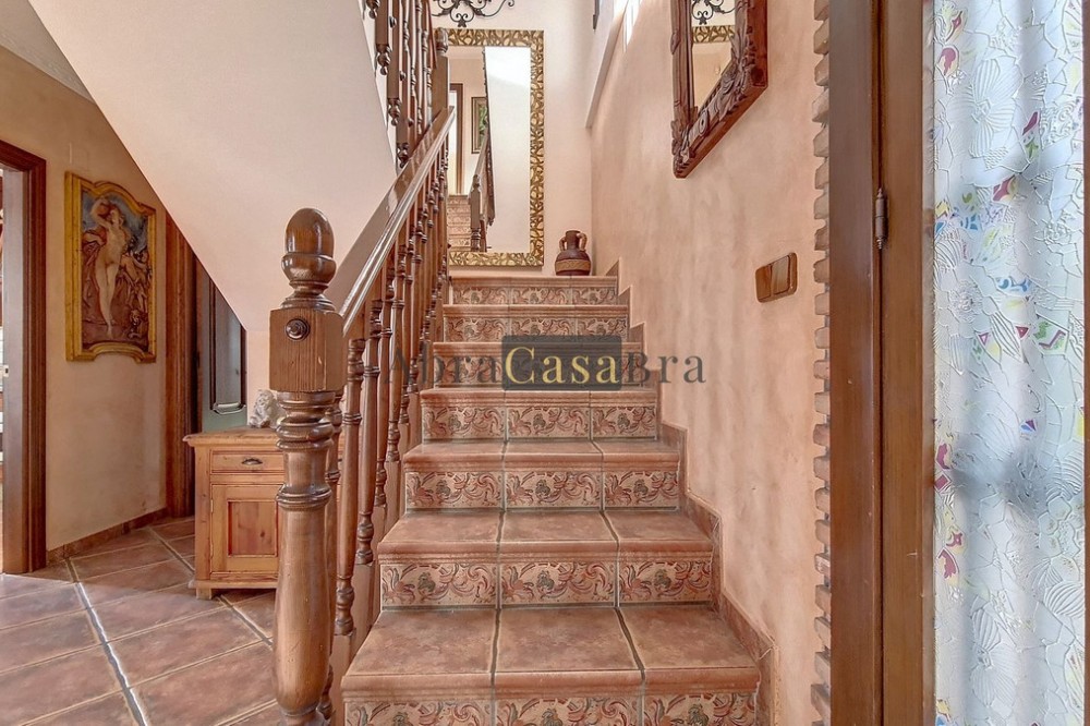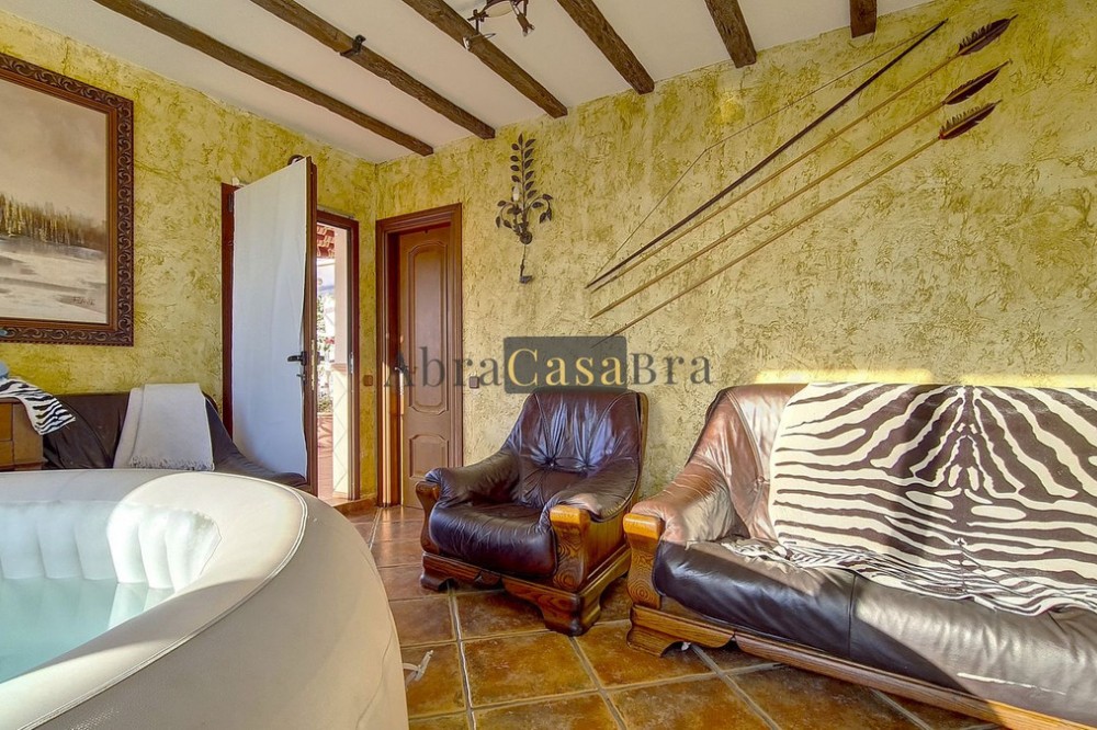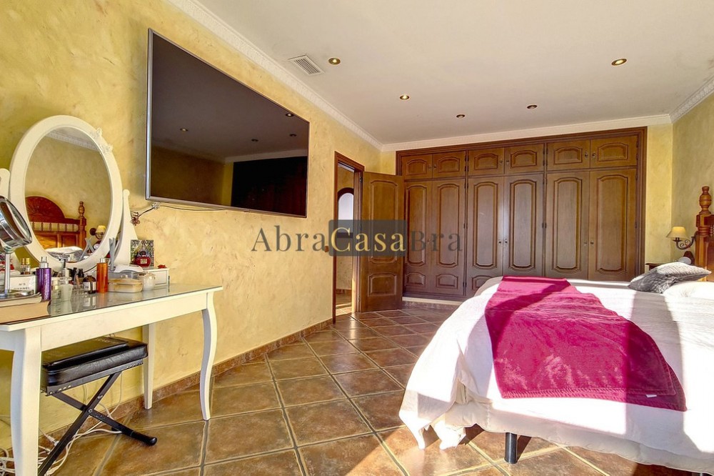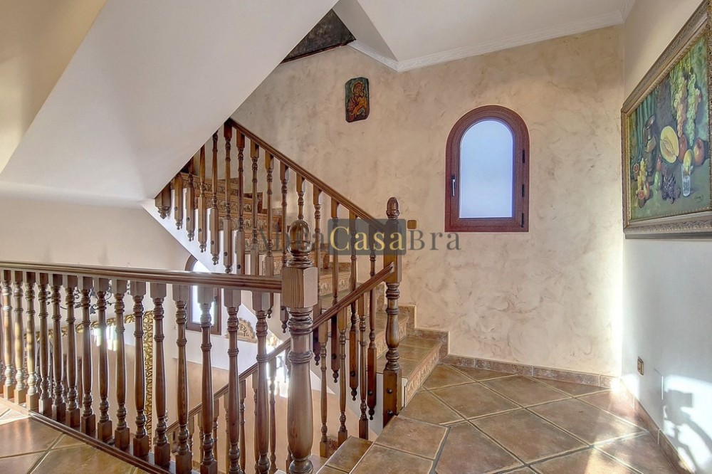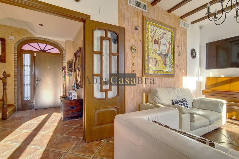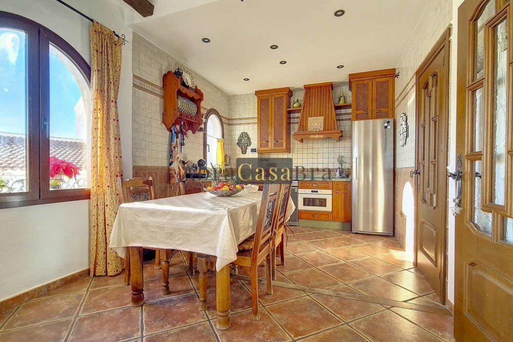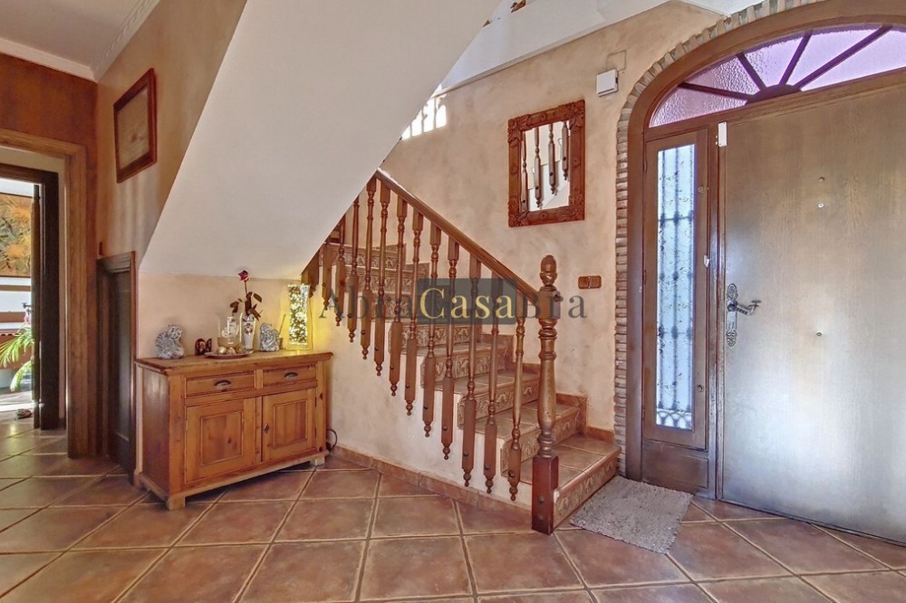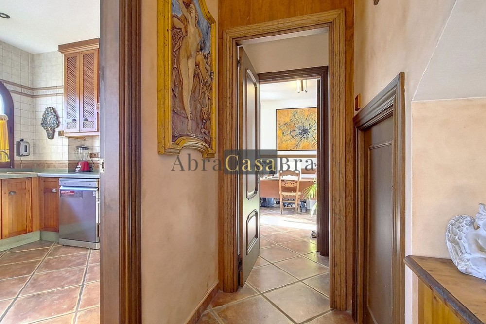 - This amazing townhouse is located in an ideal and quiet location in the heart of the lively white mountain village of Cómpeta in the Axarquia region (Málaga province). The layout of this spacious and bright house is uncluttered and offers many possibilities. It is ideal for use as a family home and/or commercial business. At the back of the townhouse is a very large garage for several cars and a storage room. The 2 roof terraces give breathtaking views of the mountains, the sea and the village. On some days, even the Atlas mountains in Morocco can be clearly seen. The property has fibre-optic internet and there is double glazing. The water is heated via solar panels and there is air conditioning throughout the house. The house is in very good condition and luxury materials have been used. The atmosphere is pleasant. The first thing you notice when you enter is the large hall with the beautiful staircase to the first floor and the open passage to the living/dining area. To the left of the hall is a room currently used as storage, but could easily be transformed into an extra bedroom. The living/dining room with open kitchen is bright and spacious. The modern and spacious kitchen is fully equipped. At the end of the hall is a bathroom with toilet and a room currently used as an office. This area has its own entrance through a glass front. Behind this office is a separate room, currently used as a laundry room, and a balcony. Once you reach the 1st floor, a spacious hall connects the 3 large bedrooms, the large bathroom with bath and a walk-in closet with another separate storage room behind it. The beautiful master bedroom with fitted wardrobes is very spacious gives beautiful views over the mountains with the sea in the distance. It has two double beds. On the 2nd floor, there is a small storage room, a large open room with full-length windows, a guest toilet and access to the 2 roof terraces. The open room is currently used as a gym and there is a jacuzzi (cold/hot). The large roof terrace with phenomenal views has awnings and is an ideal place to spend warm summer evenings with a glass of wine, while the sun slowly disappears behind the mountains. Shops, terraces, schools, public transport.... everything is within walking distance. Make an appointment soon, I will proudly give you a tour of this townhouse, which you must have seen with your own eyes.