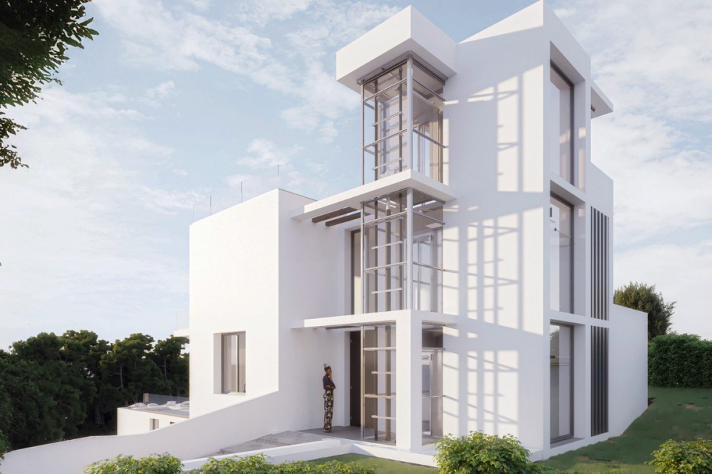 - New Development: Prices from €1,400,000 to €1,400,000. [Bedrooms: 4] [Bathrooms: 3] [Built size: 325m2]. This villa is a modern turnkey villa project situated on a plot of 570 m2 with 0.35% max build capacity. The property has been designed to maximum features including infinity swimming pool with chill-out area, Cinema/Entertainment Room, Cellar, Open Plan Living & Dining Room, panoramic sea views, underground basement with space for 2 cars plus car port for 2 additional cars. Street parking, panoramic lift from basement to Solarium on which you find Jacuzzi, chill-out with ethanol fire burner on the solarium and gym with panoramic views.