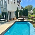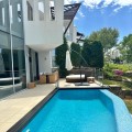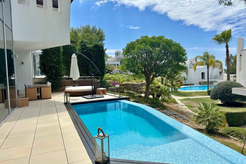 - Situated in the exclusive Meisho Hills on Marbella's Golden Mile, this luxury townhouse offers an unparalleled living experience. Boasting 5 spacious bedrooms, each with its own en-suite bathroom, and an additional guest toilet, this property is designed to accommodate the needs of a discerning family. The townhouse features a private terrace of 25m², a private pool, garden, ensuring complete privacy and comfort. The townhouse is fully furnished and includes a fully fitted kitchen equipped with modern appliances, making it ready for immediate occupancy. Additional amenities include a utility room, a fireplace, marble and parquet floors, a Jacuzzi, and satellite TV. The basement offers extra space, and the property also includes a solarium, a barbeque area, and 3 private garage spaces and storage areas. The air conditioning and underfloor heating systems ensure a comfortable living environment throughout the year. Security is a paramount feature of this property, with a security entrance, 24-hour security service, security shutters, surveillance cameras, and an alarm system. The townhouse is located in Meisho Hills, a luxury and modern style gated community, boasting communal swimming pools, Zen-style gardens, and additional amenities that enhance the luxurious lifestyle, set within the famous Sierra Blanca. The property also features double glazing, electric blinds, fitted wardrobes, and an automatic irrigation system for the garden. The location of this townhouse is another significant advantage. It is close to natural parks, beaches, golf courses, shops, schools, and the port, making it ideal for those seeking convenience and luxury. The property offers stunning sea, mountain, garden, and pool views, and is situated near transport links, making it easy to access all that Marbella has to offer. With only 58 properties in the complex, this is a unique opportunity to acquire a dream home in one of the most prestigious areas of Marbella.