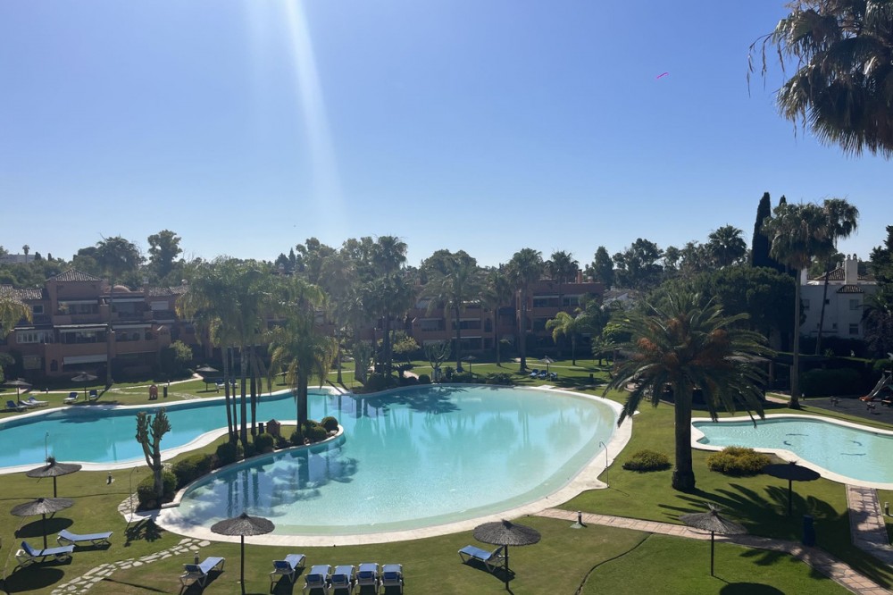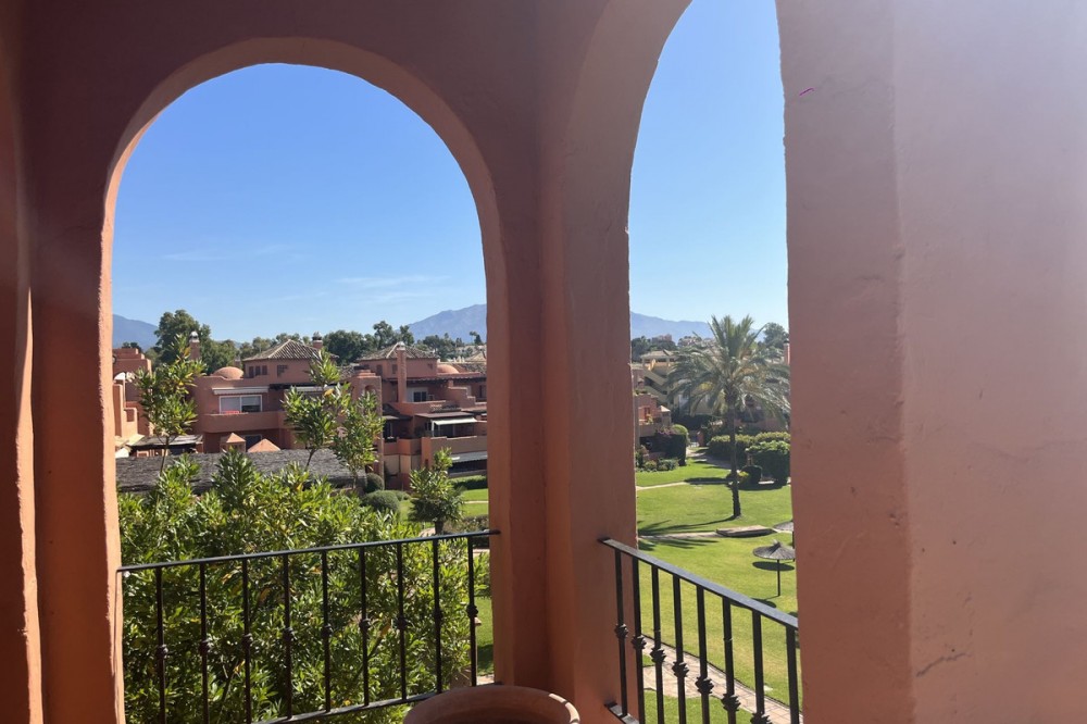 - Wonderful newly renovated penthouse in the Alhambra del Golf urbanisation. This residential complex stands out for its beautiful, well-maintained gardens and its large swimming pool. House layout: Large living-dining room with access to the wonderful south-facing terrace overlooking the pool, brand new luxury renovated independent kitchen with laundry area, 3 spacious bedrooms, the master bedroom with dressing room and en suite bathroom, two other spacious bedrooms and another bathroom. Parking space included in the price.