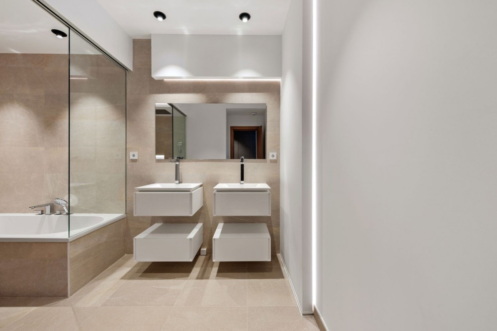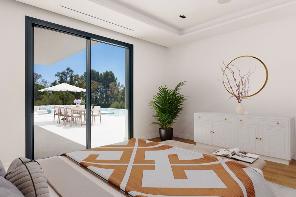 - Luxury villa in Benalmádena Elegantly styled and located in the heart of the Costa del Sol, this imaginative luxury villa offers an innovative design with clean lines and high technology. Set on a large plot of more than 1,300 square metres, this new villa offers a large outdoor space, comprising a spacious terrace area, barbecue, large swimming pool for the whole family, solarium and a wonderful garden. Everything you need to relax and spend days under the sun with family and friends. The interior area, distributed over two floors, has large bedrooms, each with its own private bathroom, office, storage room, a spacious garage, laundry room, pantry and multiple toilets.