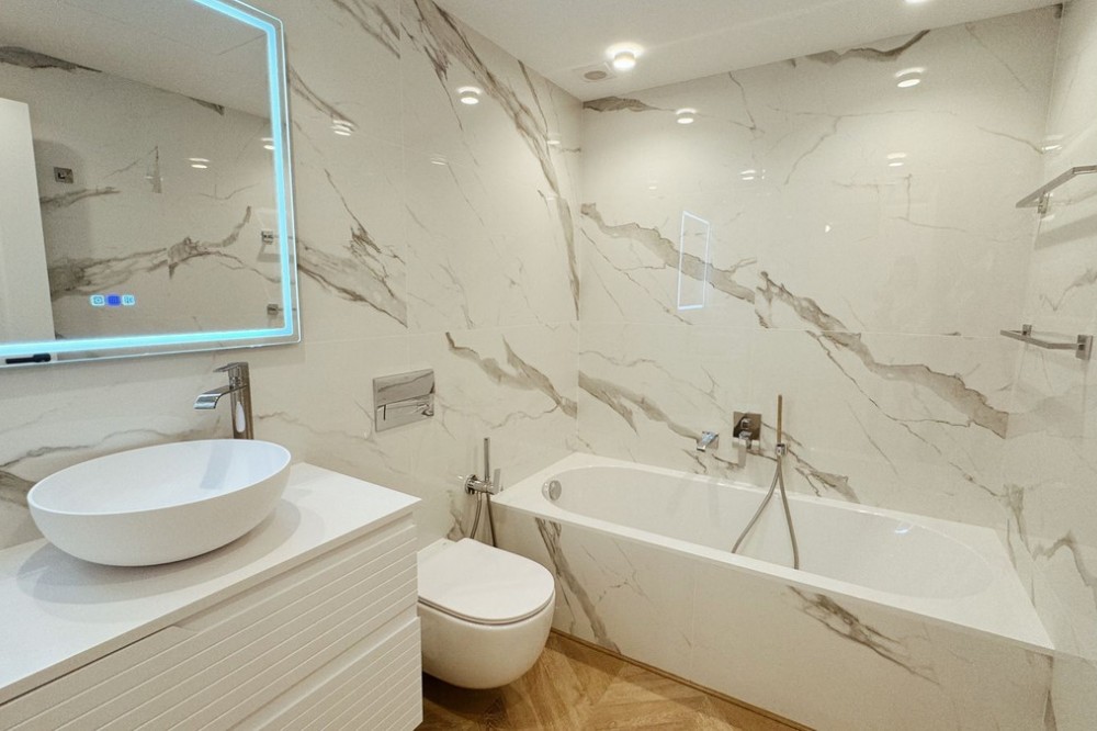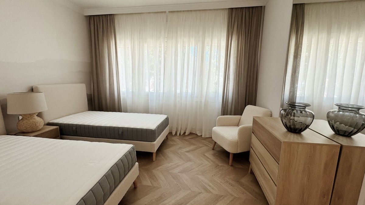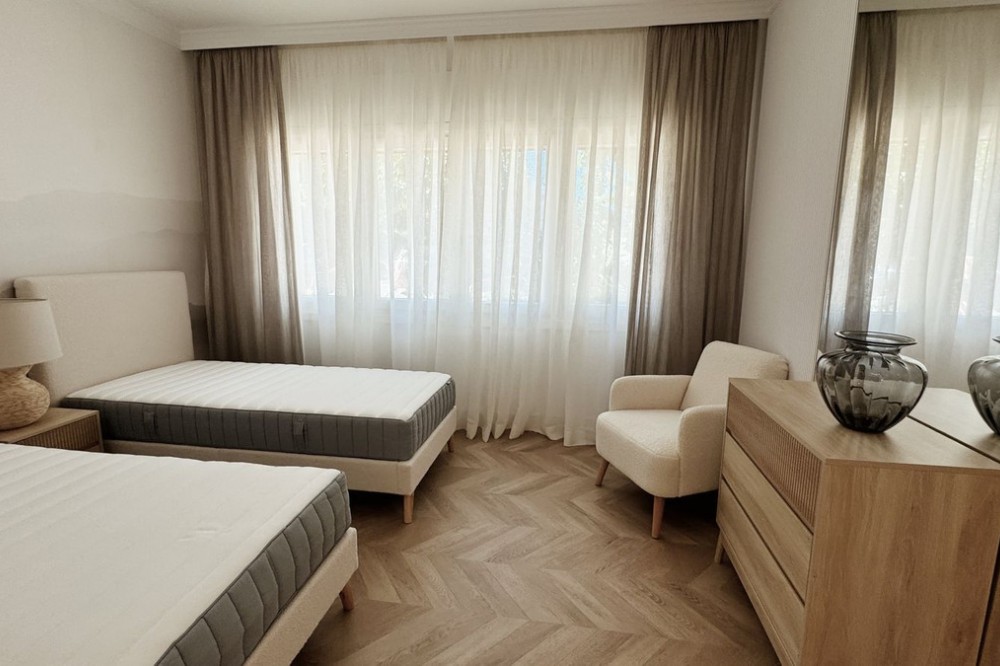 - A magnificent apartment for sale in the prestigious residential complex, located on the first line of the sea. This spacious property includes three bedrooms and two bathrooms, ideal for comfortable living. The apartment has been recently renovated and is decorated in a modern style using high-quality materials and stylish design solutions. Key features of the apartment: Location: First line of the sea, offering incredible sea views and easy access to the beach. Area: Spacious rooms that allow for a cozy and functional environment. Bedrooms: Three cozy bedrooms with large windows that fill the rooms with natural light. Bathrooms: Two modern bathrooms equipped with the latest plumbing and elegant finishes. Interior: Recent renovation in a modern style, with a design considered according to the latest interior trends. Complex: Prestigious residential complex with well-maintained grounds, a swimming pool, green areas, and 24-hour security. This apartment is the perfect choice for those who value comfort, style, and a privileged location. Living here, you will enjoy all the benefits of coastal living in one of the most beautiful places. Parking space № E11, storage room №10