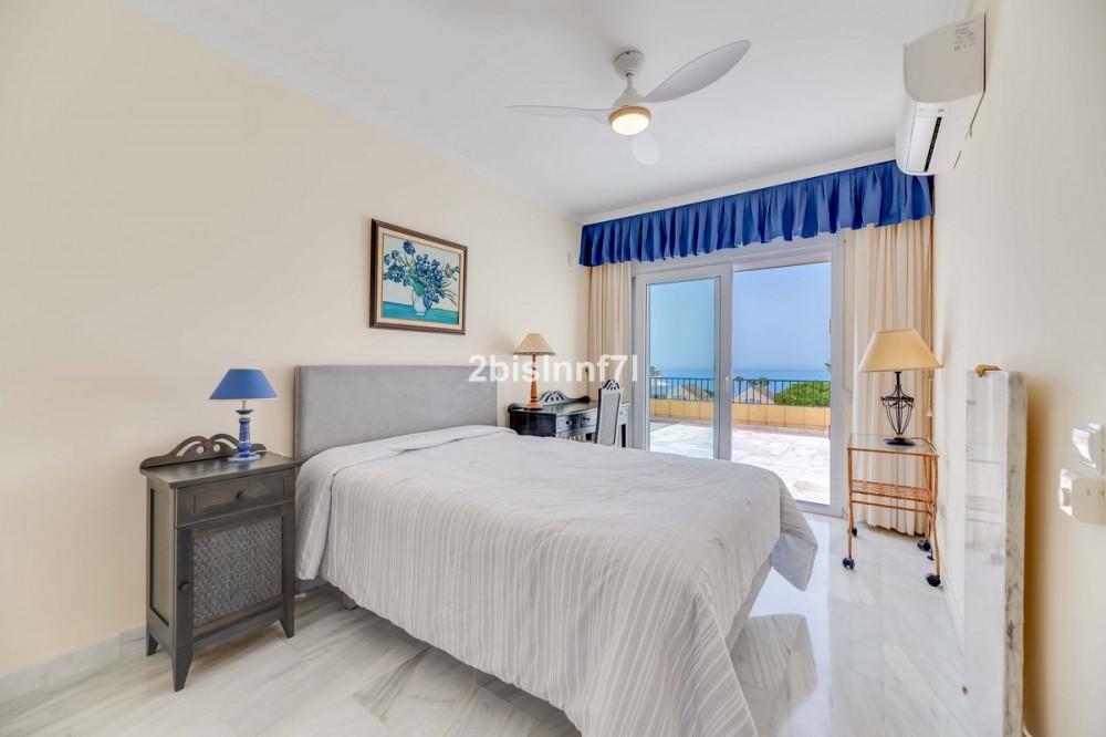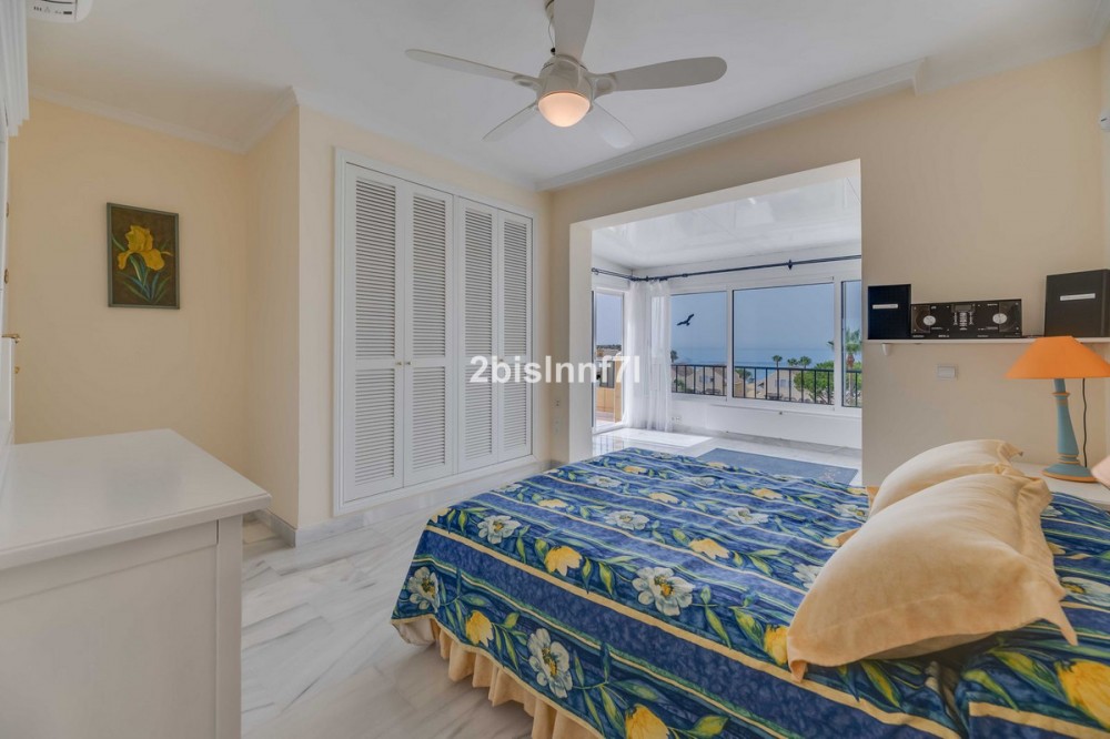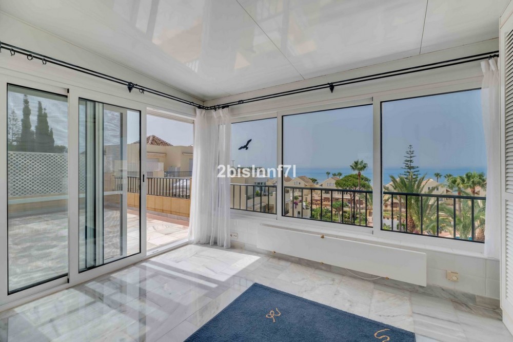 - Three-bedroom duplex penthouse for sale in White Pearl Beach II, Elviria We are very pleased to present this lovely 3-bedroom, 2,5-bathroom corner penthouse duplex in the long stablished frontline beach complex of White Pearl Beach II, in Elviria This duplex penthouse enjoys wonderful sea and garden views, is very bright as it has large windows all over so the light and the sun boast in and brightens the lovely apartment. Upon entering the property, we are welcomed by a large entrance hall. On the right-hand side, we find the kitchen which is independent, very ample, fitted with high quality appliances and also benefits from a utility room, on the same floor there is also a guest toilet, several fitted wardrobes, onto the left-hand side there is a spacious living room with access to the terrace and the master bedroom with en suite bathroom, it is also connected to the front terrace which is both covered and uncovered. Upstairs there are other two generously sized bedrooms, which share a bathroom that is in the middle of them with independent access from both bedrooms. There is a large open terrace to enjoy the sea views and part of the terrace has been included in one of the bedrooms. The apartment includes an underground parking space and storage room Elviria sandy beaches is mostly frequented by families, you have Perla Blanca restaurant and other traditional restaurants and famous beach clubs as Nikki Beach Club 850m away (12-minute walk) you have Elviria shopping area, grocery shops, pharmacy, hairdressers, bars and restaurants. Within a 7 minutes’ drive (5km) you reach the hidden pearl of Costa del Sol, Puerto de Cabopino. It's a small but enchanting harbour with cute port, and small boatyard, attractive architecture and a large choice of restaurants. There are several 18-hole golf courses like Santa Maria Golf, Santa Clara Golf, Greenlife Golf. Marbella city centre is only 12 minutes’ drive away, Puerto Banus and Fuengirola are 15 min away and the Airport is 40 min drive from the apartment. Ideal as permanent or holiday residence. This beautiful duplex penthouse with fantastic sea views is located in one of the most sought-after beachfront properties in Elviria, Marbella and you shouldn't miss this ideal choice either as permanent or holiday residence.