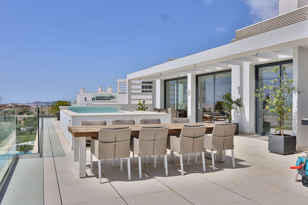 - Welcome to luxury living at its finest in Higueron This exquisite penthouse offers the best sea views that stretch from south to west. With a prime location this property ensures a lifestyle of opulence and convenience. The penthouse features 3 bedrooms, including a lavish ensuite master bedroom, and 2 bathrooms, complementec by a separate guest toilet for added convenience. The fully fitted kitchen is a culinary enthusiast's dream, equipped with modern appliances and designed for both style and functionality with both American type fridge and wine fridge Step into a world of relaxation and entertainment with a private plunge pool that overlooks the mesmerizing sea. Enjoy the seamless indoor-outdoor flow, as automatic electric awnings and sun blinds provide shade when needed. In winter you will even be able to enjoy the underfloor heating in all floors. The property comes with 2 (one with electric charger) underground parking spaces for your convenience, along with large storage areas that can accommodate bikes, Moto etc, catering to your every need. This penthouse goes beyond the ordinary, offering an array of facilities within the Higueron West community, including a gym, Padel and tennis courts, spa facilities, and a shuttle service to the exclusive Higueron Beach bar. The lifestyle amenities ensure that every day is filled with leisure and well-being The location is unbeatable, with easy access to nearby beaches, renowned restaurants, and a quick connection to the train to Malaga airport. Enjoy the luxury of being just 15 minutes from Malaga and 20 minutes from the vibrant city of Marbella. Furniture is optional, allowing you to personalize this stunning penthouse to your taste. Don't miss the opportunity to own a piece of paradise in Higueron West where luxury meets lifestyle in perfect harmony…