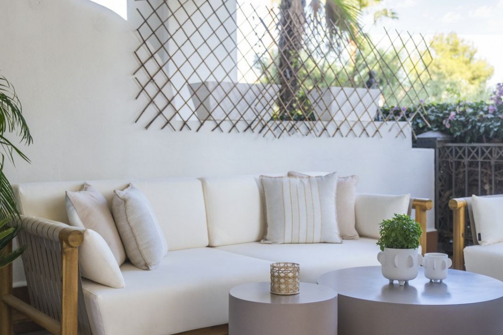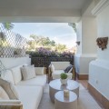 - Introducing, Altos Reales 1 a newly renovated 3 bedroom and 3 bathroom ground floor apartment in the exclusive community of Altos Reales in Sierra Blanca. Where every aspect of this apartment has been carefully designed to create a unique living experience: elegant floors, high-ceiling, contemporary custom wood carpentry and wardrobes, natural fabrics and textures, an open designer kitchen with Miele appliances. Entering the living area, you are greeted by a bespoke kitchen that exudes both elegance and functionality. It features stunning deep wooden accents on the island and cupboards, complemented by a soothing ‘Taj Mahal’ marble countertop. With ample storage, generous counter space, and a wine cooler, it is a modern kitchen that is incredibly functional for those who enjoy cooking and gatherings. The living room area is warm and inviting, featuring a majestic TV-wall with a spacious bench that offers ample storage. The three bedrooms are refined and sophisticated, featuring wooden accents, bespoke wardrobes, and flattering LED lighting throughout. The elegantly decorated bathrooms are crowned with luxury showers and faucets from Dornbracht, where the grand master bathroom is completed with a bathtub and double vanity. For over four decades, the exclusive gated community of Altos Reales has been located in the prestigious Sierra Blanca area. This stunning community features an outdoor swimming pool surrounded by impeccably well-kept gardens, and is securely monitored 24/7. Situated near the Sierra Blanca mountain range on the upper Golden Mile, it is just a short drive from top international schools, luxury boutiques, and renowned restaurants. Altos Reales is undoubtedly a privileged place to enjoy life in Marbella, Spain.