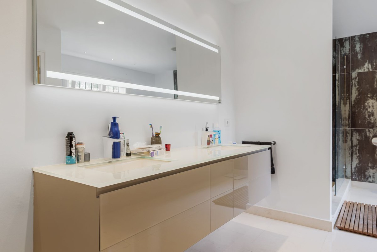 - Modern Andalucian Villa in the Prestigious Kings and Queens, Sotogrande Costa Welcome to this exquisite Modern Andalucian Villa, situated in the prestigious Kings and Queens area of the highly sought-after Sotogrande Costa location. This exceptional property offers a perfect blend of contemporary luxury and traditional charm, set on a generous south-facing plot with mature gardens and versatile entertainment spaces. The villa features a large swimming pool surrounded by natural flagstones and decking, providing the perfect environment for relaxation and social gatherings. Upon entering, you are greeted by a double volume entrance hall that leads to a spacious open plan kitchen and formal lounge, both of which open onto a covered patio with access to the gardens and pool. The ground floor also includes a formal dining room, a separate laundry area, a service bathroom, and ample storage spaces. In the right wing, there is a very large master bedroom with a walk-in wardrobe, en-suite bathroom, and direct access to the gardens and pool, a private study, as well as an additional private suite with a bedroom and en-suite bathroom. The upper level boasts two large bedrooms with en-suite bathrooms, both leading onto a spacious terrace overlooking the gardens and pool. Additionally, there are two more bedrooms sharing a bathroom, along with a separate informal lounge/TV room. The property also includes a large parking area, a private garage, and elegant fountains at the entrance. This villa epitomizes luxury living, offering ample space, modern amenities, and beautiful surroundings, making it the ideal setting for a serene retreat or entertaining guests.