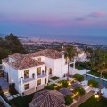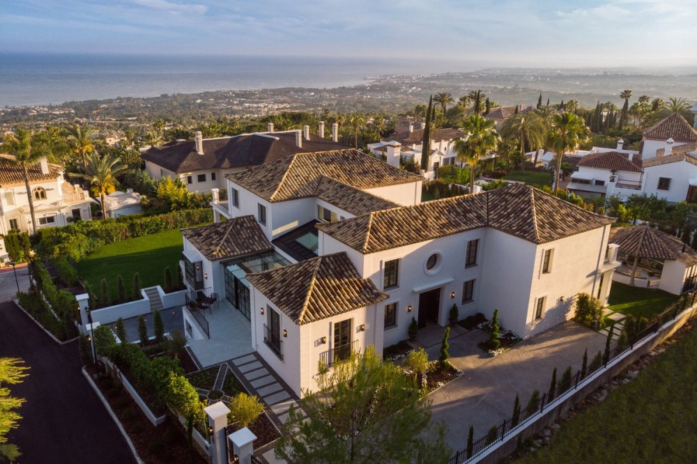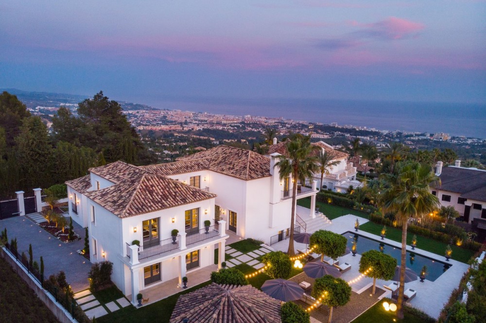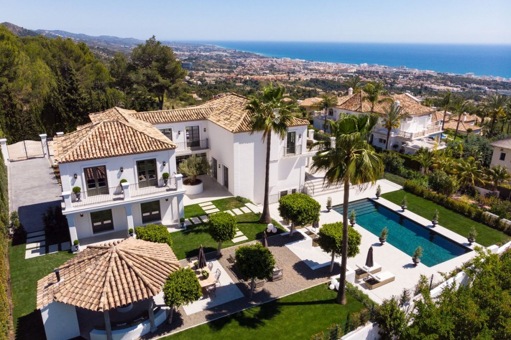 - This Villa is an elegant luxury villa located in one of the most exclusive communities in Marbella. From an elevated position, this property enjoys the spectacular backdrop of the Sierra Blanca mountain range and to the front, the calm waters of the Mediterranean Sea.The property is within an exclusive gated community with 24h security, close to some of the best amenities Marbella has to offer such as Marbella Club/Puente Romano, international schools, prestigious golf courses and a range of shopping facilities. This exquisitely presented property combines to perfection Andalusian architecture with Nordic interior design, with attention to details, offering the best of outdoor living: spacious covered and uncovered terraces, lush vegetation, large swimming pool and BBQ area. The villa welcomes you into an impressive entrance, surrounded by manicured gardens and a true sensation of tranquillity and peace. Every space has been finished to the highest specifications, using natural elements and sophisticated furniture pieces. The flooring has Italian sourced Oak herringbone flooring which complements the neutral colour palette of this luxurious home. The ground floor has several connected living spaces, each with views to the magnificent garden/sea plus one bedroom with en-suite bathroom/walk in closet. On the upper floor you will find the large master bedroom that enjoys spectacular sea views, a large private terrace, elegant bathroom and chic dressing room. There are two additional bedrooms , also decorated with sophisticated interiors to ensure elegance and comfort. There is an office on the way up to the upper floor as well , perfect if you need to work from home. On the lower floor you will find a home cinema , gym, massage room , sauna, Turkish bath, laundry and garage for two cars plus two more bedrooms with en-suite bathrooms. This must be one of the most beautiful villas in Sierra Blanca.